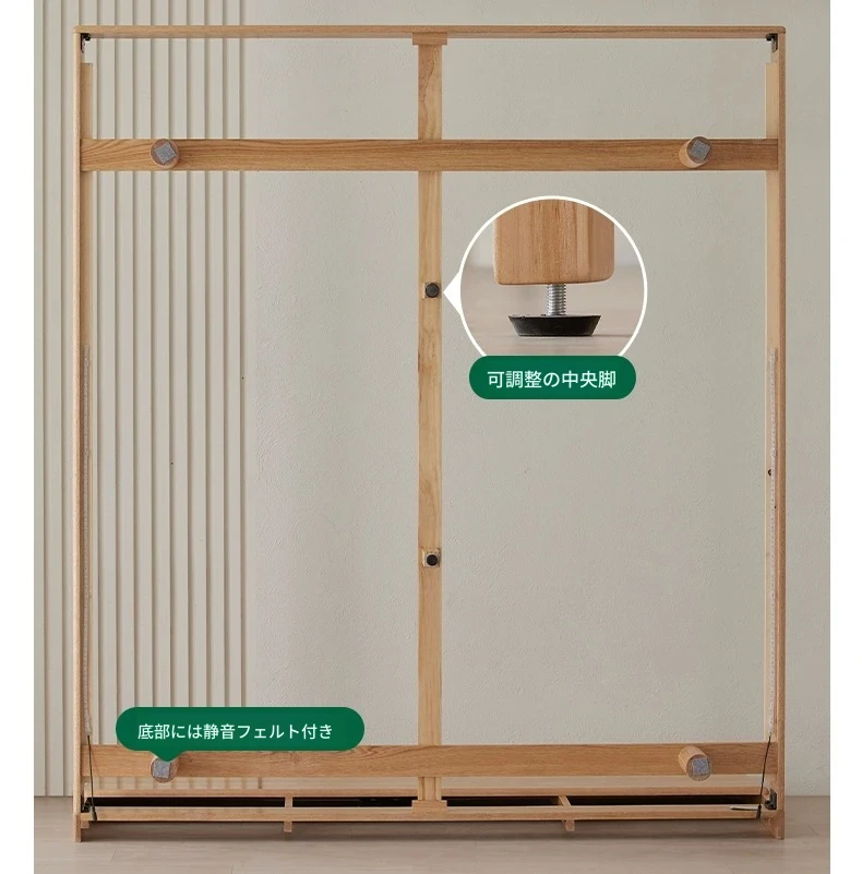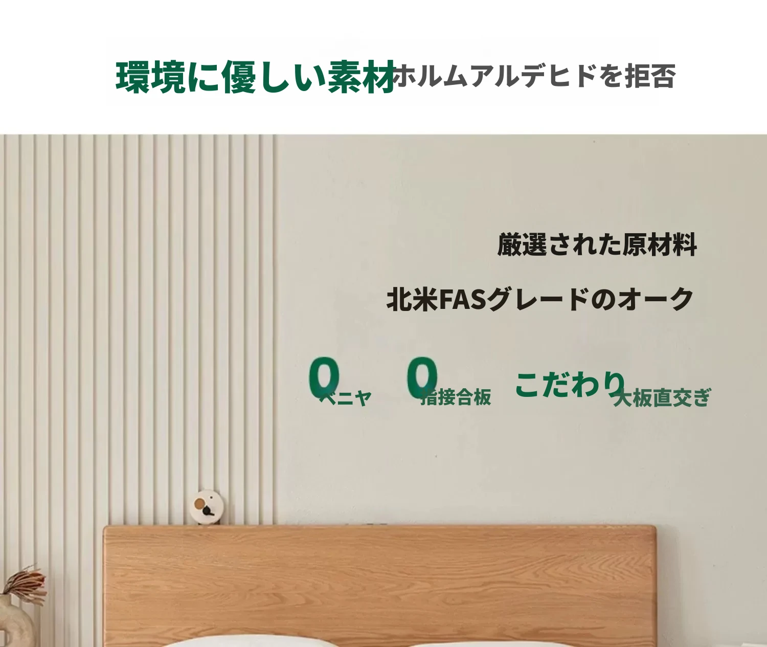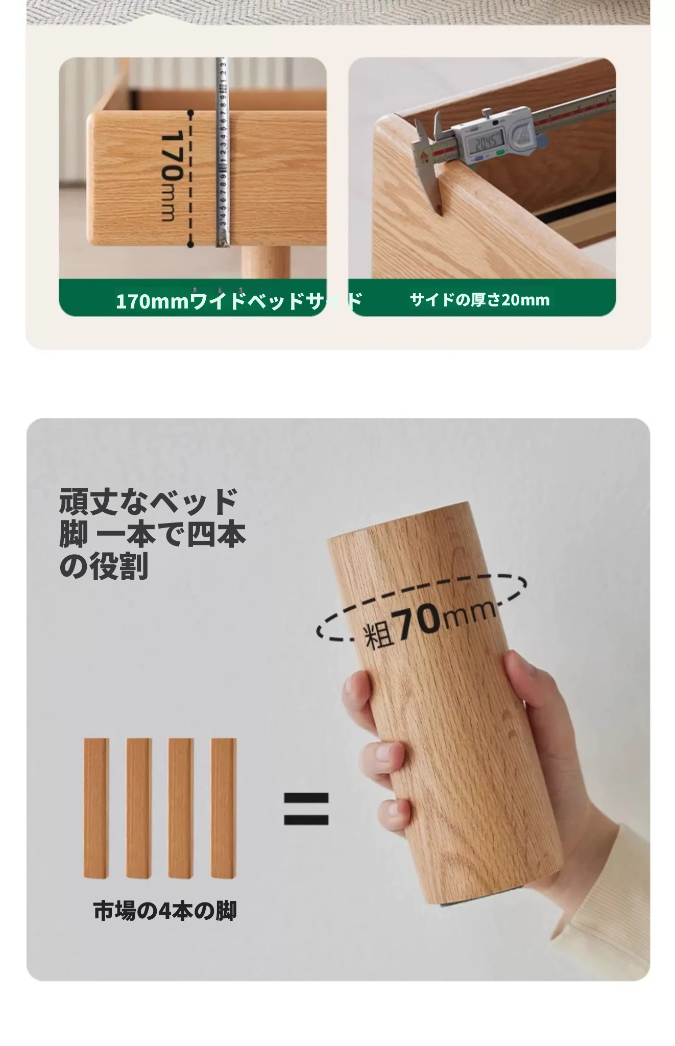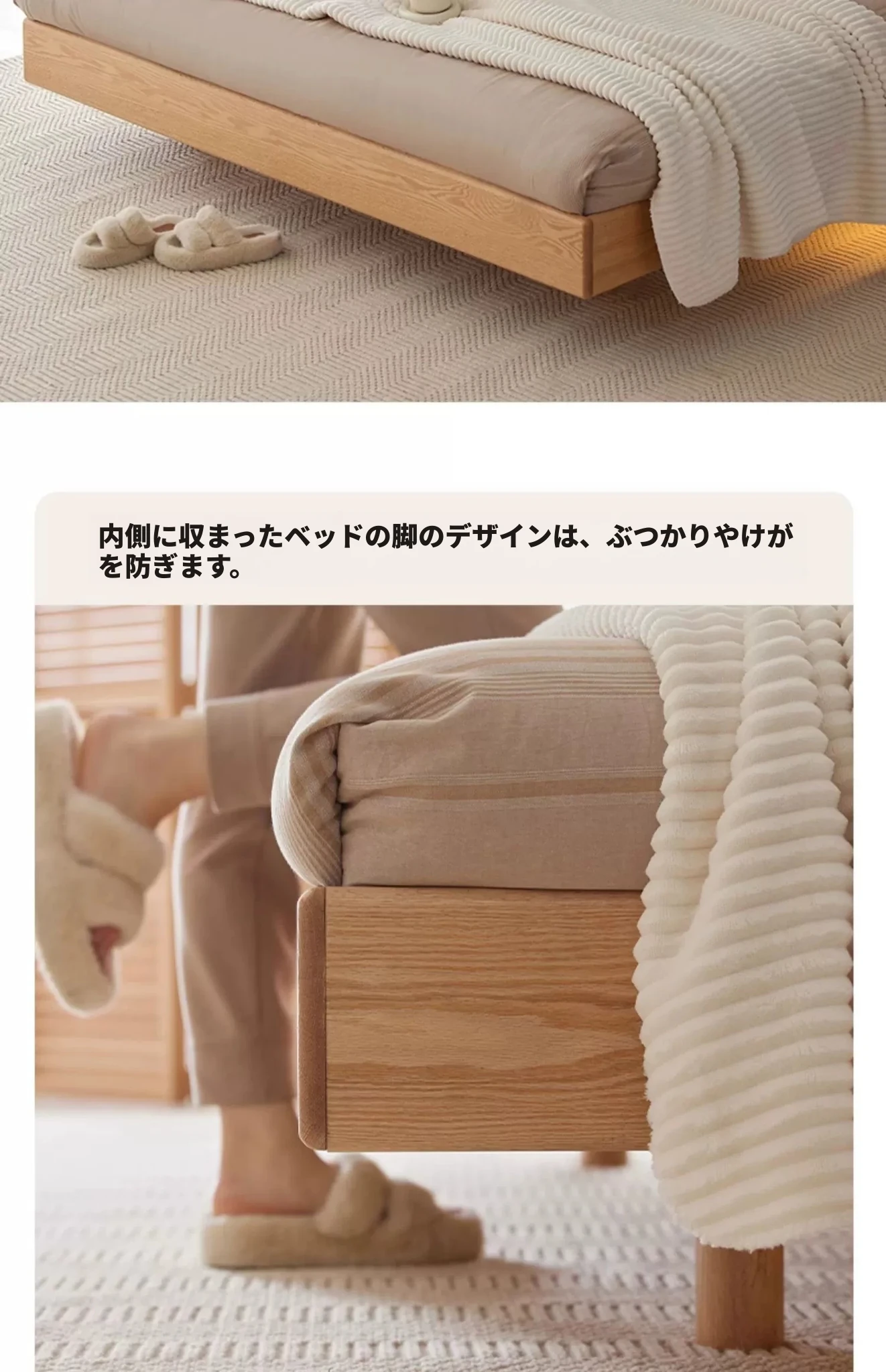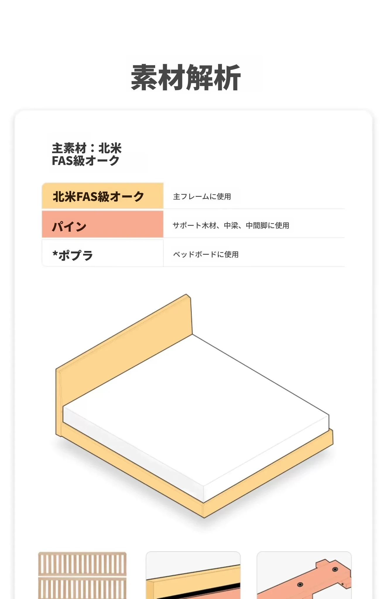 原始の天然素材を活かした全木製モダンミニマリストダブルベッド - オーク製浮遊感のあるデザイン、主寝室に最適な大きな板のベッド!シンプルで洗練された空間を演出します。