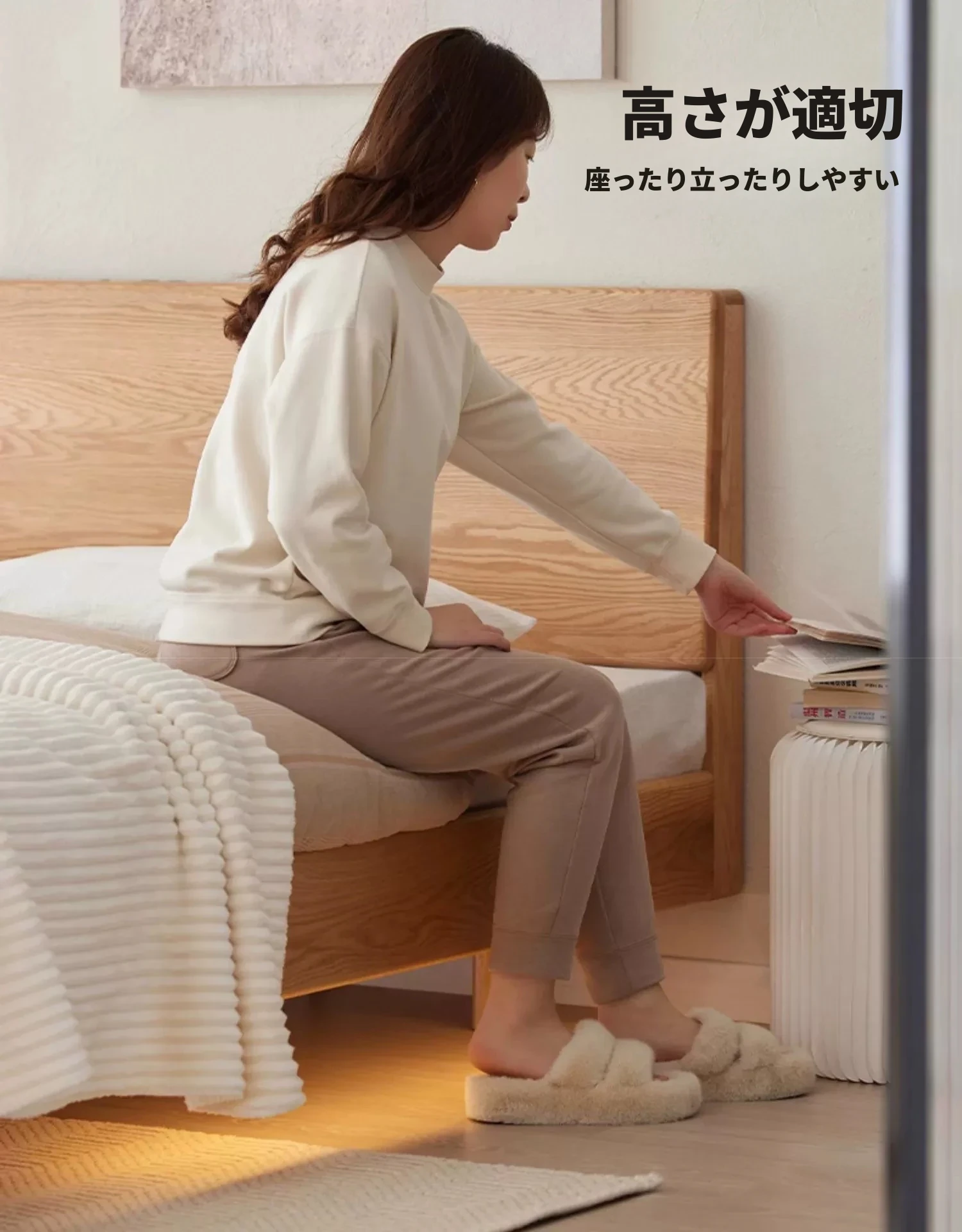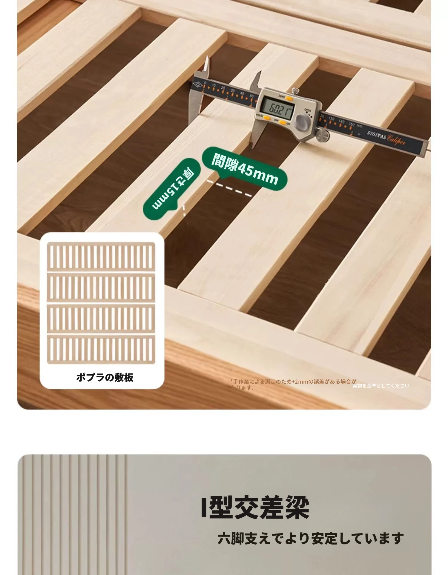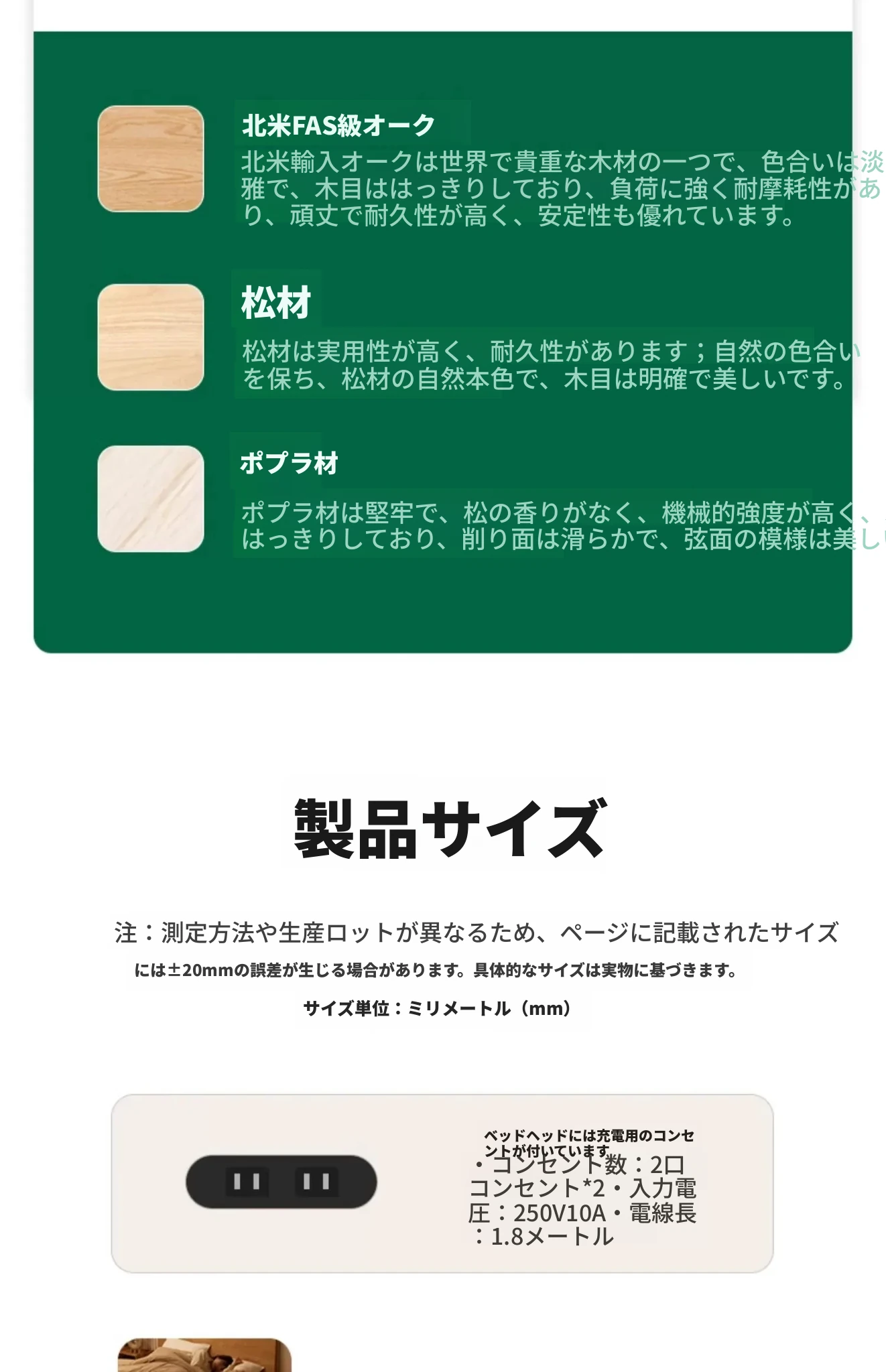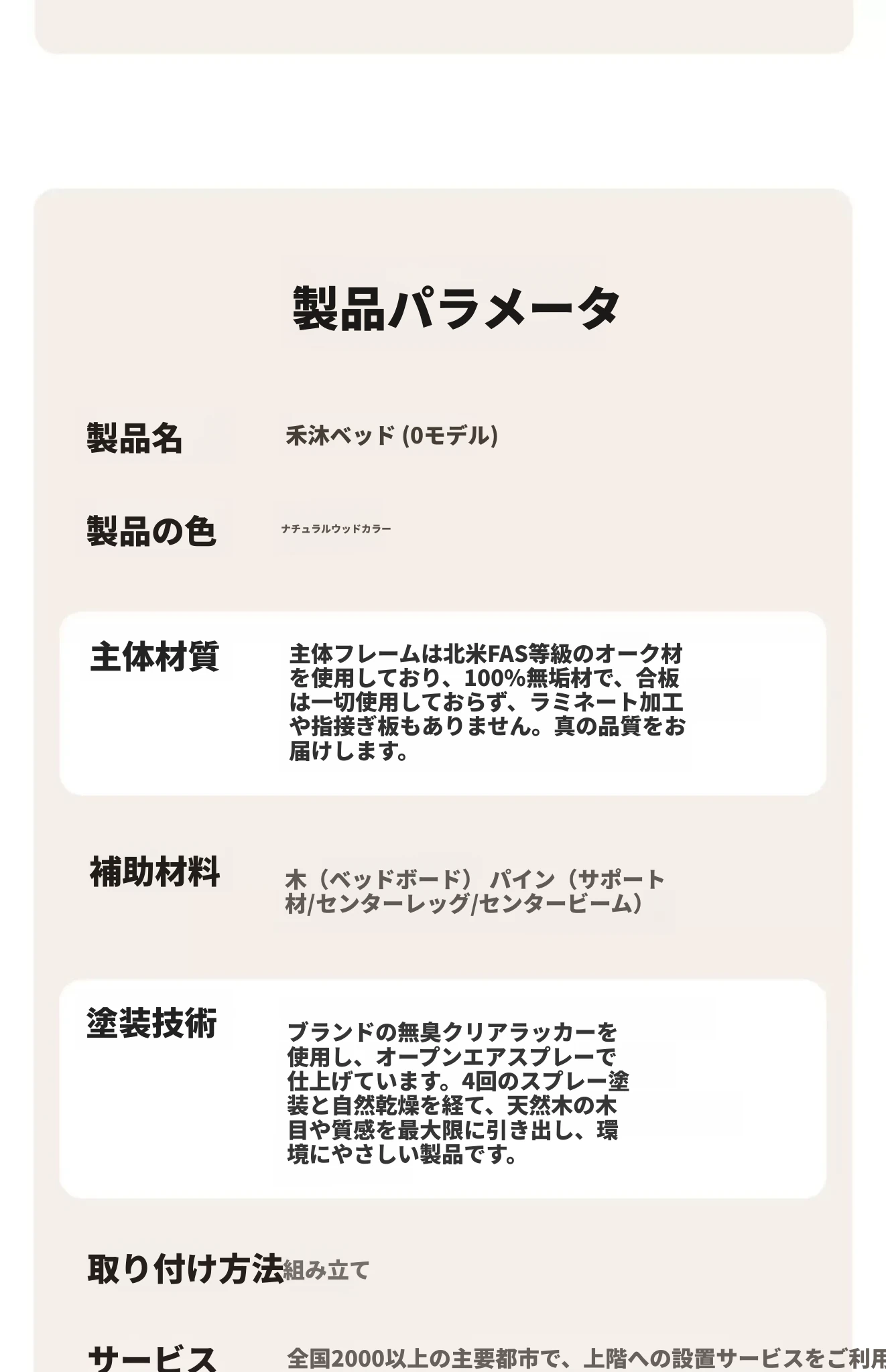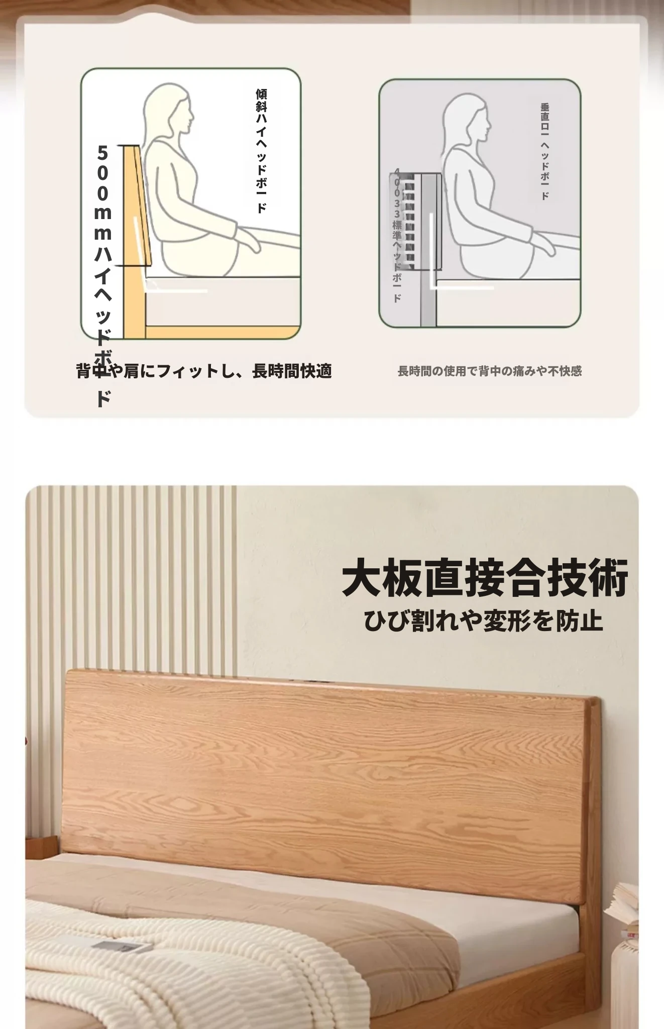 原始の天然素材を活かした全木製モダンミニマリストダブルベッド - オーク製浮遊感のあるデザイン、主寝室に最適な大きな板のベッド!シンプルで洗練された空間を演出します。