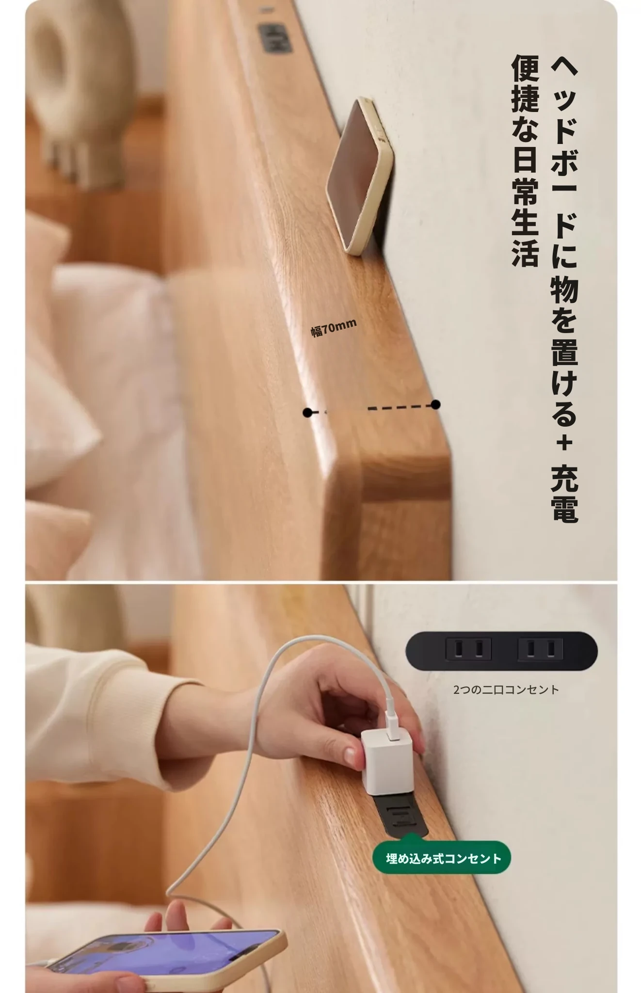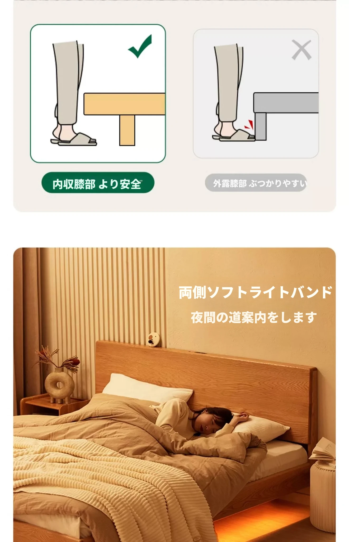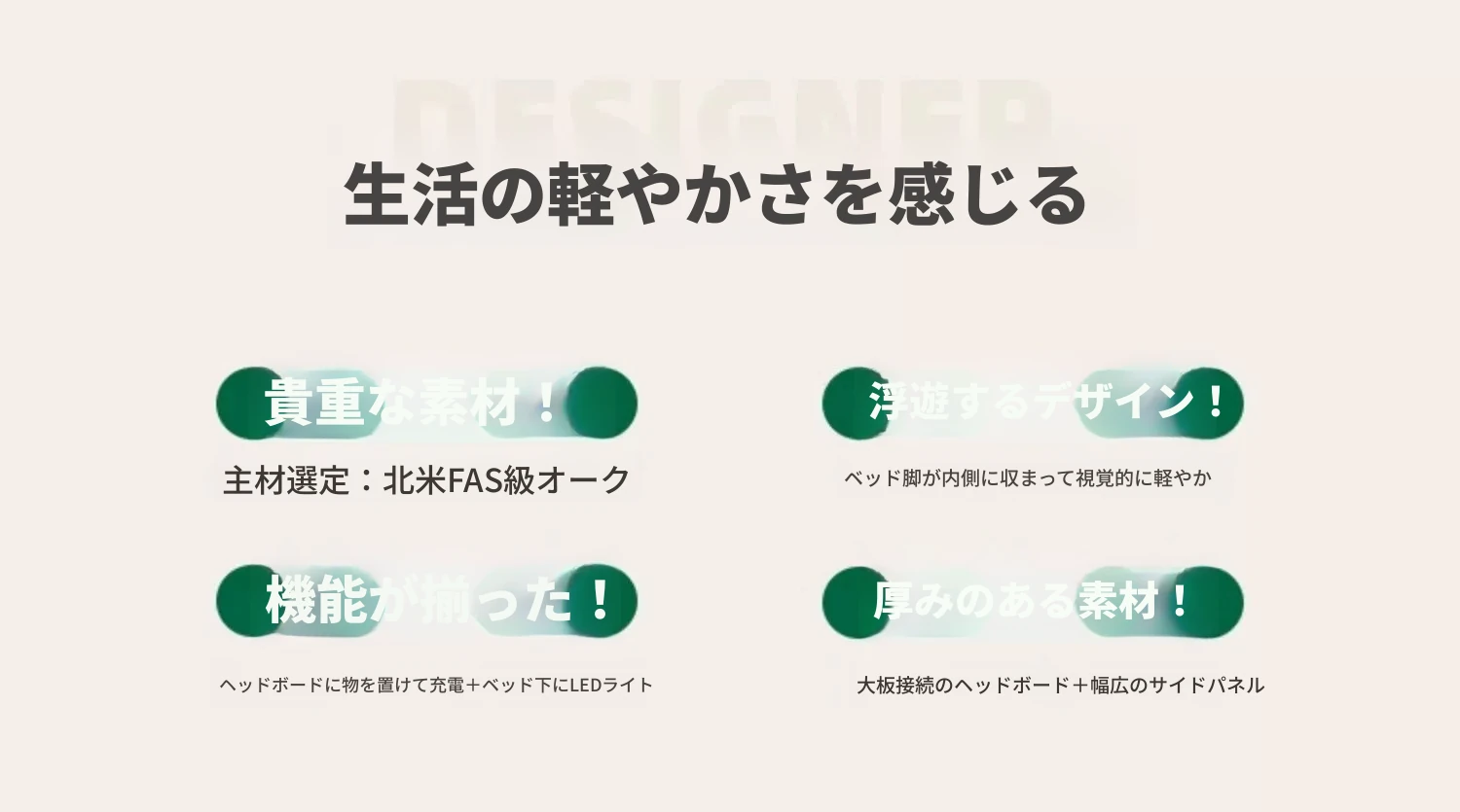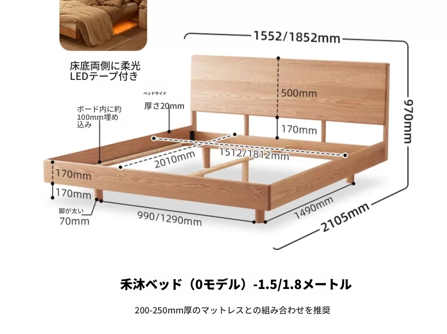【オーク-ナチュラル】ヘムベッド-Oタイプ(浮遊ライト付き)