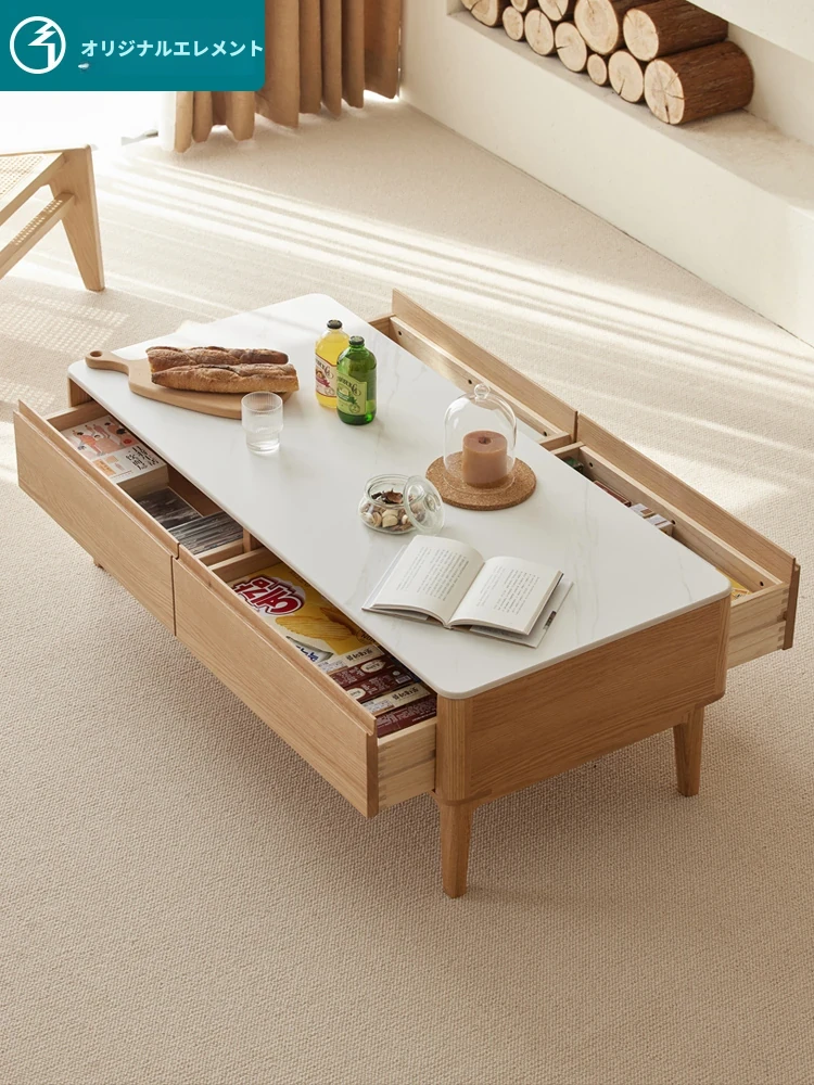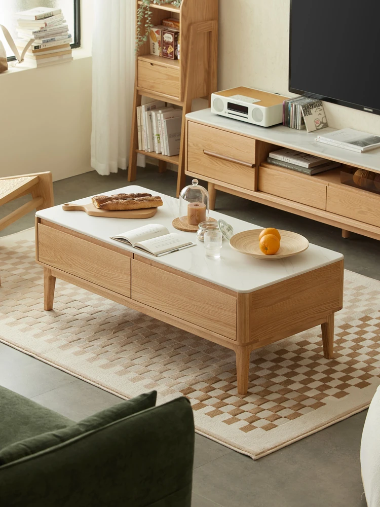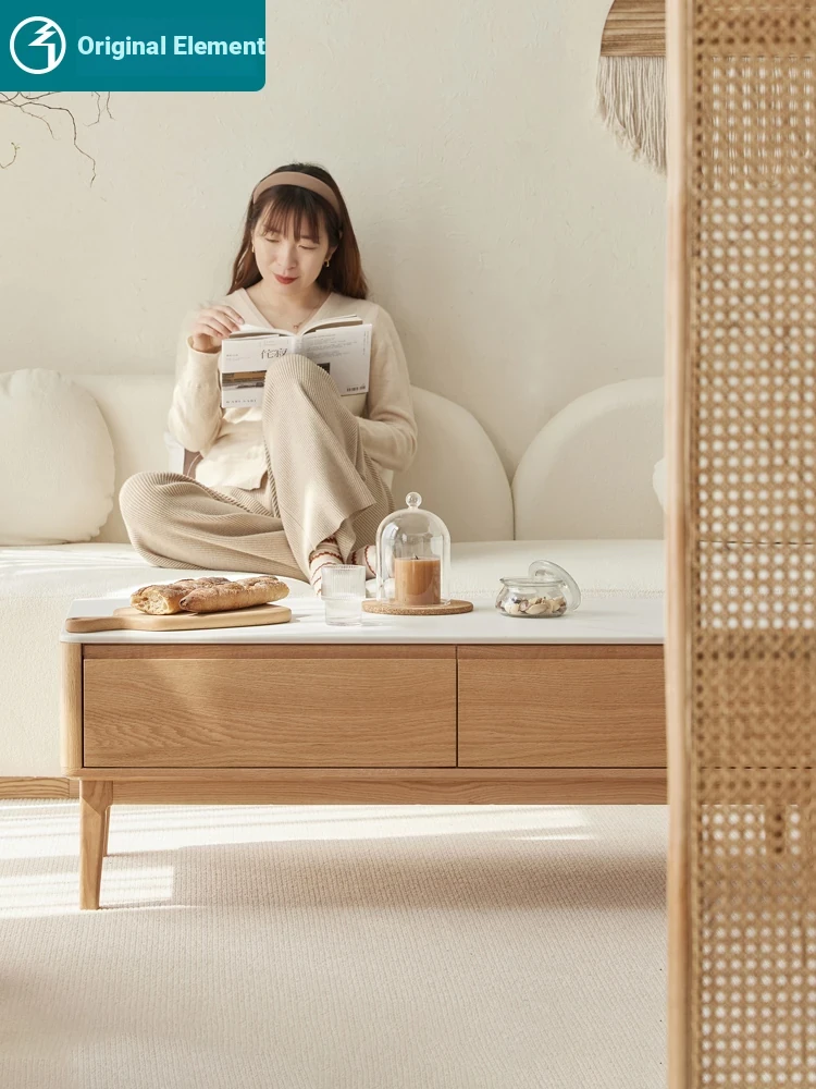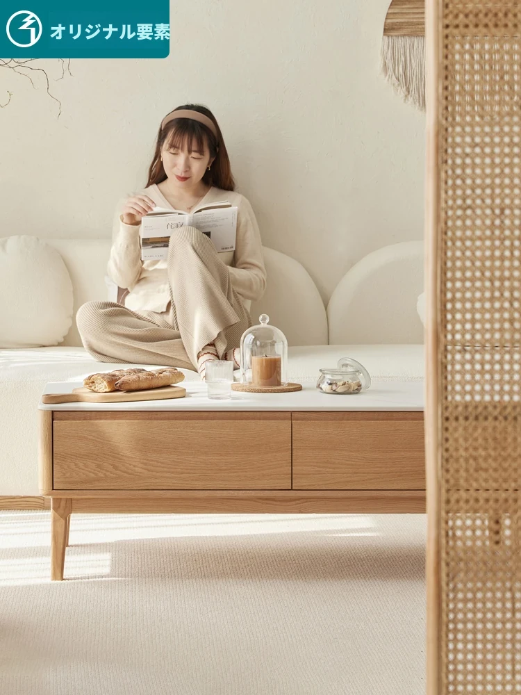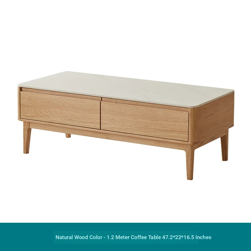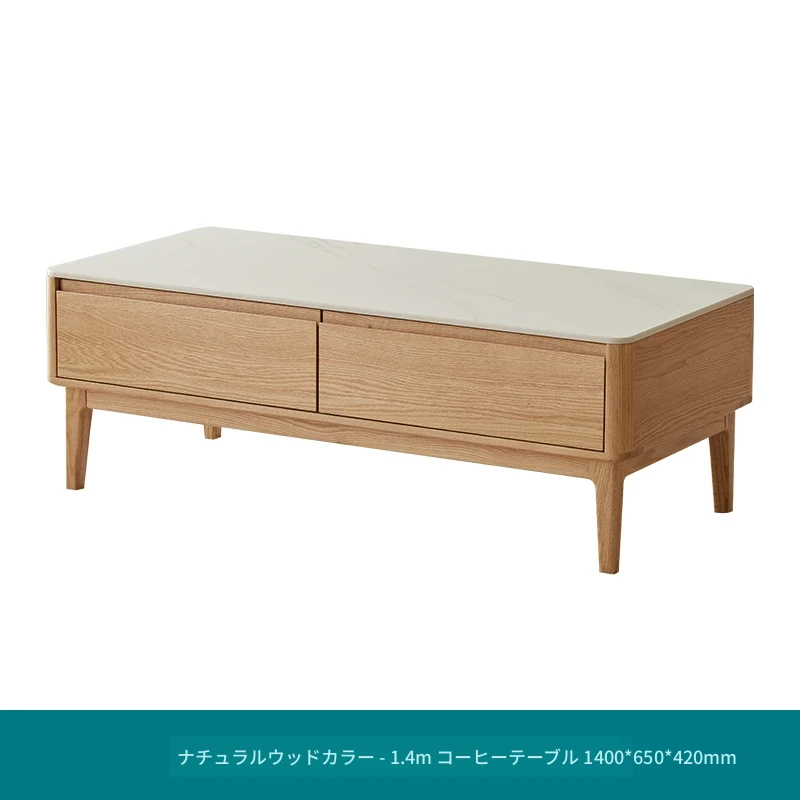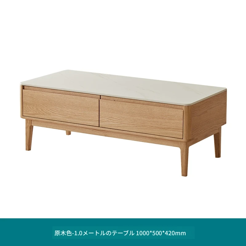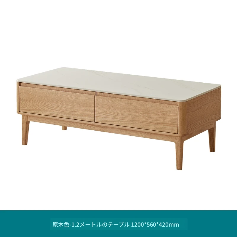 原木の魅力、モダンなデザインの小型リビングテーブル - 岩板仕様のオーク製茶卓、狭いスペースにも最適!家庭用にぴったりなスタイリッシュな茶台。