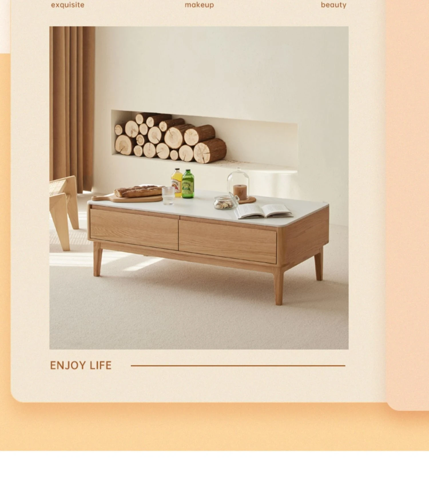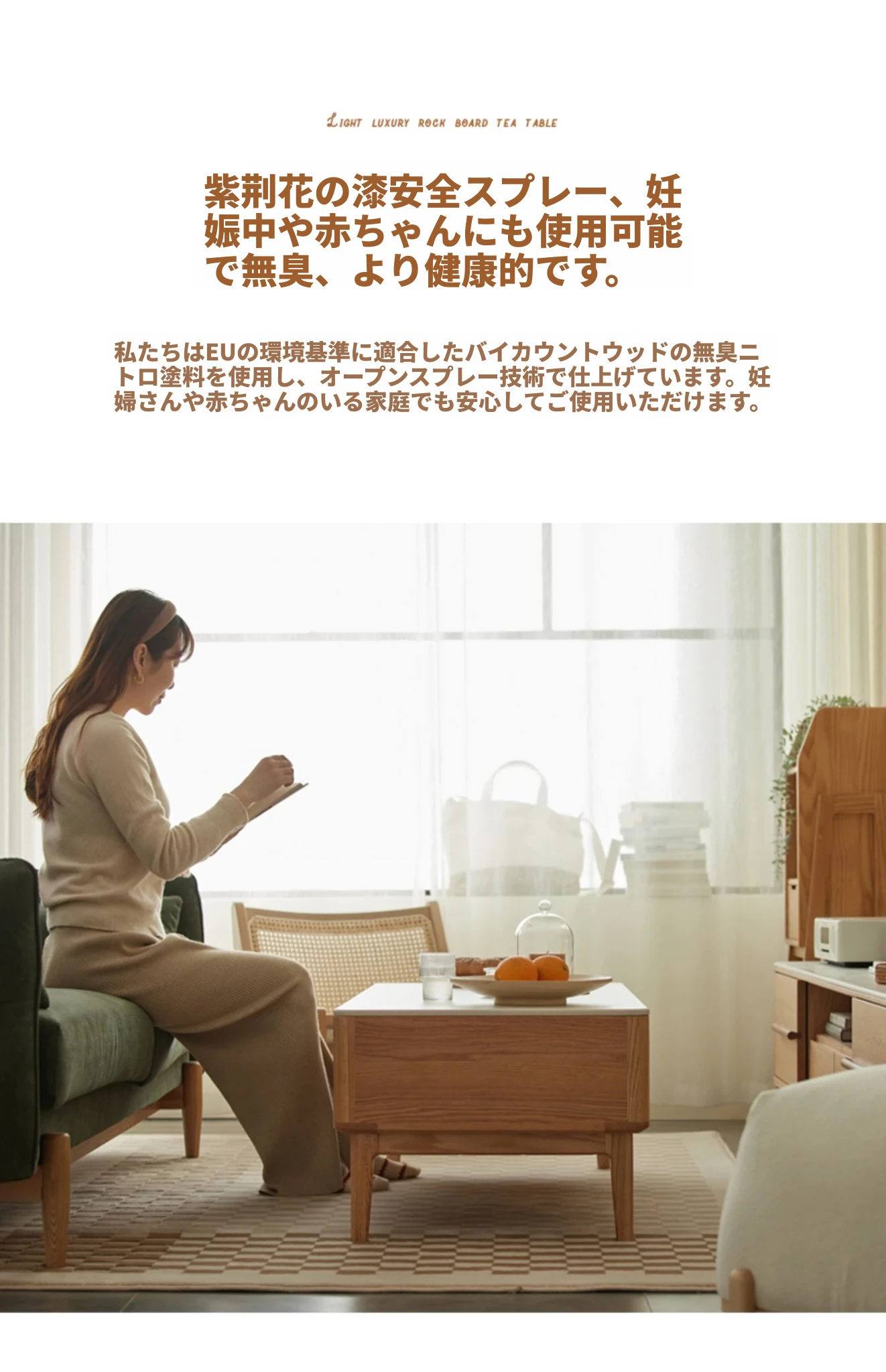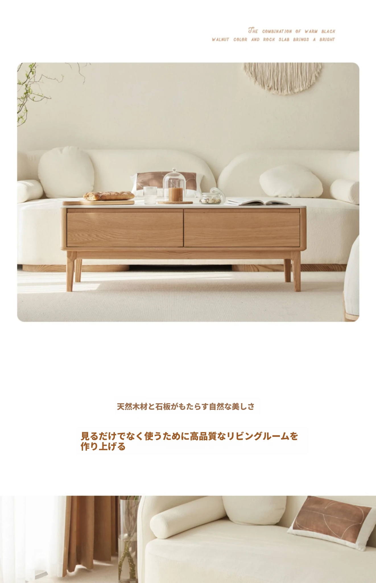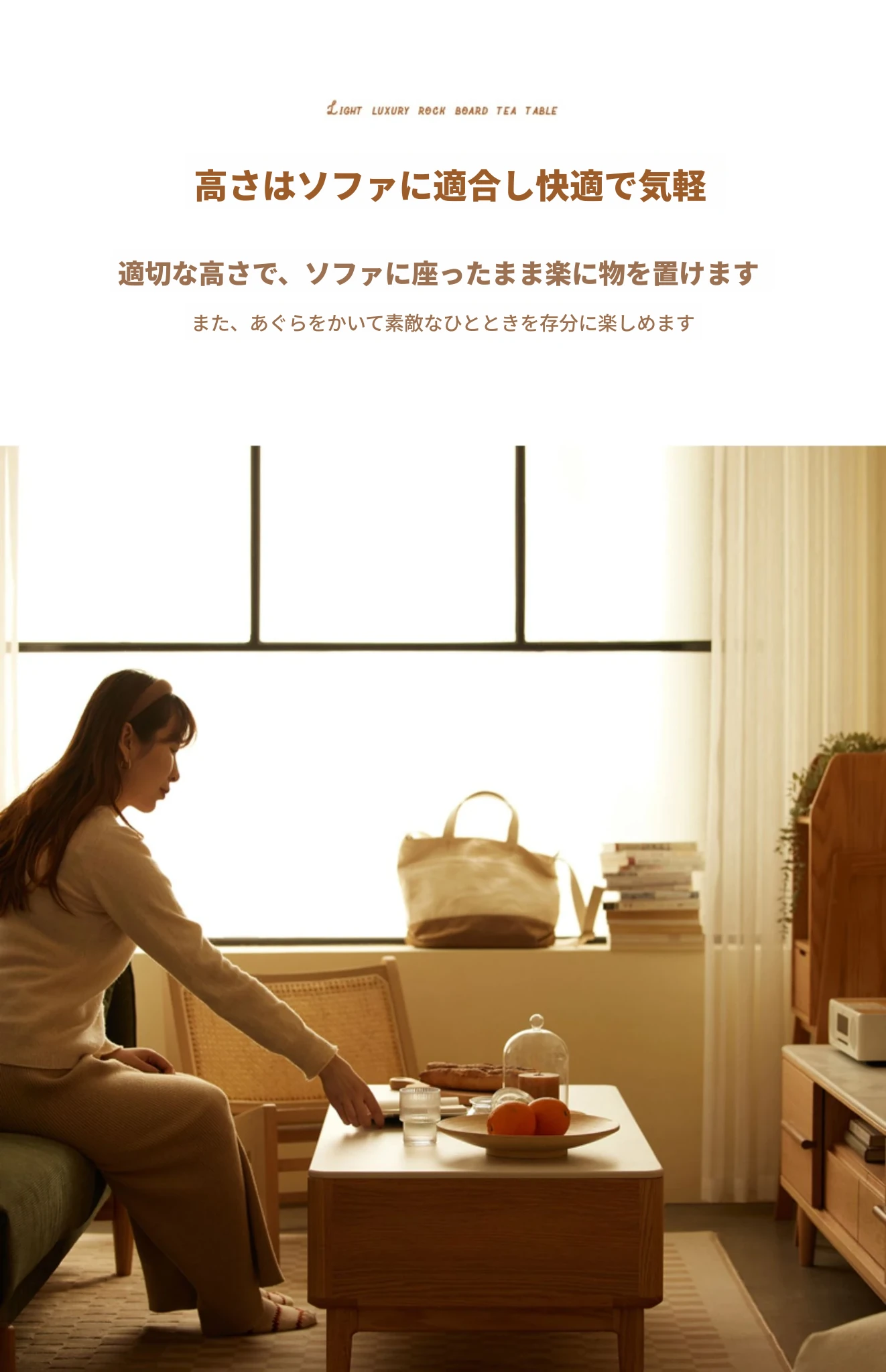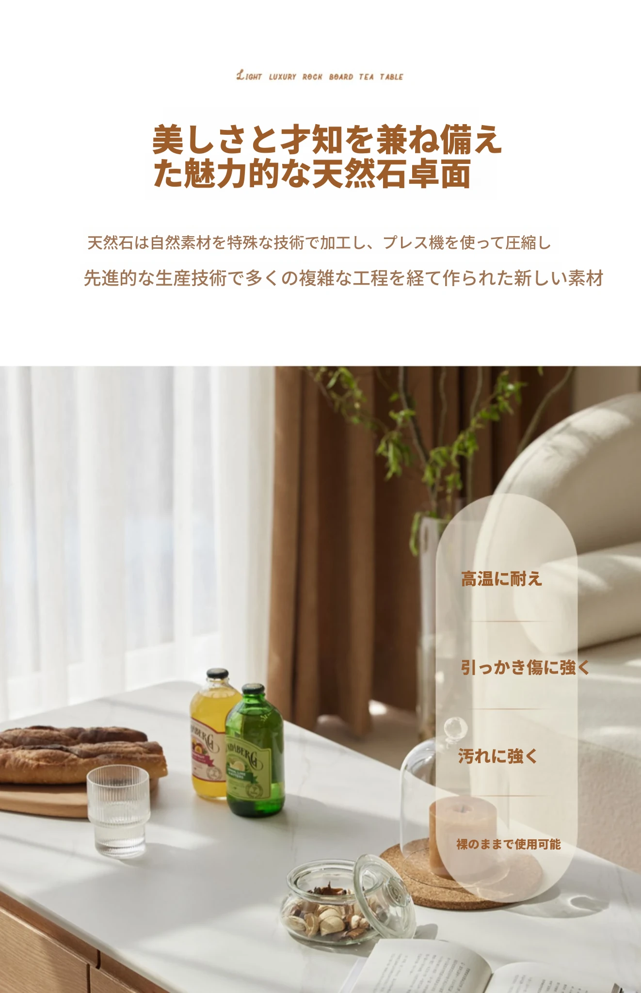 原木の魅力、モダンなデザインの小型リビングテーブル - 岩板仕様のオーク製茶卓、狭いスペースにも最適!家庭用にぴったりなスタイリッシュな茶台。
