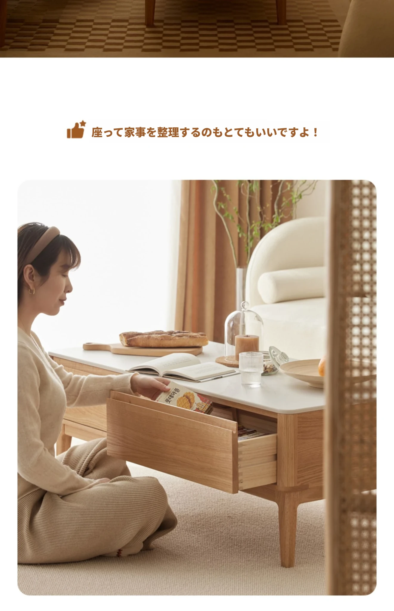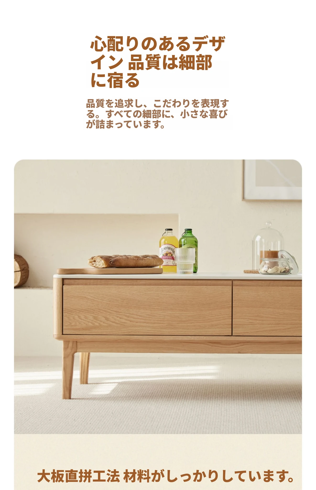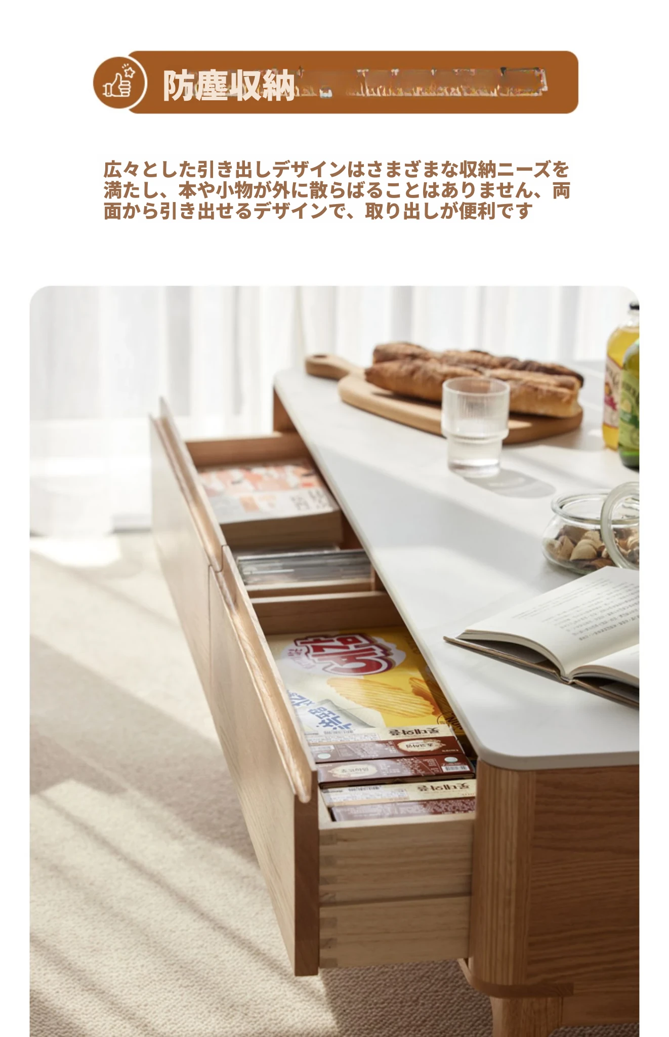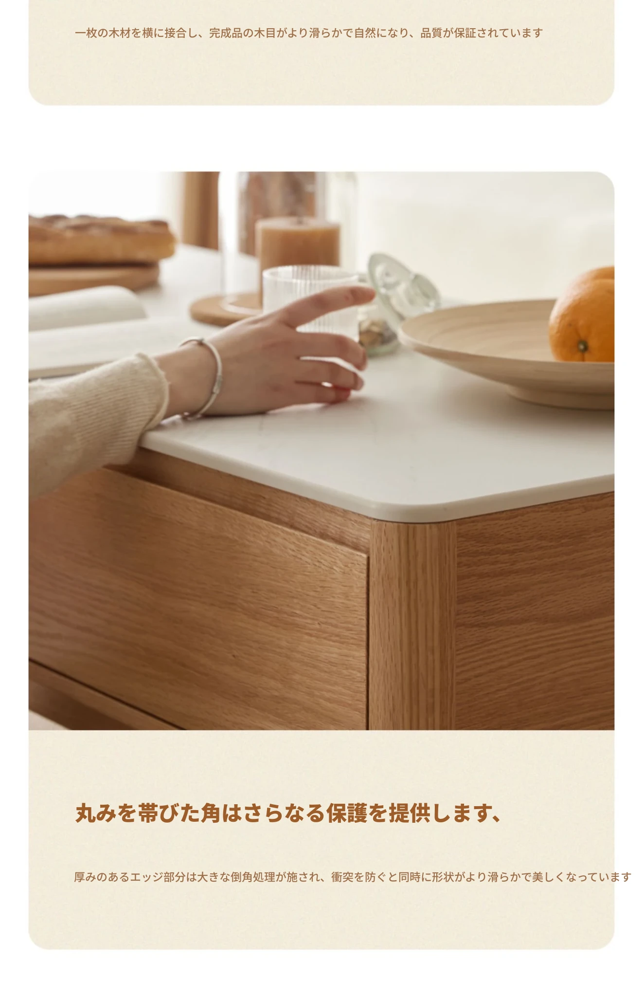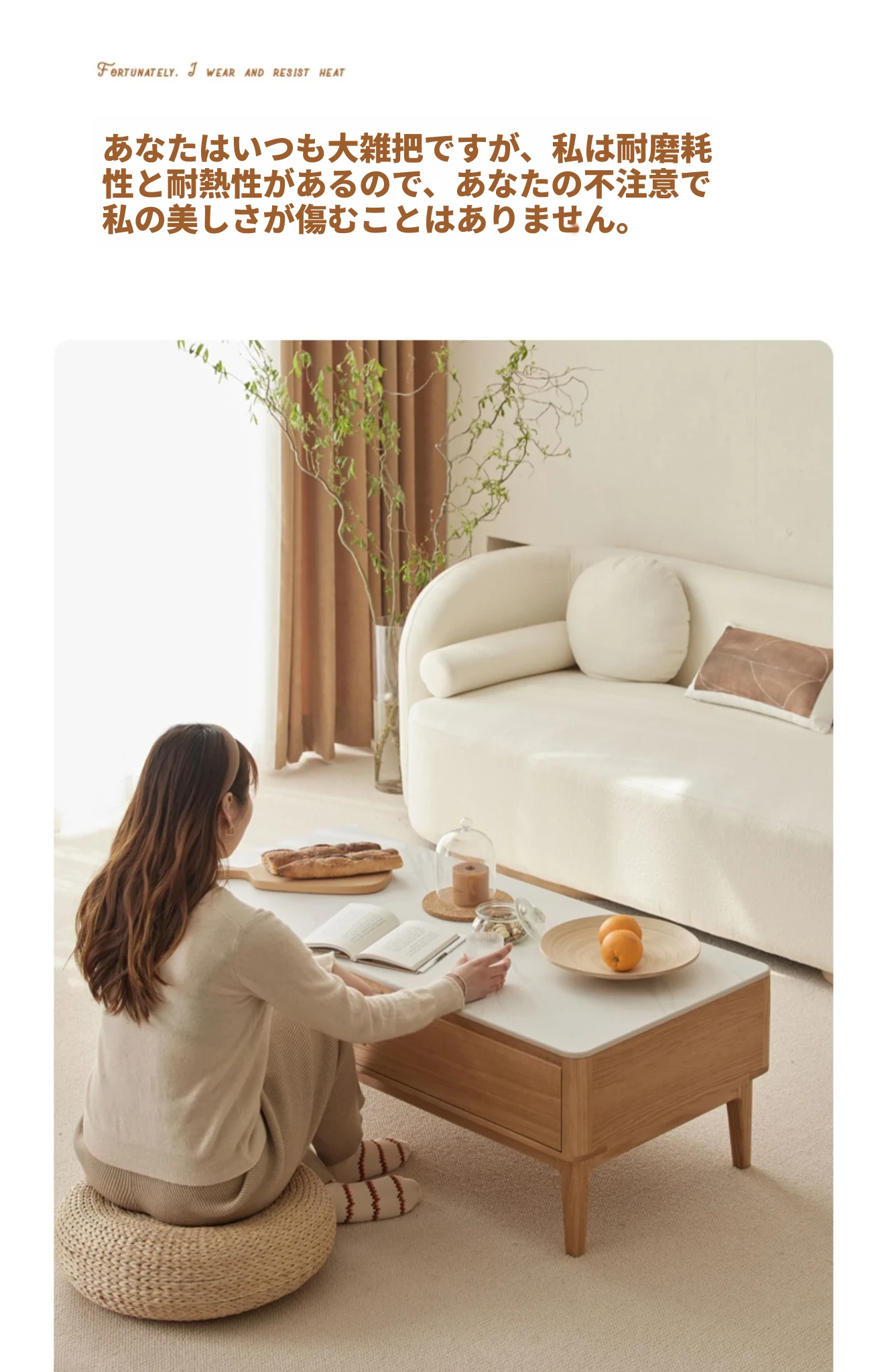 原木の魅力、モダンなデザインの小型リビングテーブル - 岩板仕様のオーク製茶卓、狭いスペースにも最適!家庭用にぴったりなスタイリッシュな茶台。