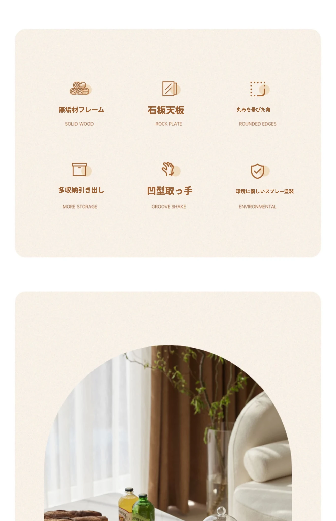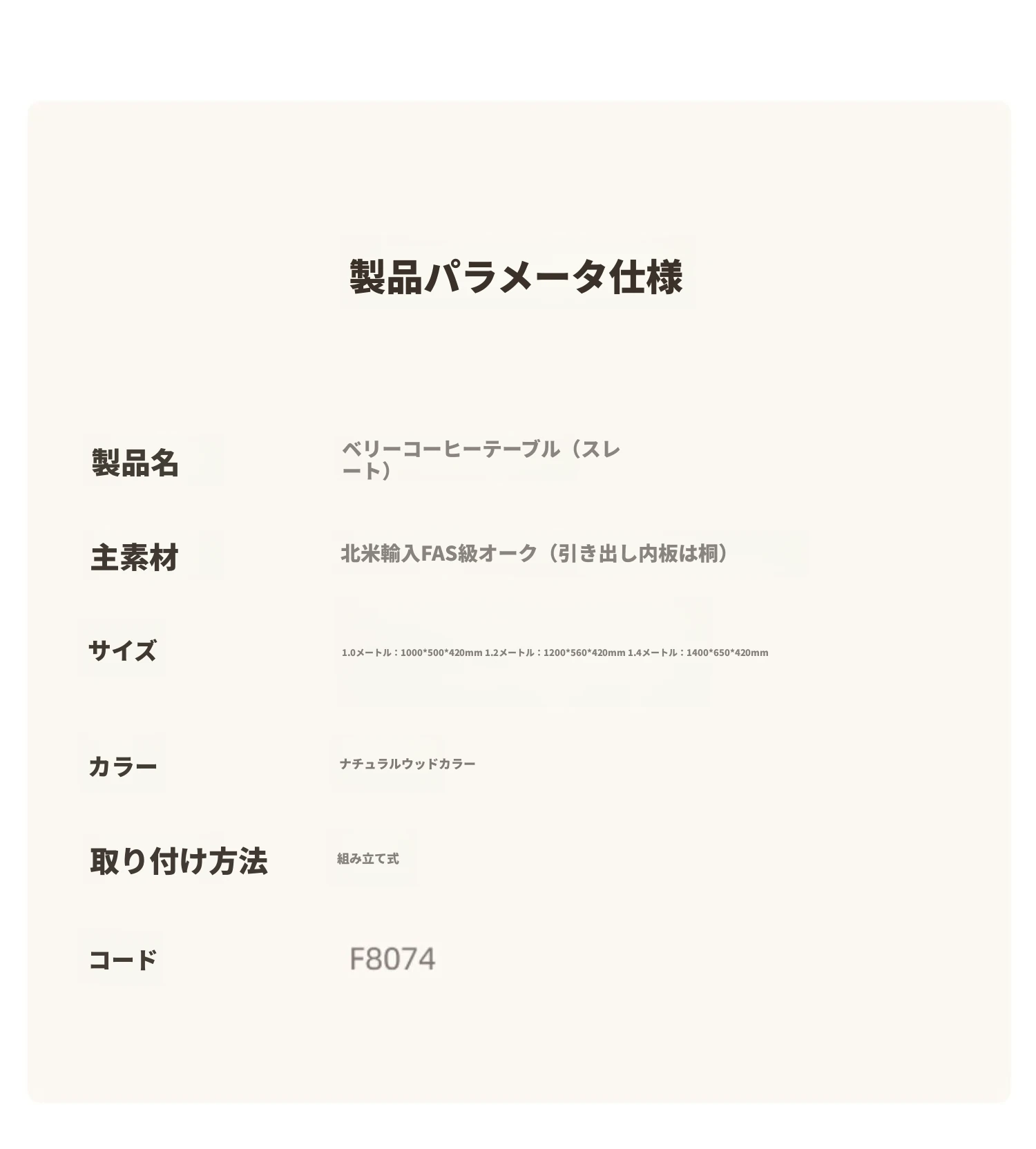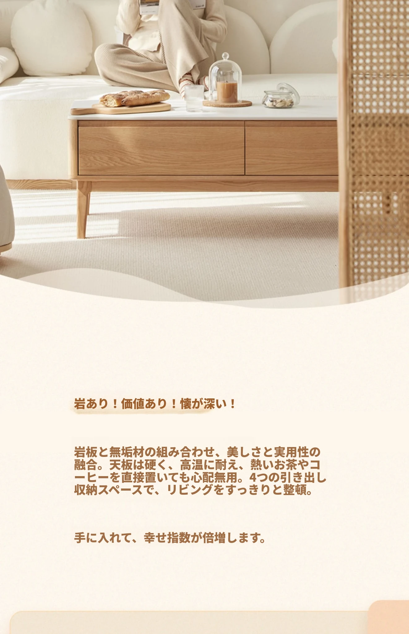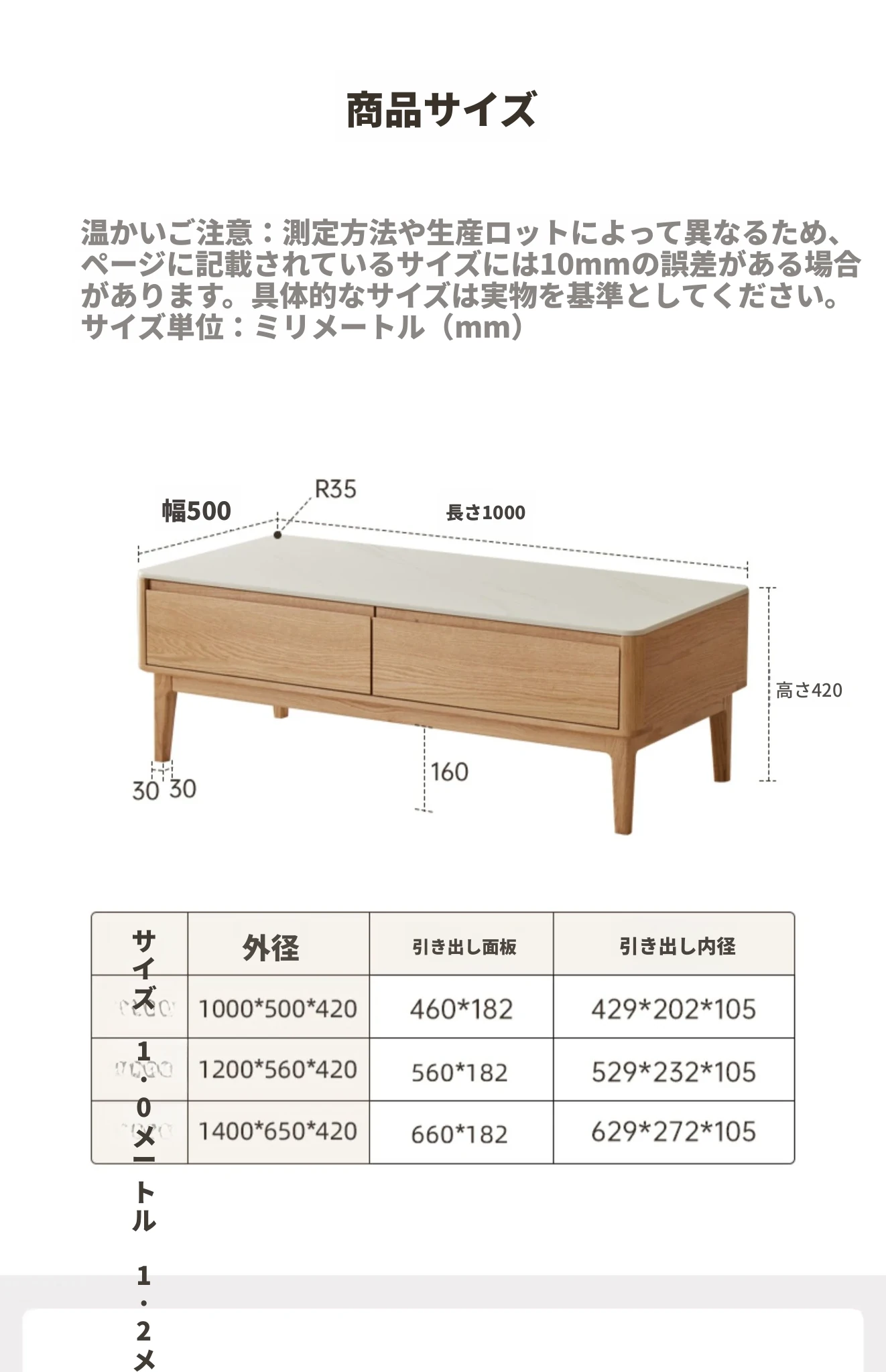 【ナチュラルウッド】(魚のお腹の白)1.0m岩板コーヒーテーブル 1000*500*430mm
