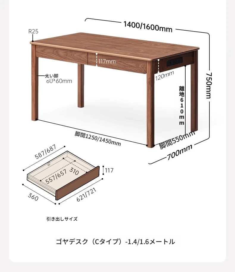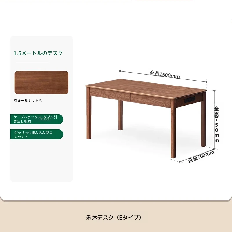 ブラックウォールナット-1.6m二引き出しデスク(1600*700*750mm)