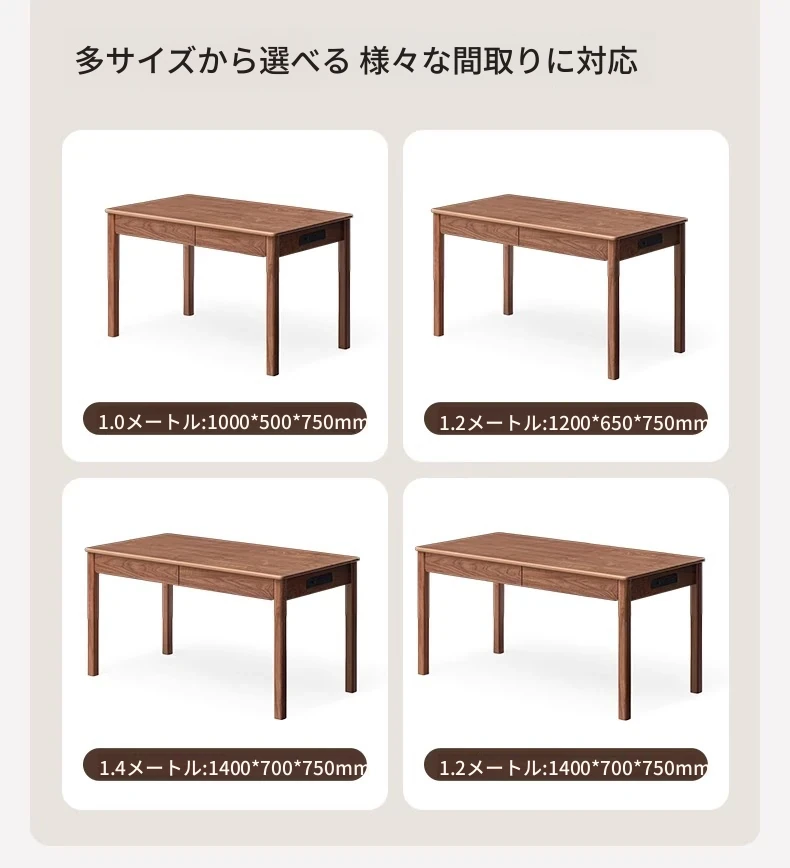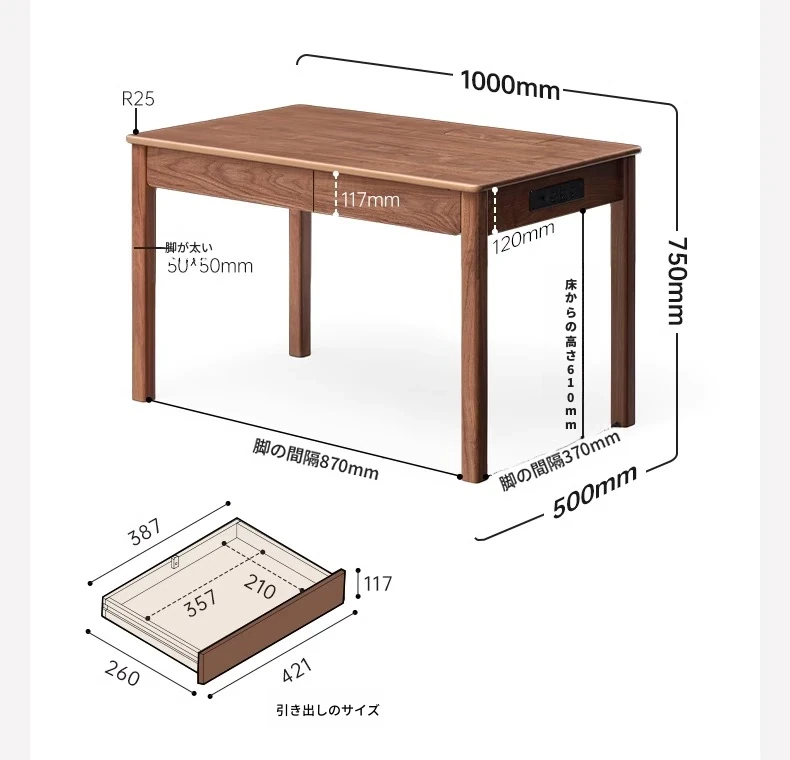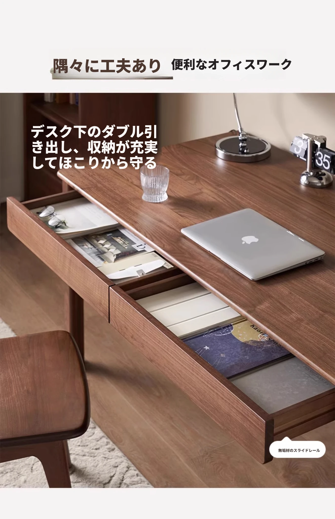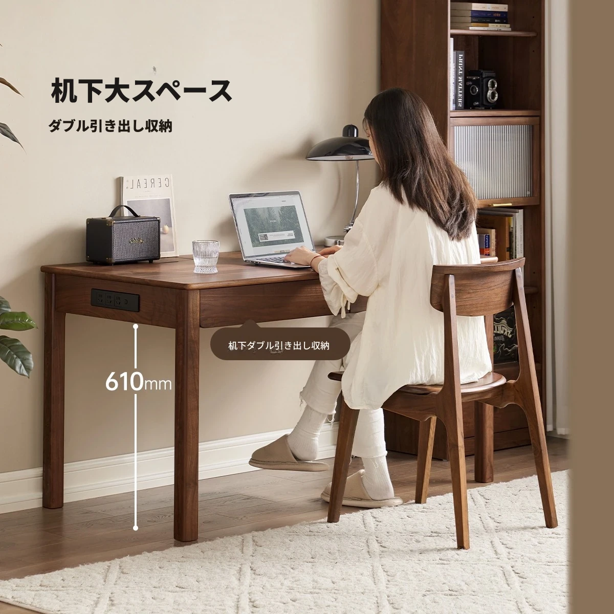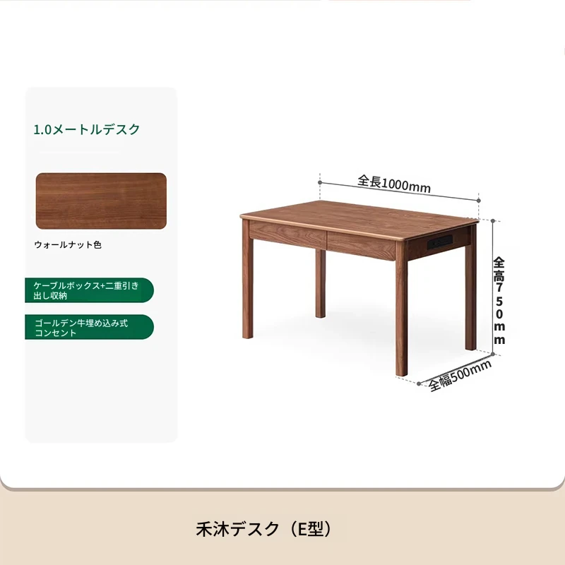 ブラックウォールナット-1.0m二引き出しデスク(1000*500*750mm)