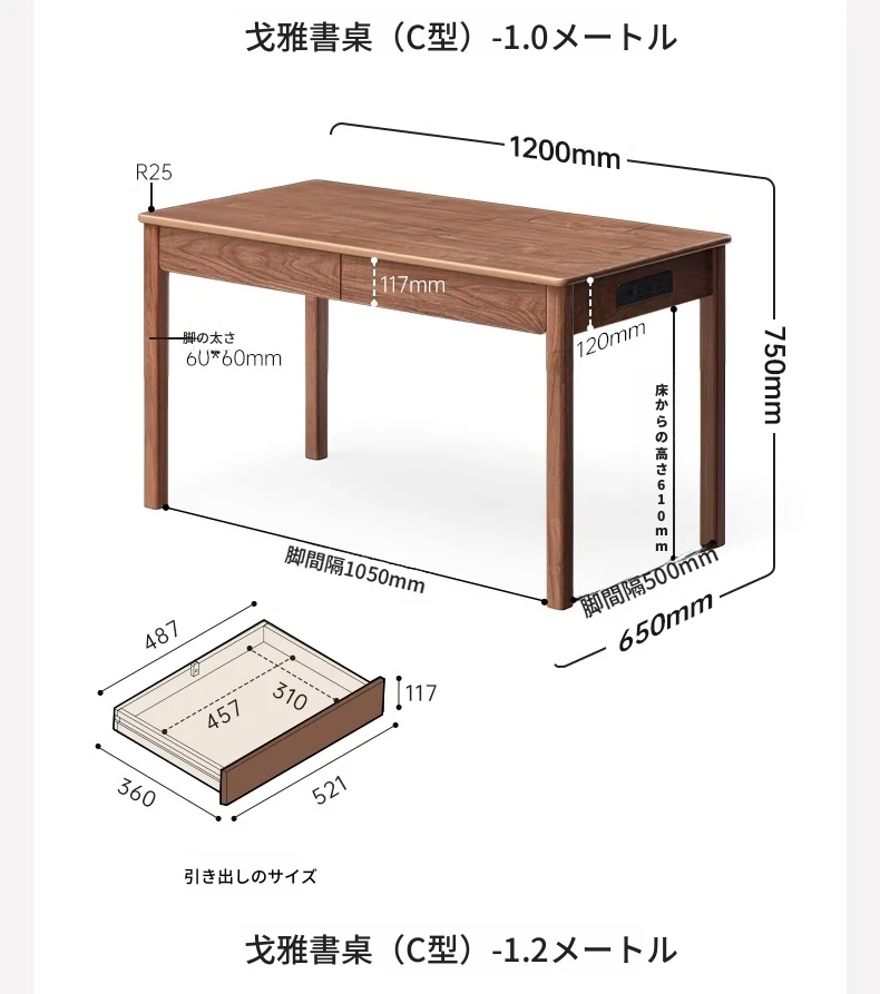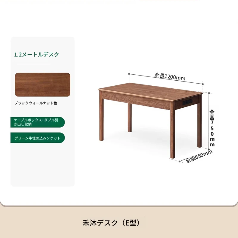 ブラックウォールナット-1.2m二引き出しデスク(1200*650*750mm)