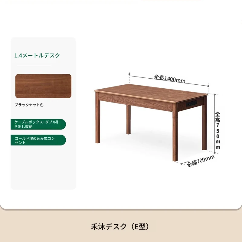 ブラックウォールナット-1.4m二引き出しデスク(1400*700*750mm)
