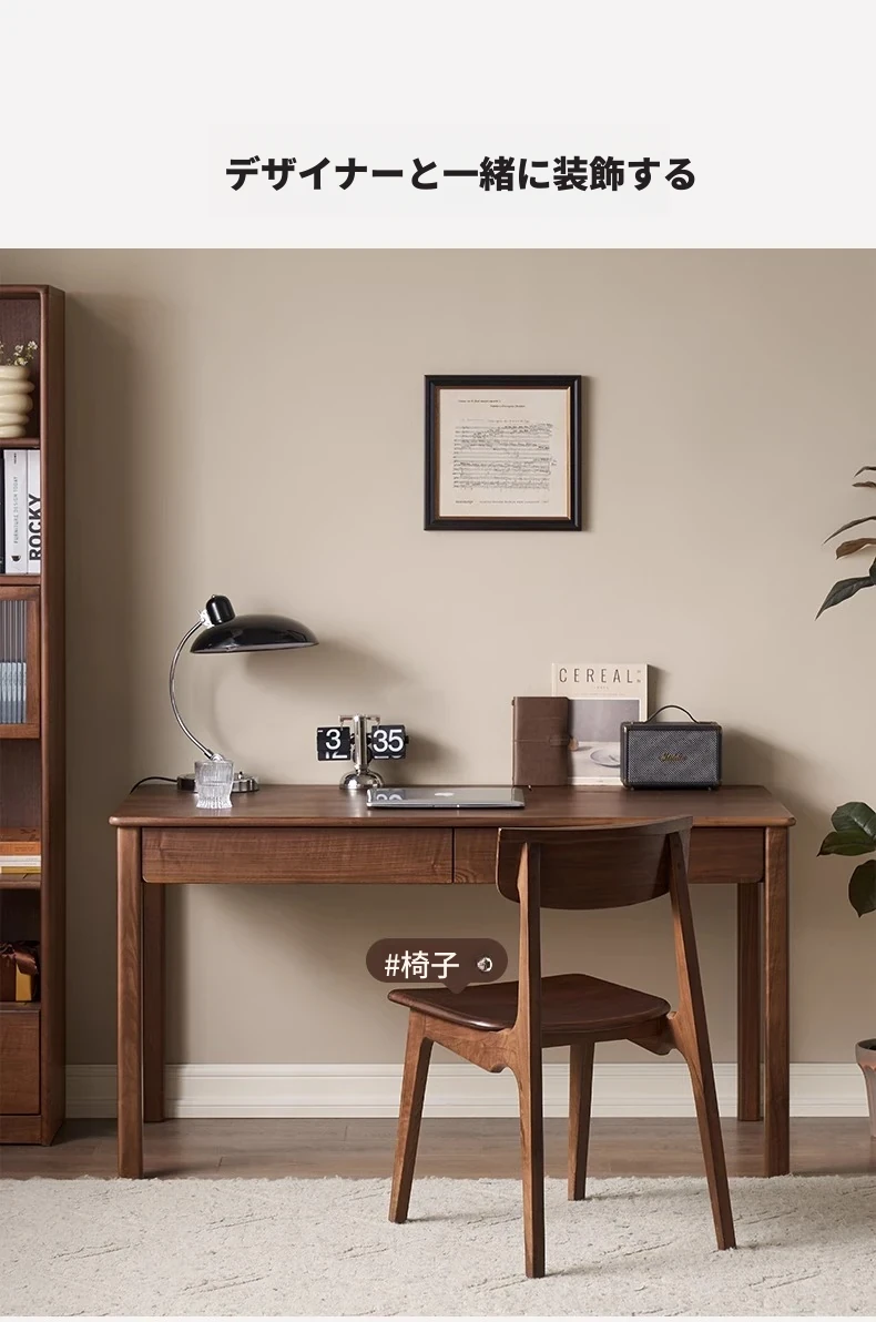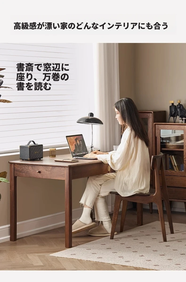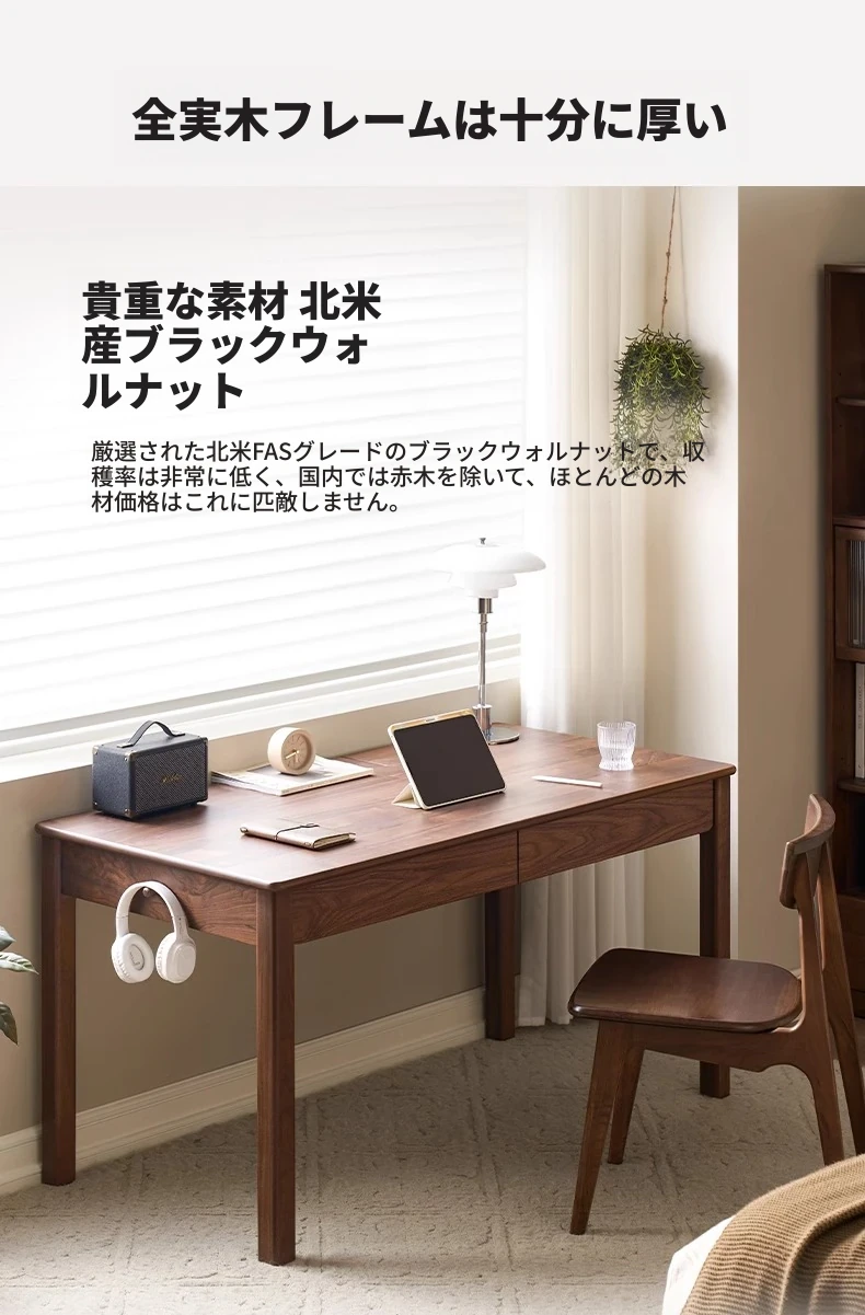 オリジナルエレメントの無垢材デスク - モダンシンプルなブラックウォルナットのパソコンデスク。北欧スタイルの書斎用ライティングデスク、学習に最適なスタイリッシュな机です。