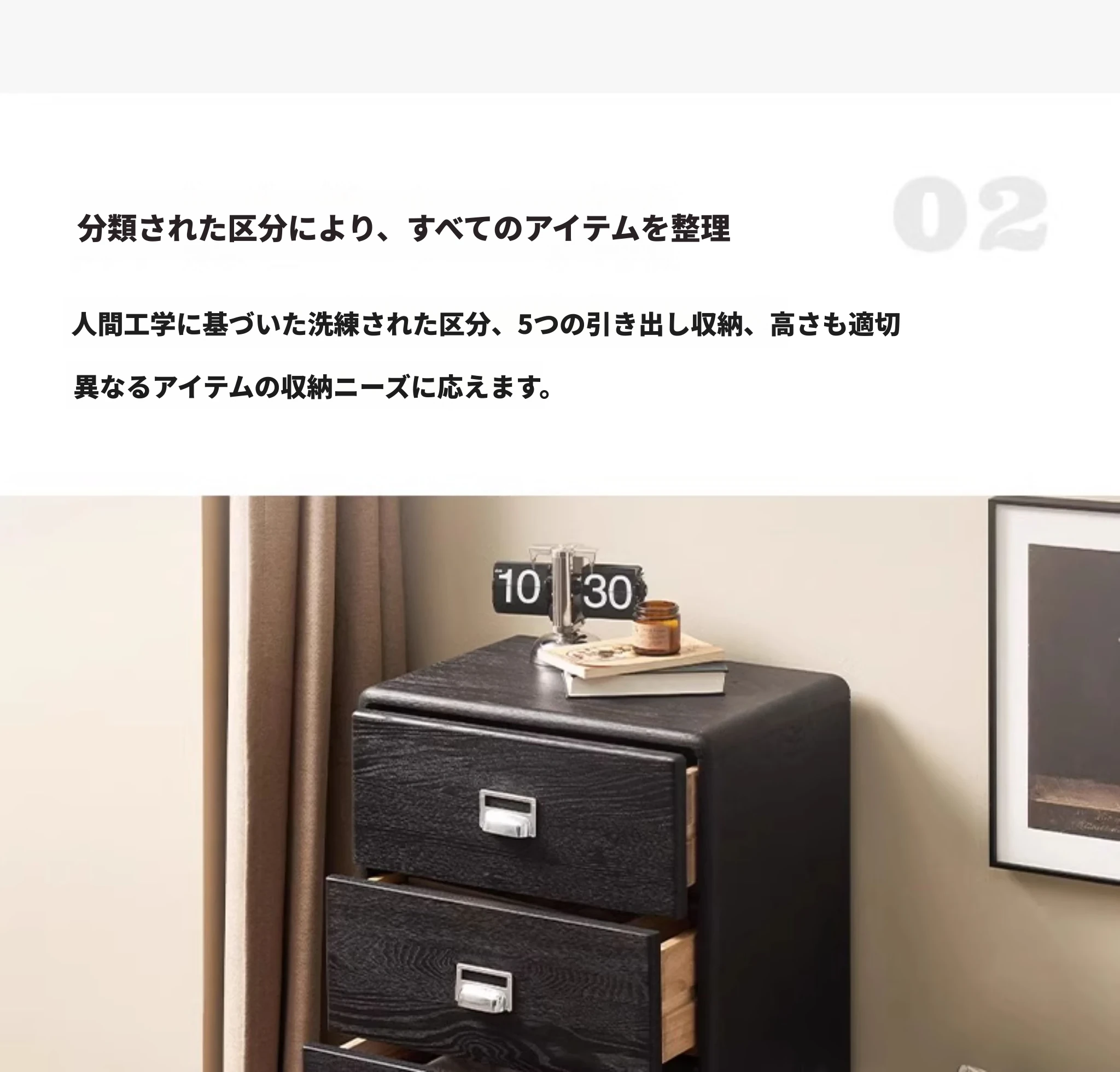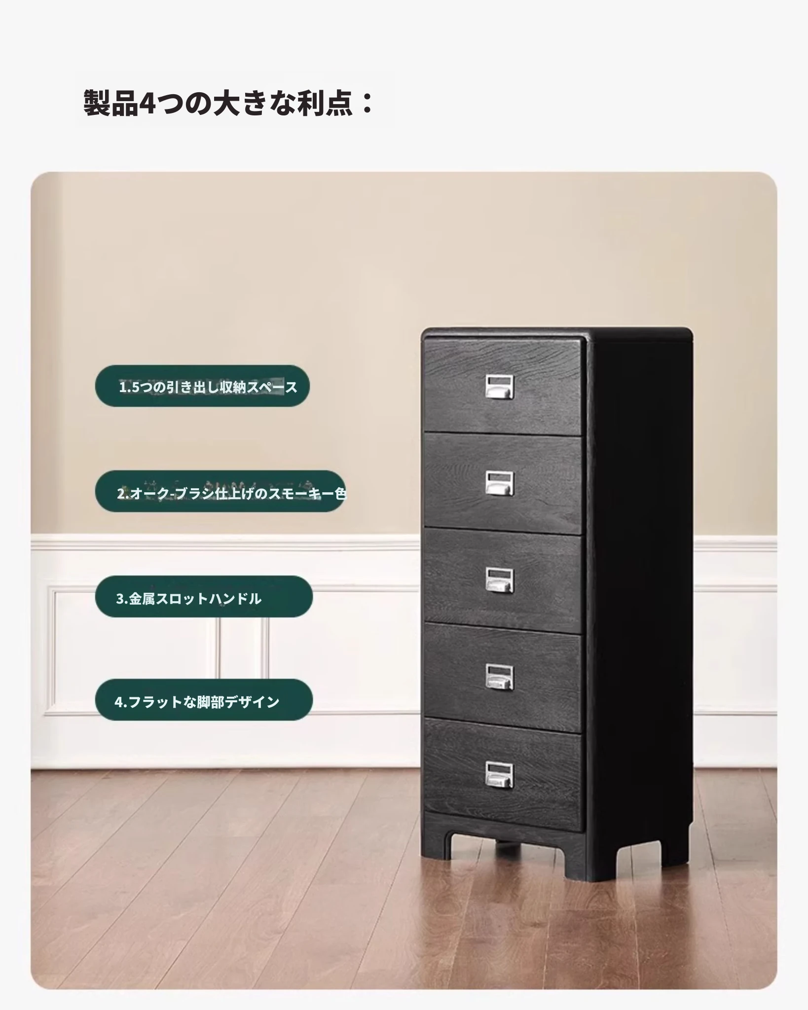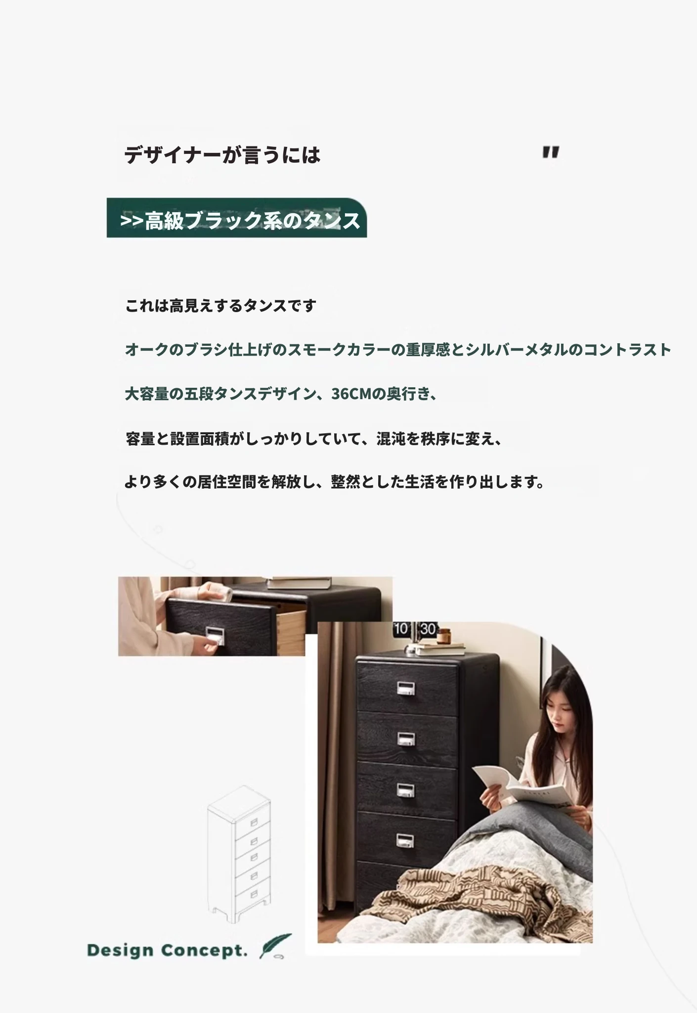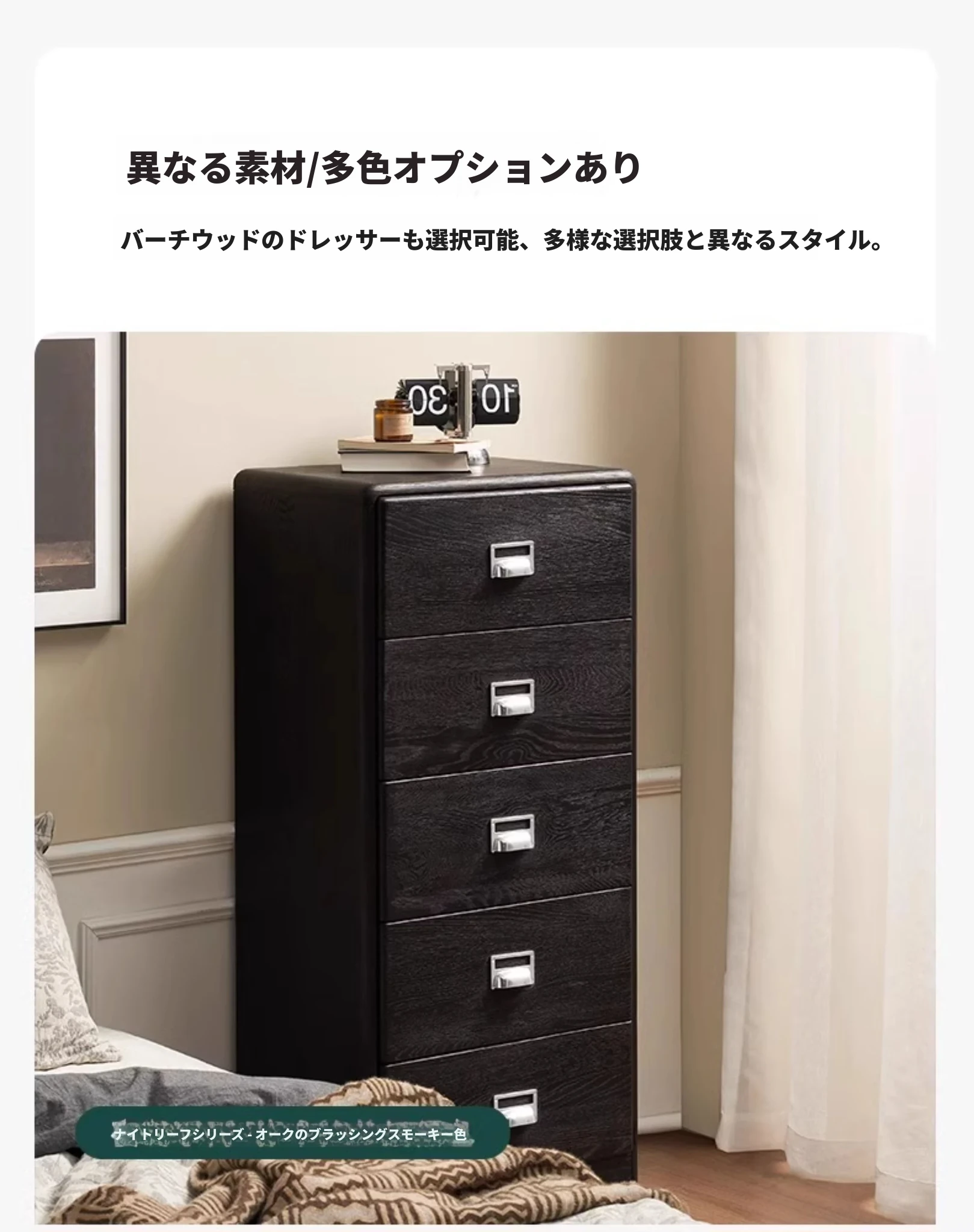 原生素材の無垢材を使用した現代的なモダンデザインの5段タンス - 小型住宅に最適なスタイリッシュな収納家具、寝室のための理想的な整理整頓アイテム。あなたの生活空間を美しく整えましょう!
