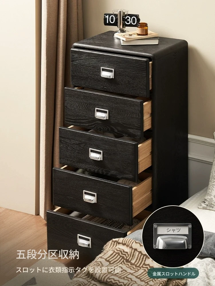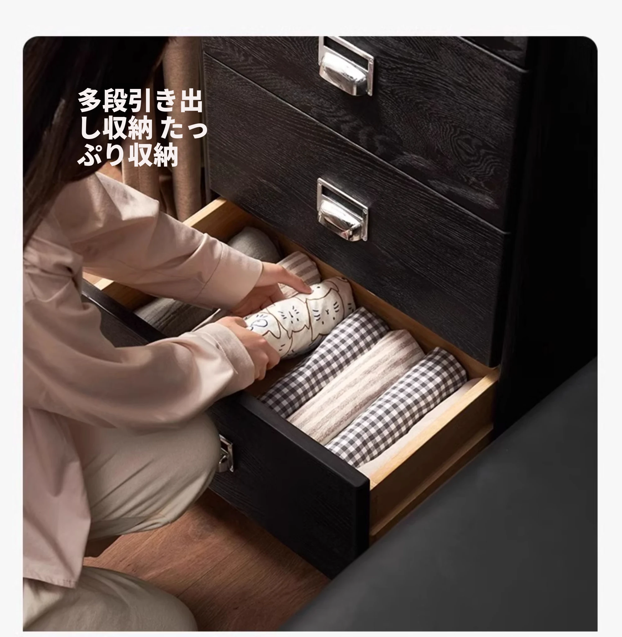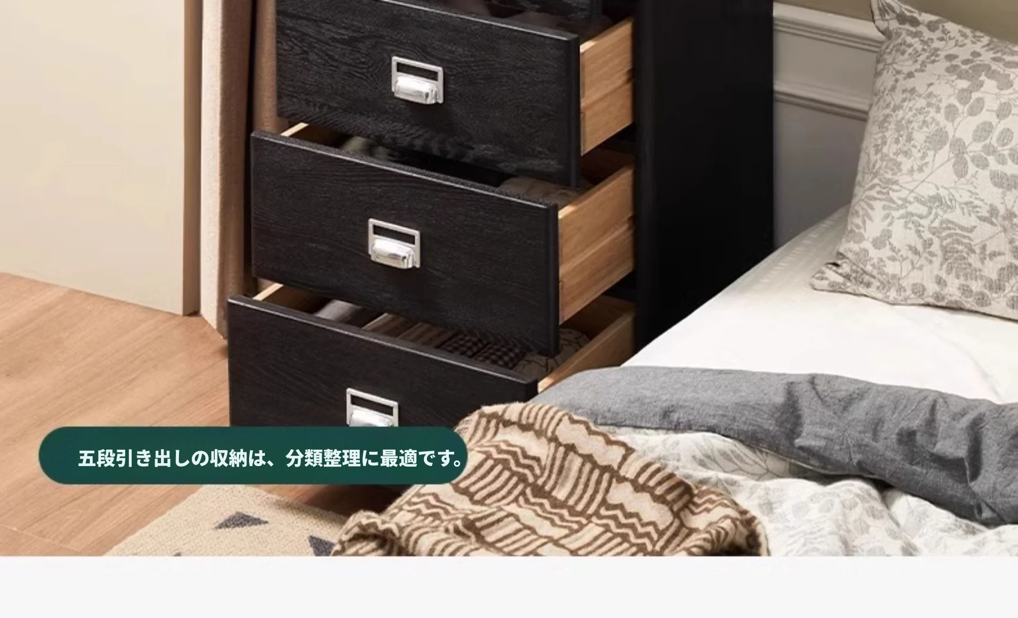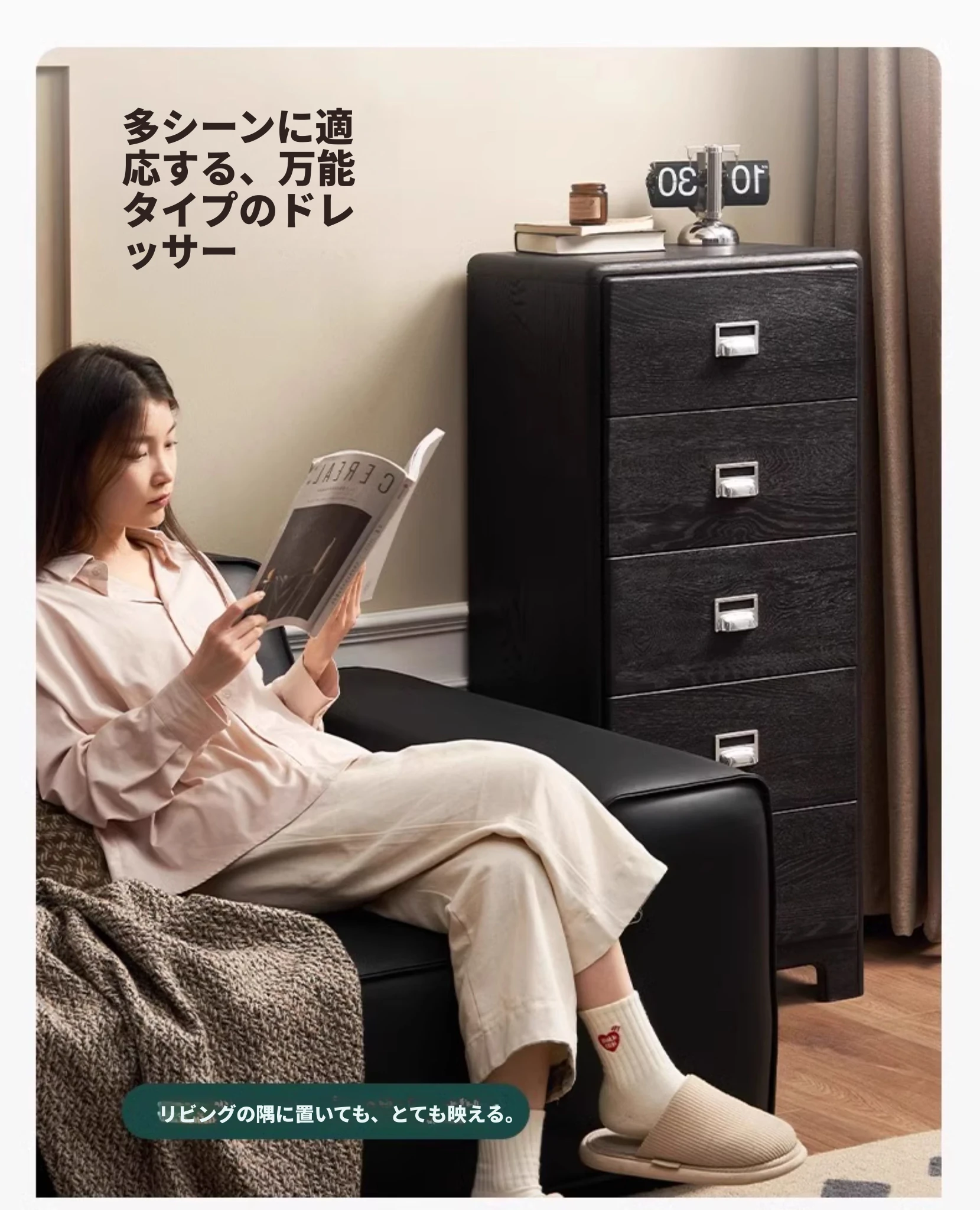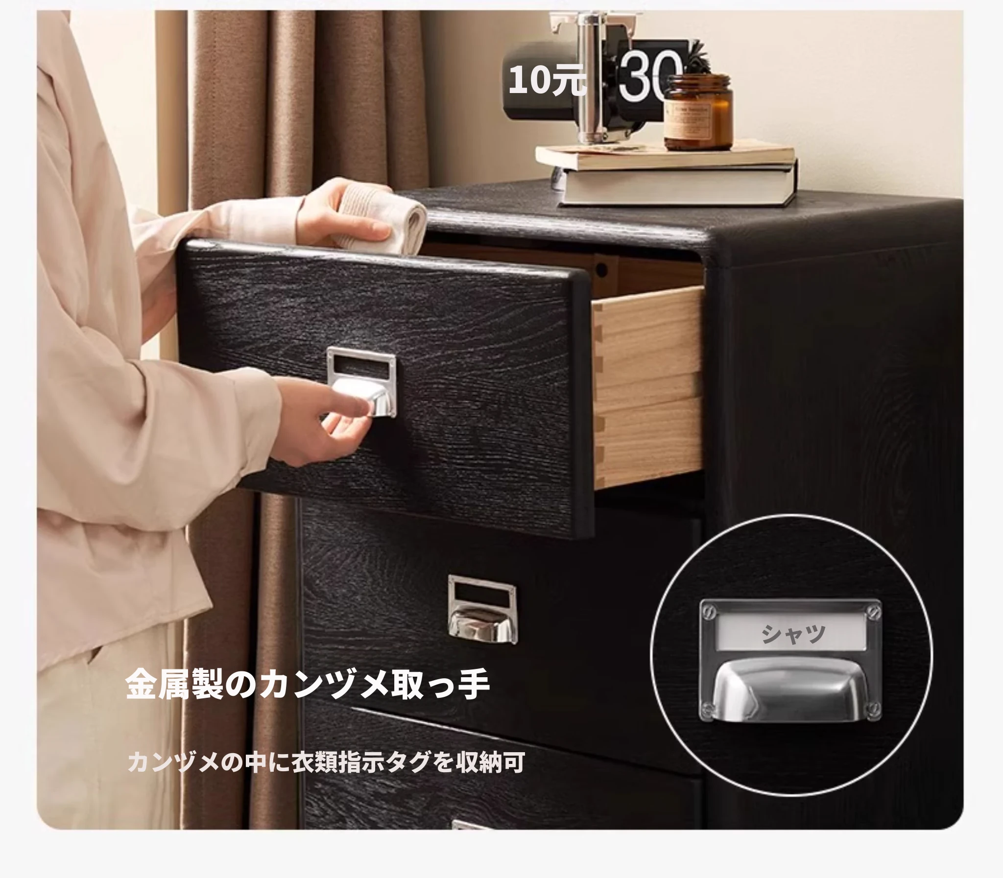 原生素材の無垢材を使用した現代的なモダンデザインの5段タンス - 小型住宅に最適なスタイリッシュな収納家具、寝室のための理想的な整理整頓アイテム。あなたの生活空間を美しく整えましょう!