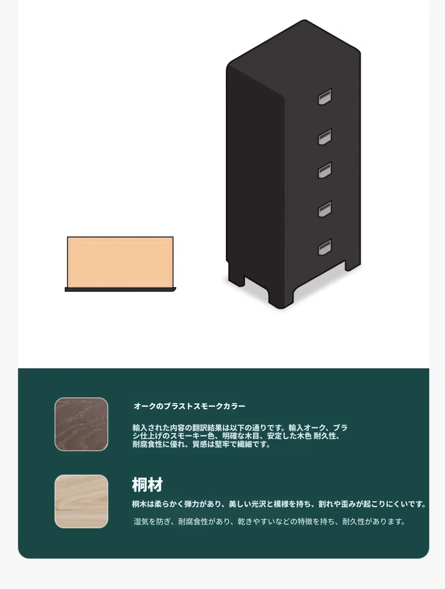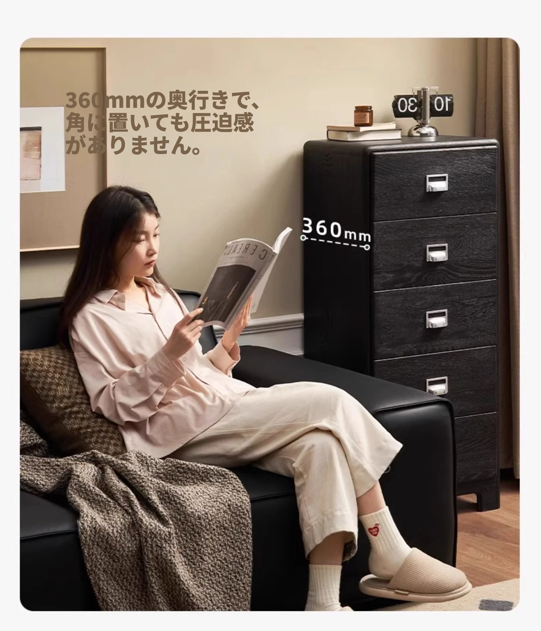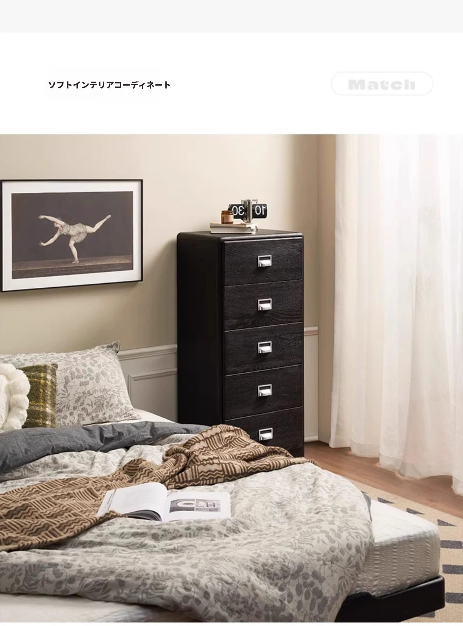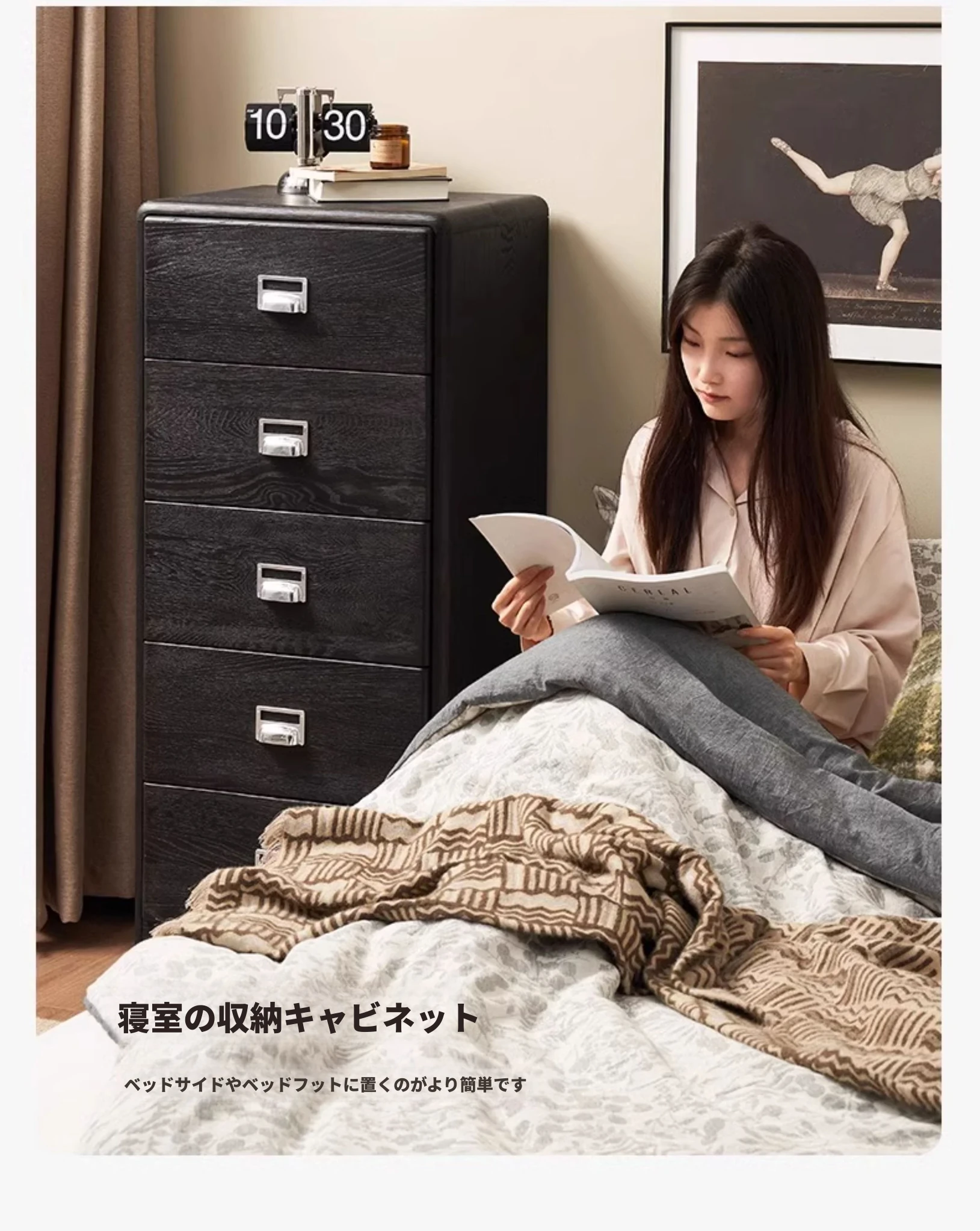 原生素材の無垢材を使用した現代的なモダンデザインの5段タンス - 小型住宅に最適なスタイリッシュな収納家具、寝室のための理想的な整理整頓アイテム。あなたの生活空間を美しく整えましょう!