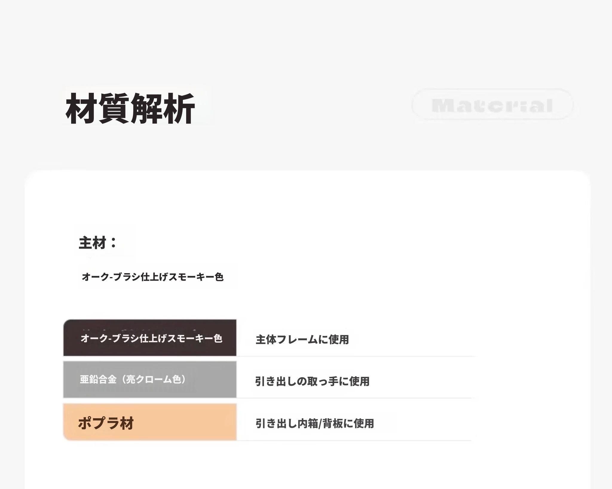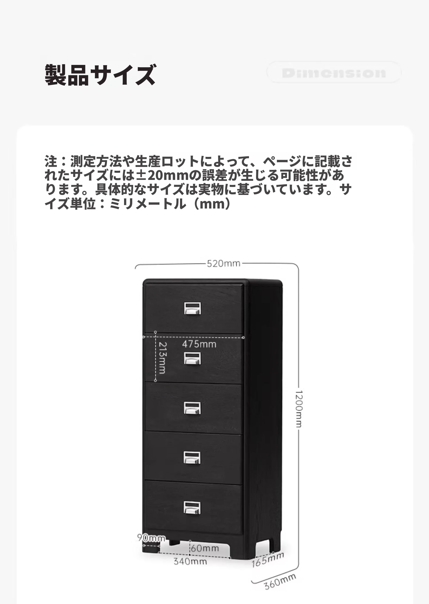 スモークカラー・幅0.52mの5段チェスト(520*360*1200mm)