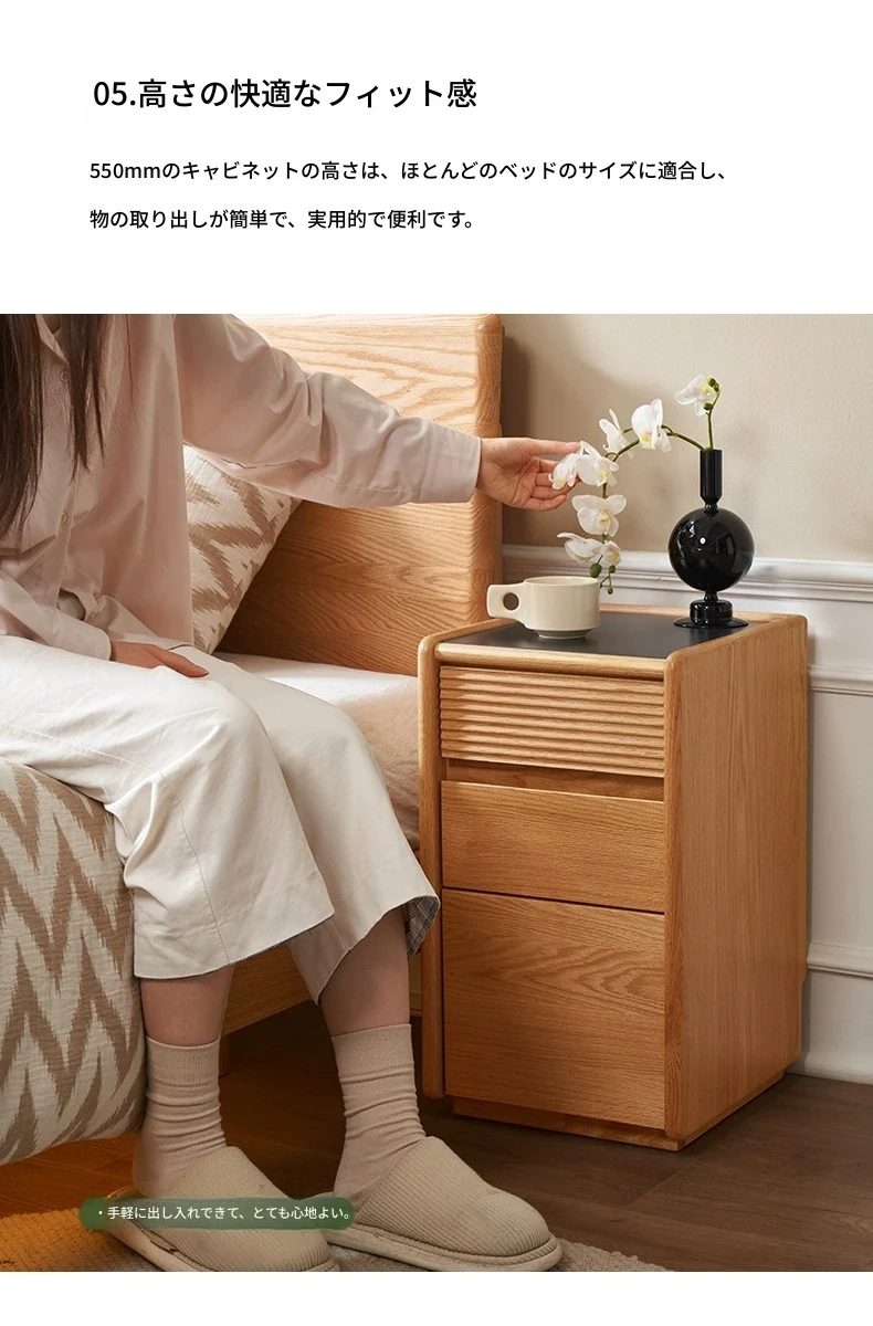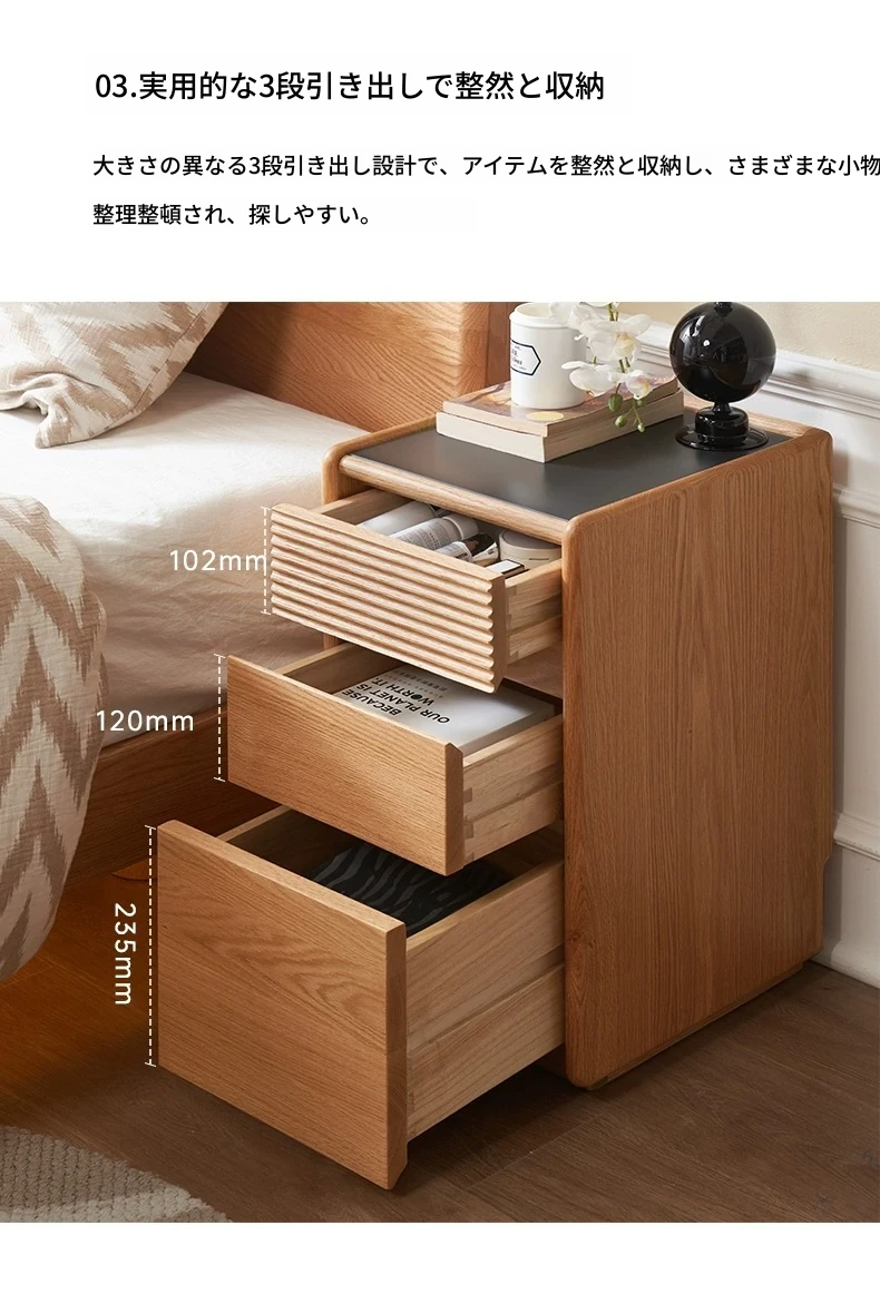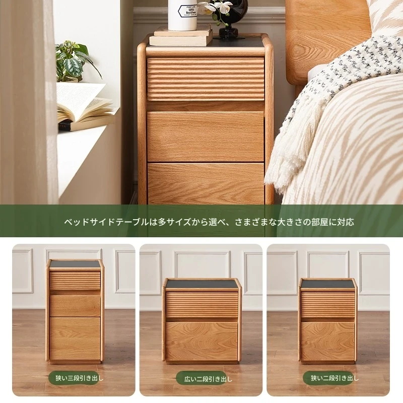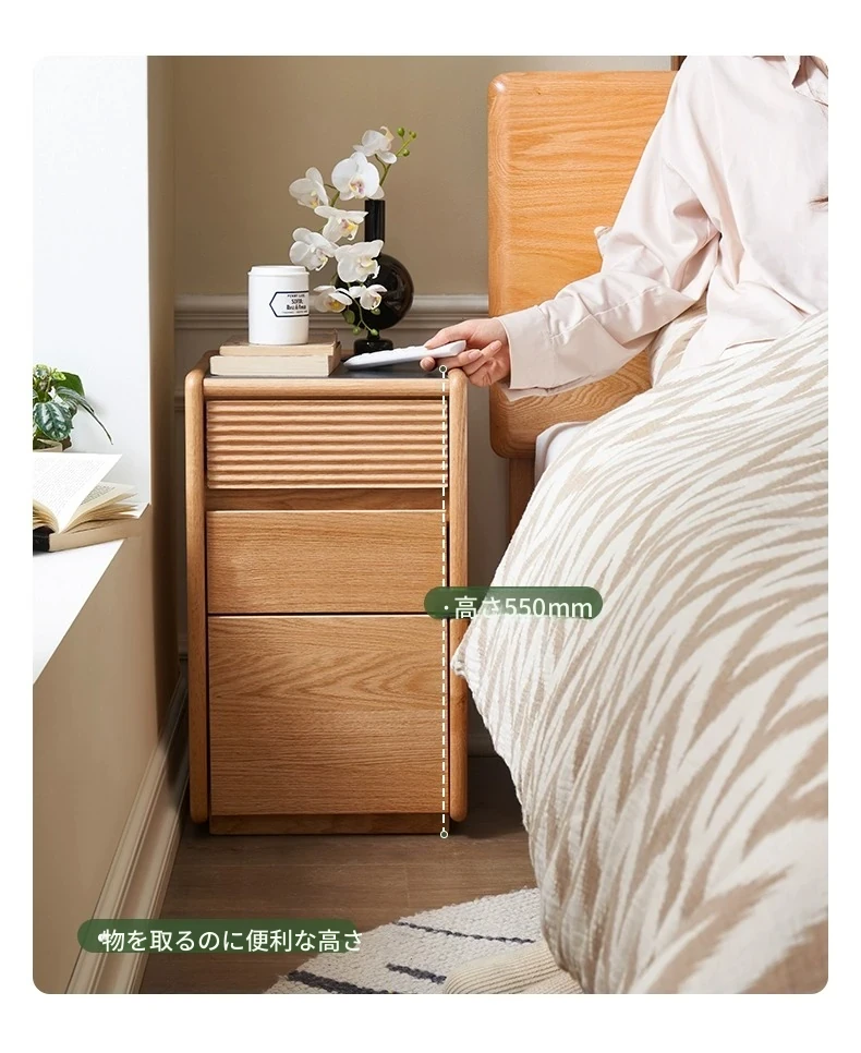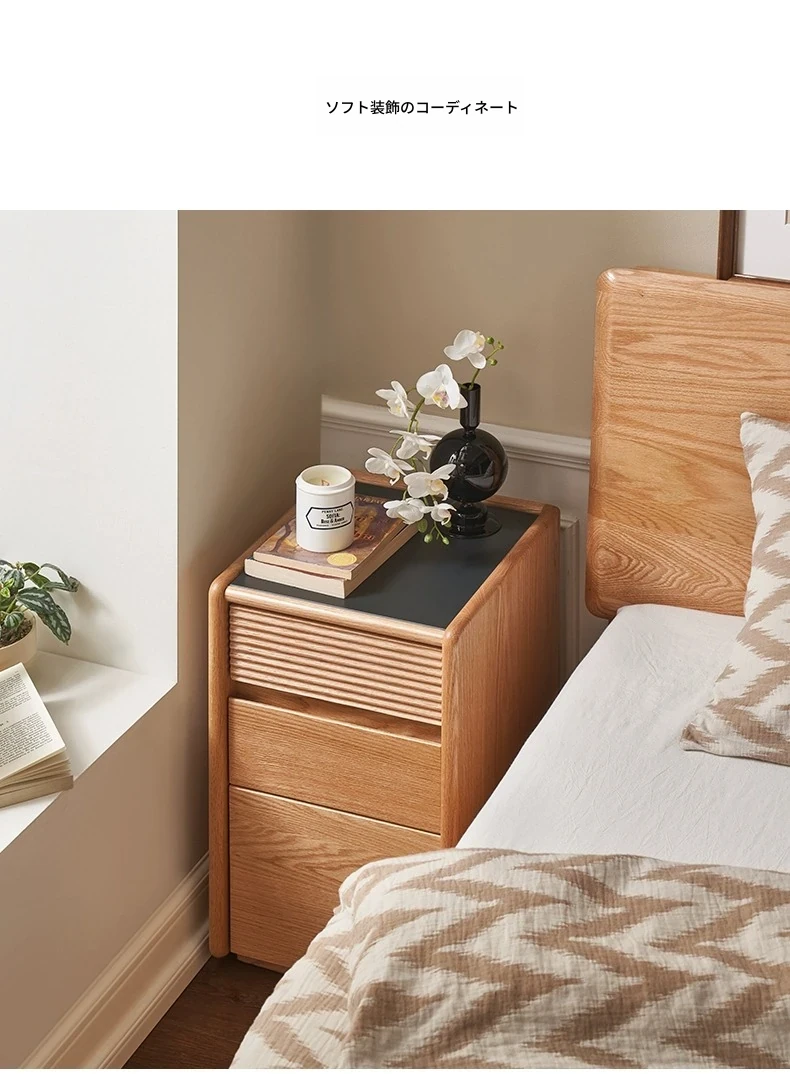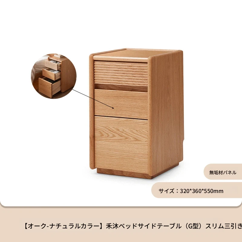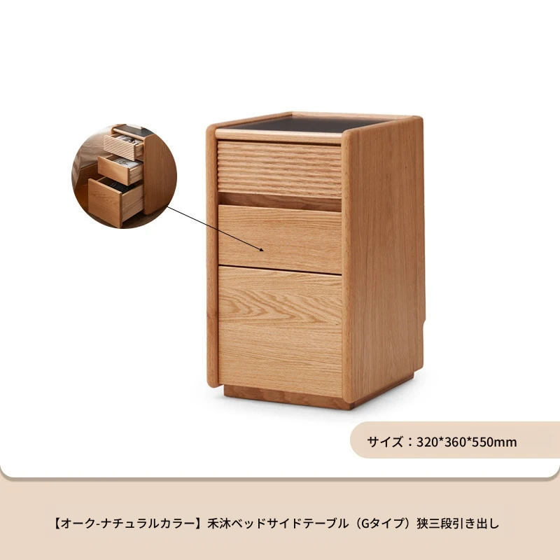 【オーク-ナチュラルカラー】禾沐ベッドサイドテーブル(G型)ナロー三段引き出し