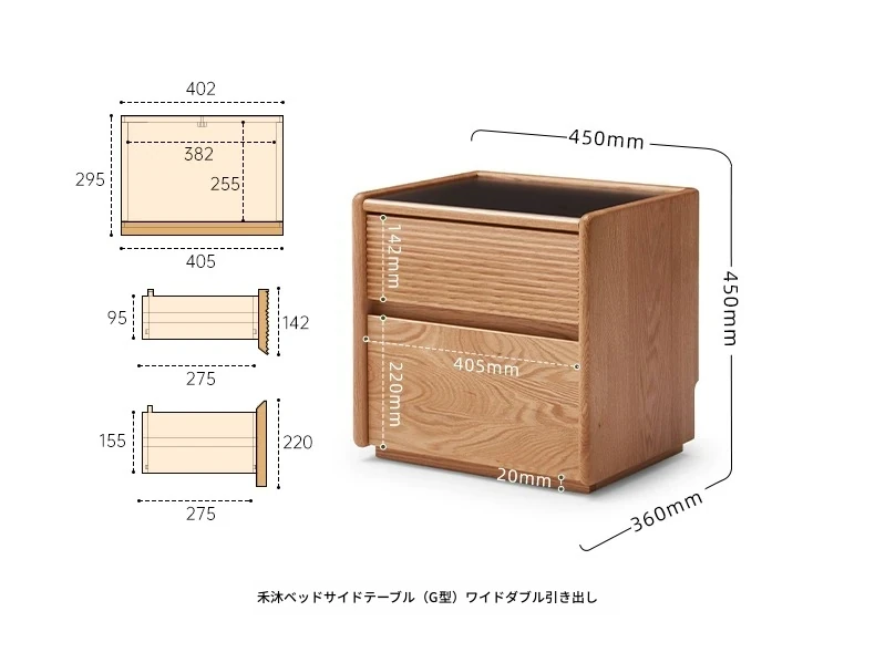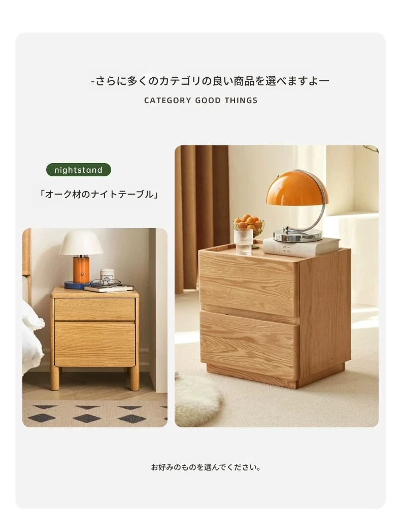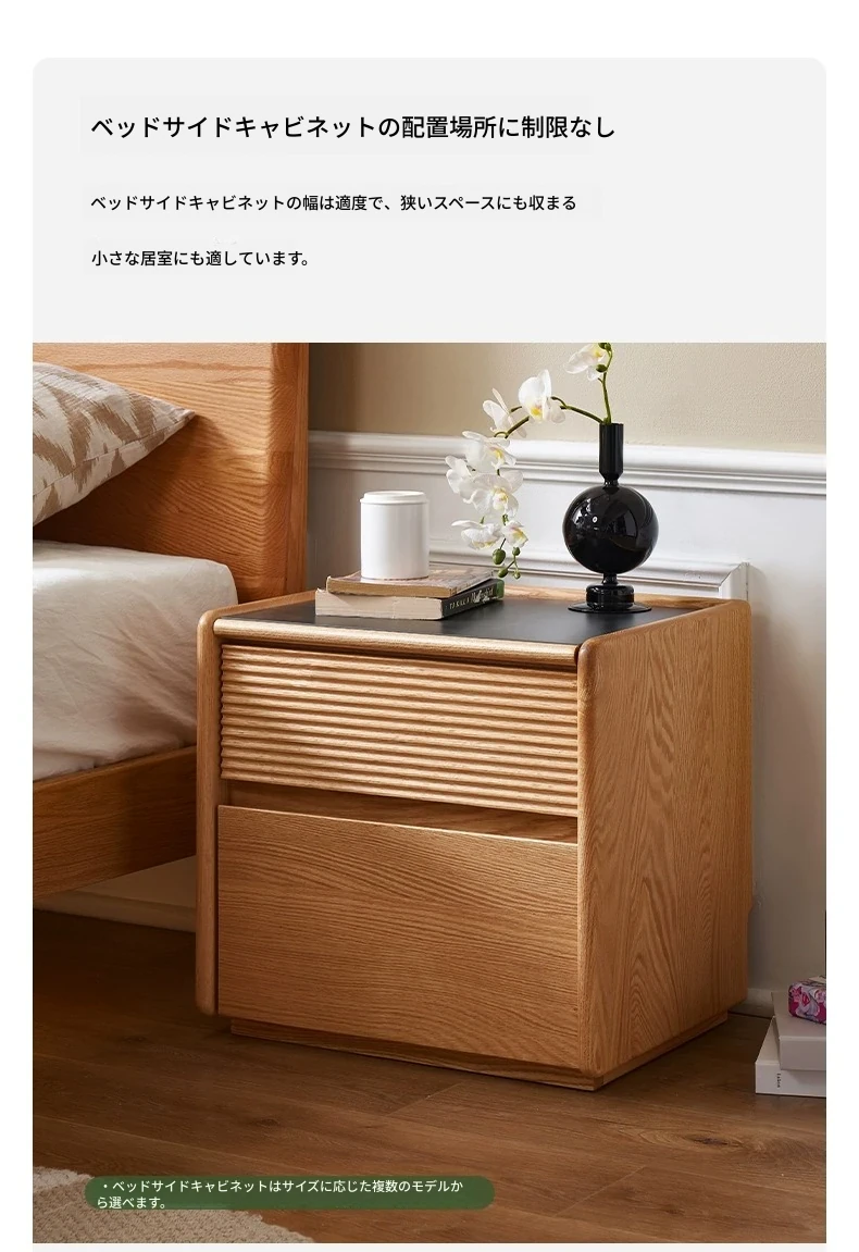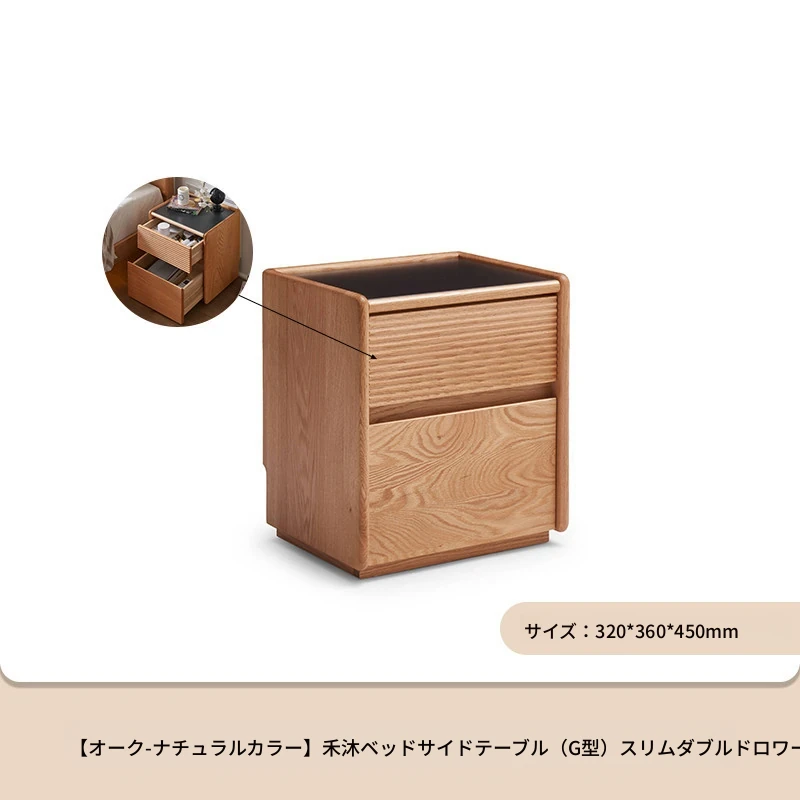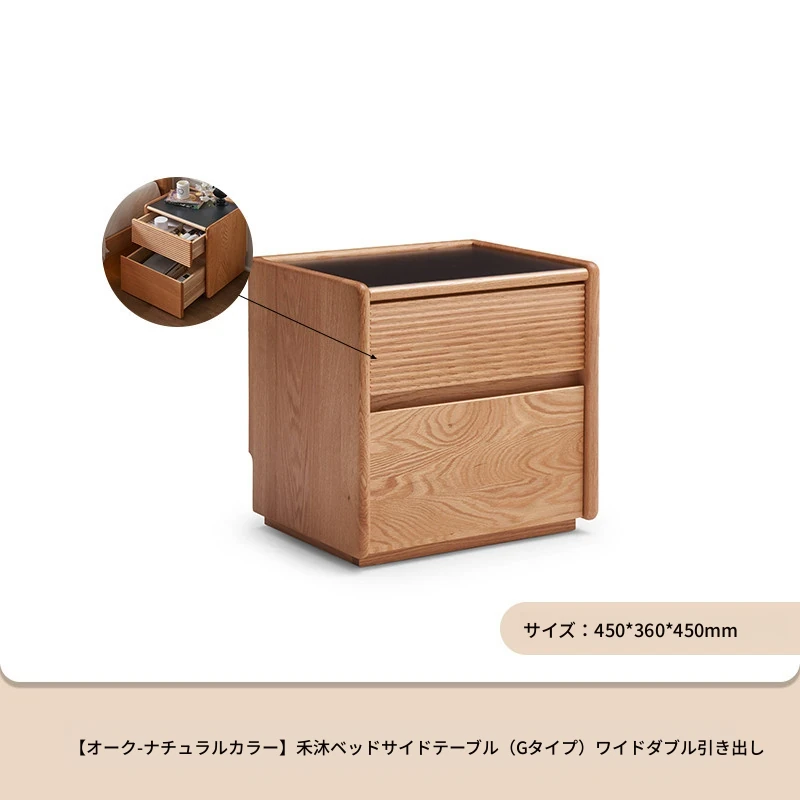 【オーク-ナチュラルカラー】禾沐ベッドサイドテーブル(G型)ワイド二段引き出し