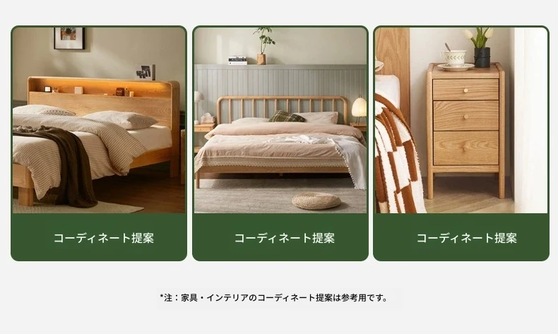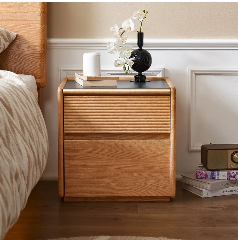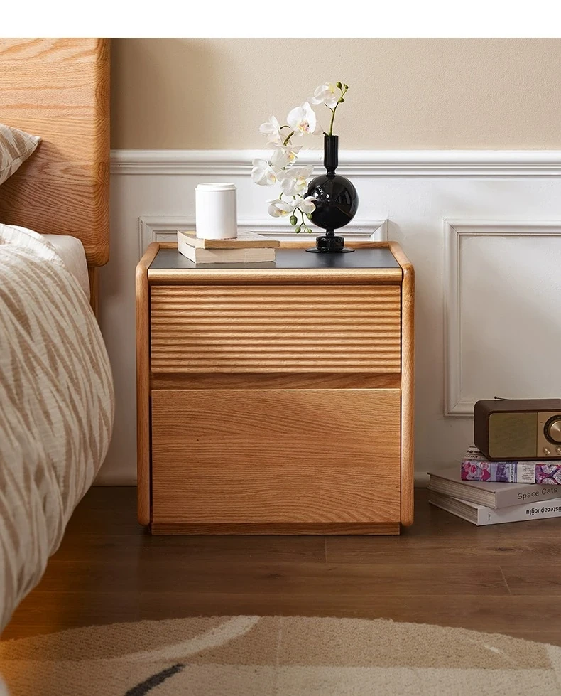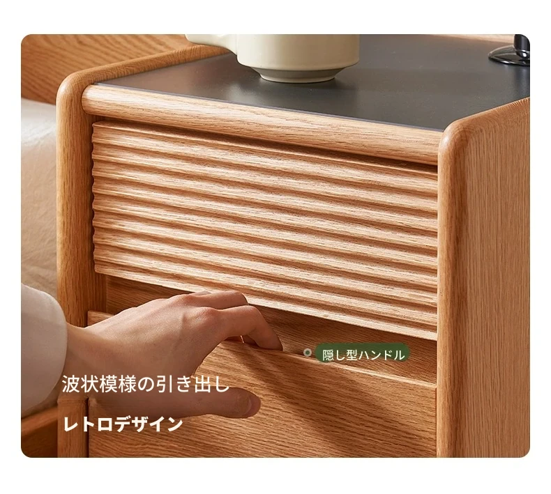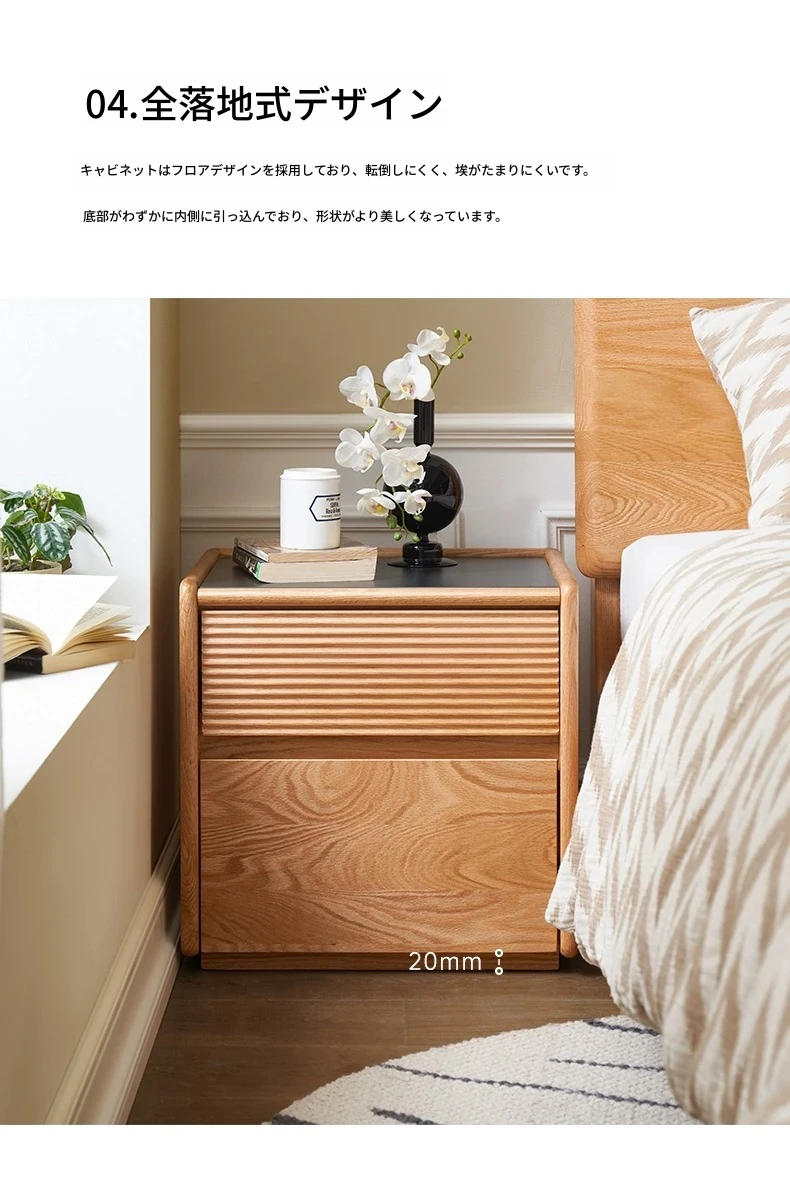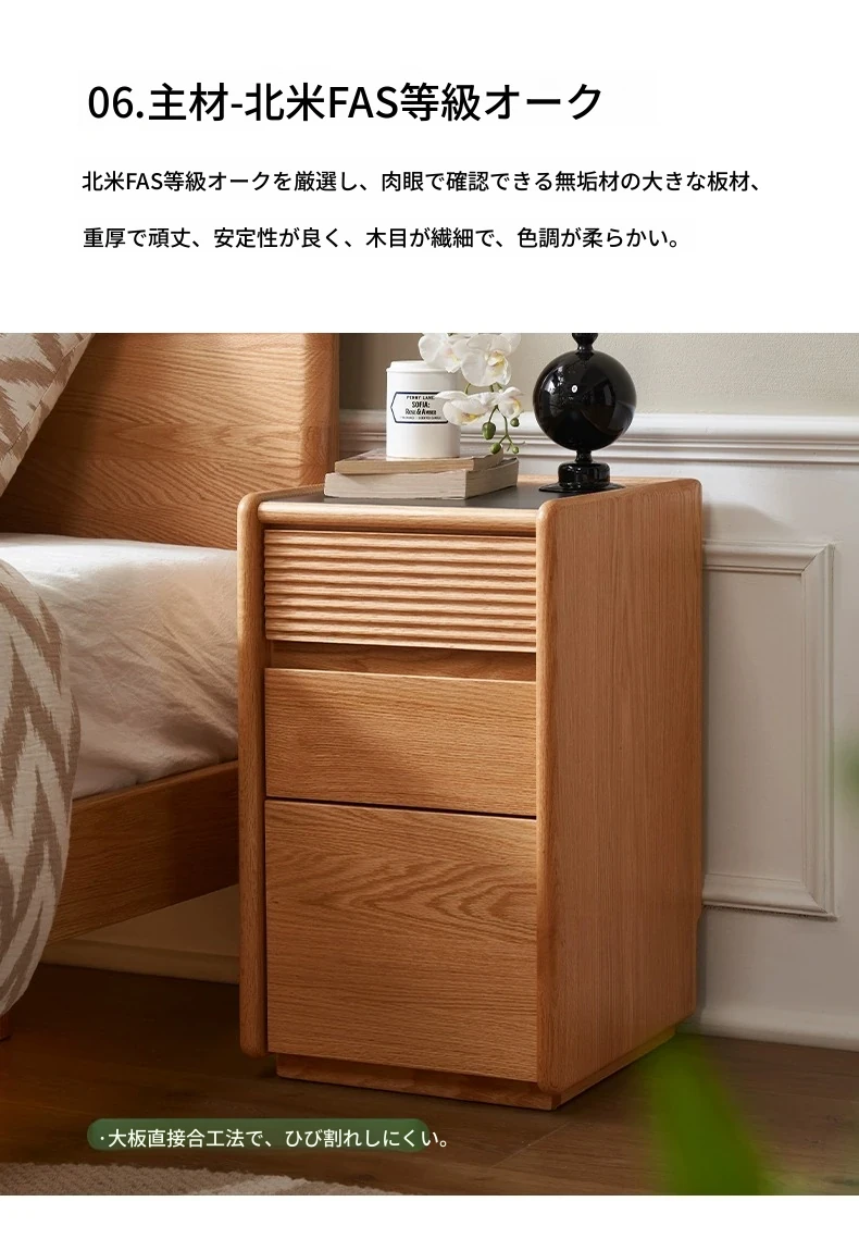【オーク-ナチュラルカラー】禾沐ベッドサイドテーブル(G型)ワイド二段引き出し