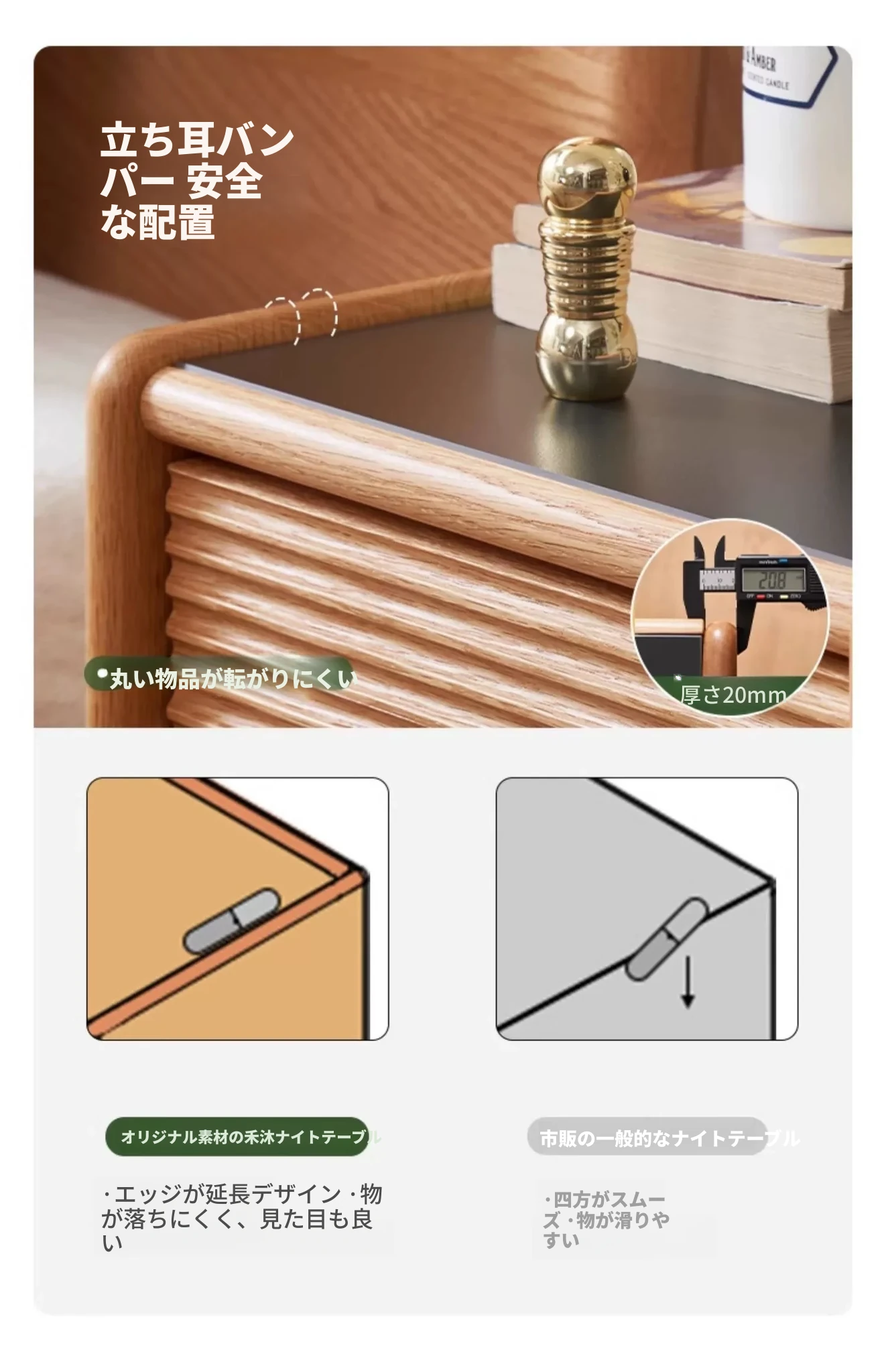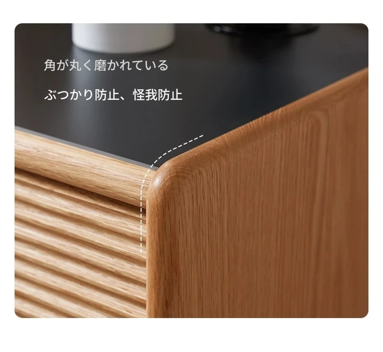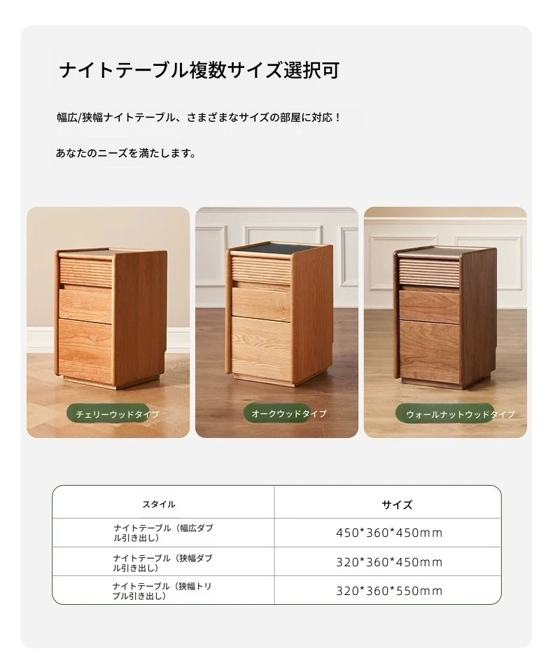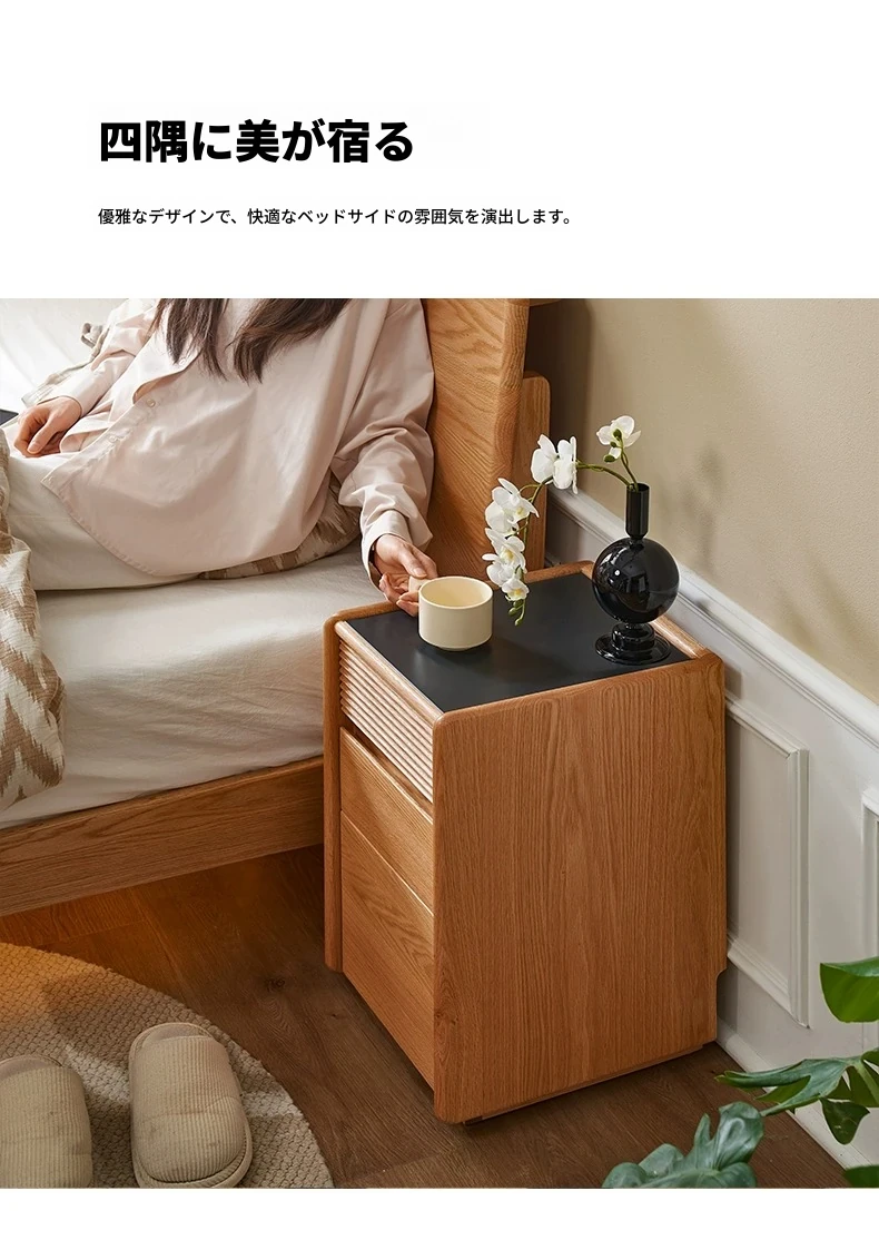 禾沐ベッドサイドテーブル(G型無垢材トップ)-ナロー三段引き出し