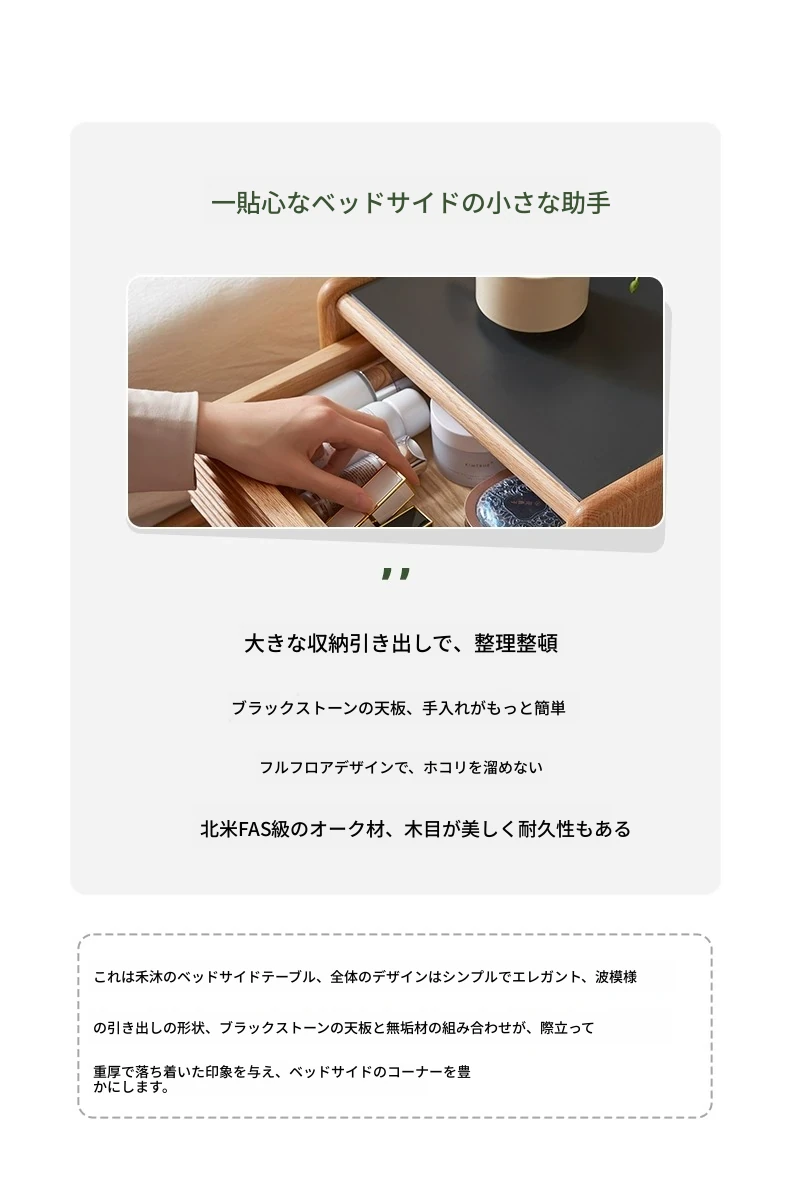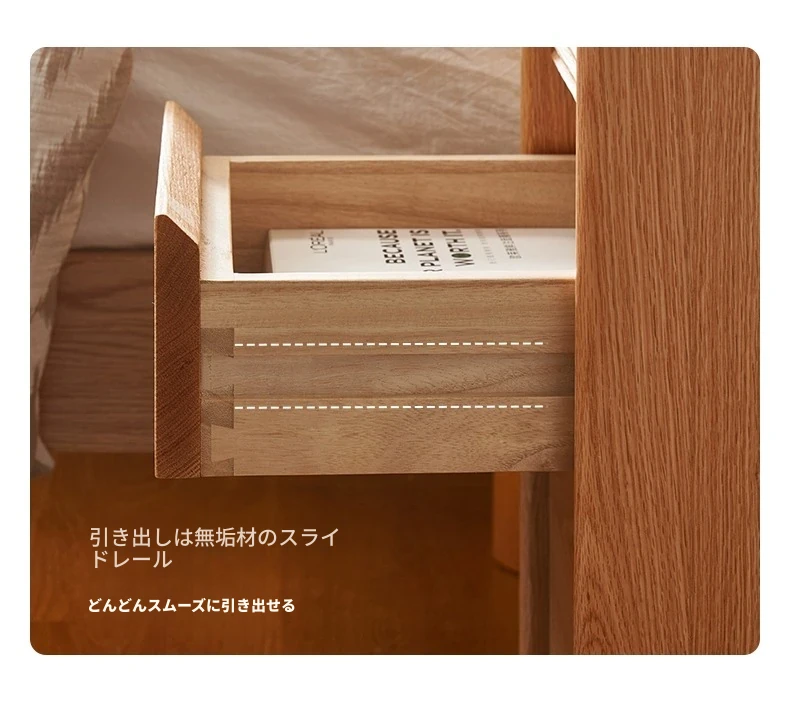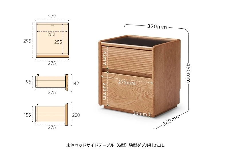 【オーク-ナチュラルカラー】禾沐ベッドサイドテーブル(G型)ナローダブル引き出し