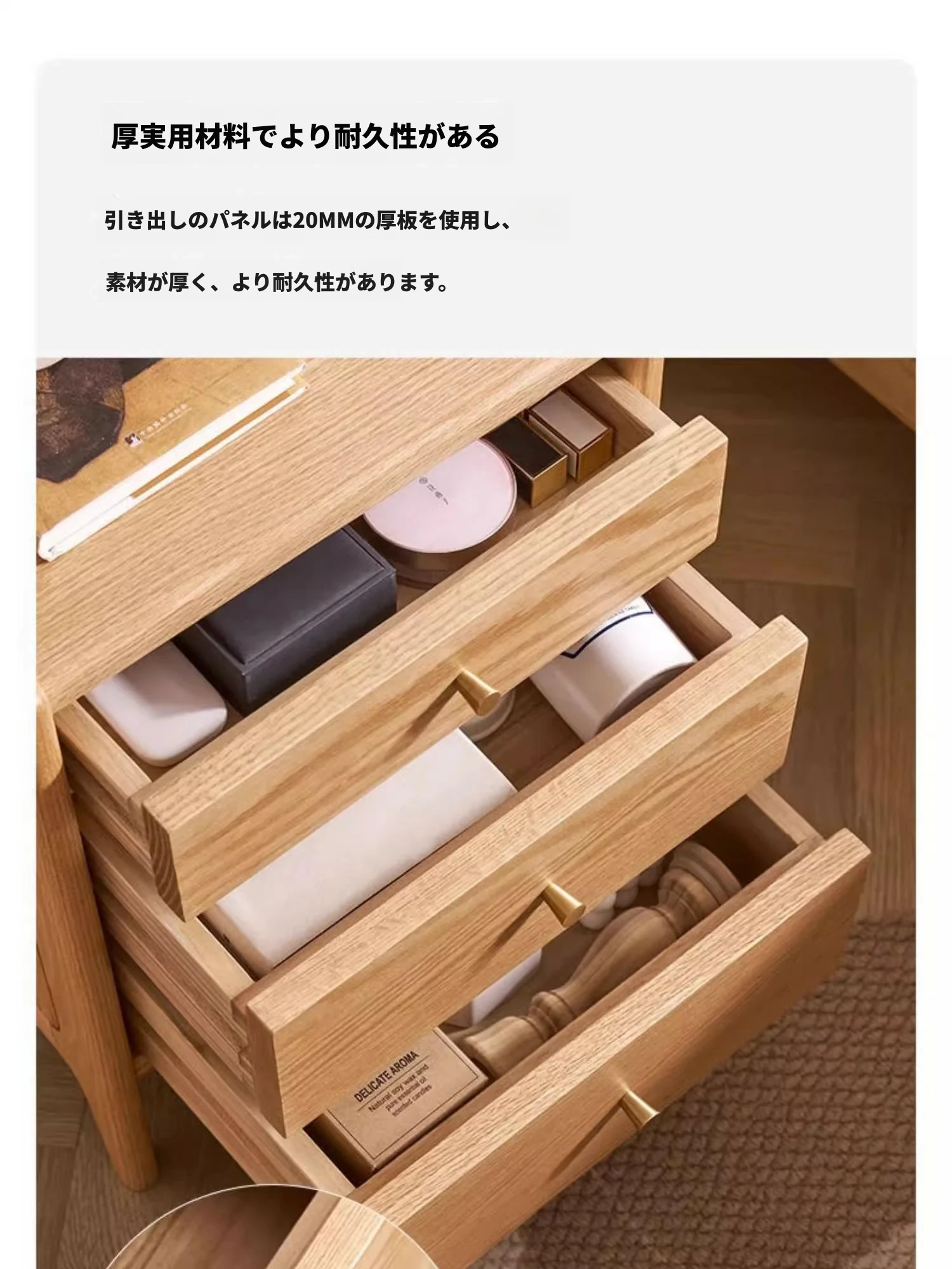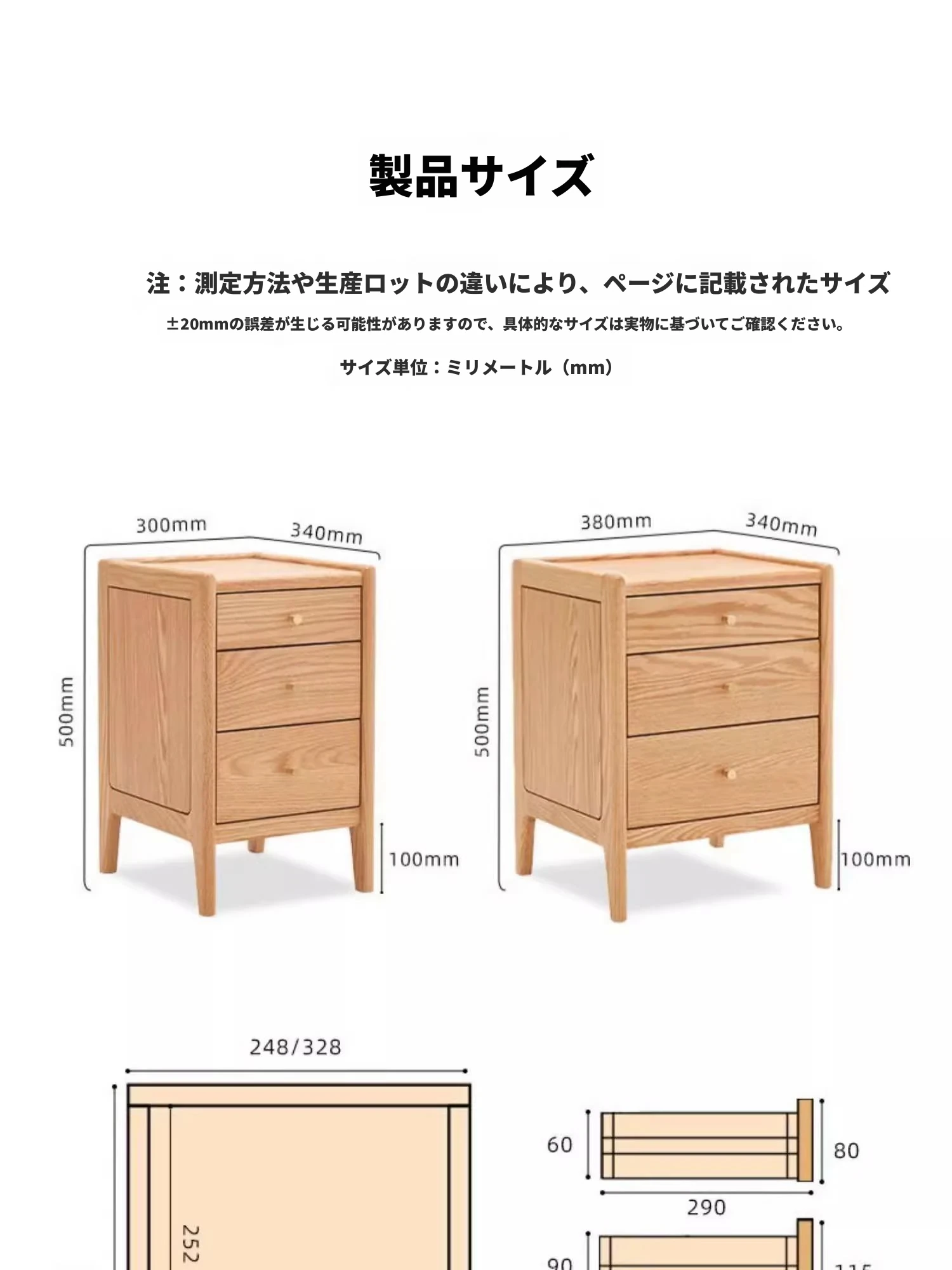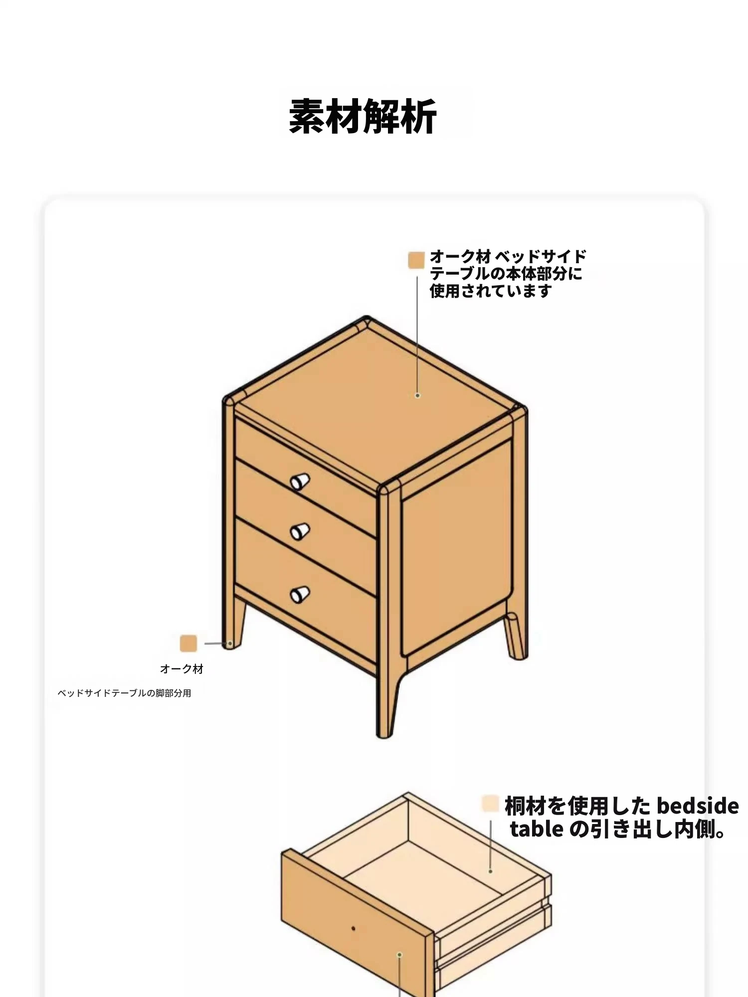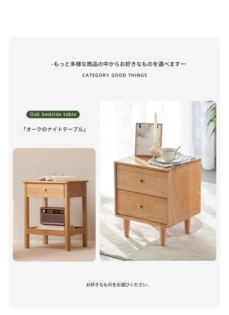 ナチュラルカラー-オーク材のナイトテーブル(通常タイプ)-0.38