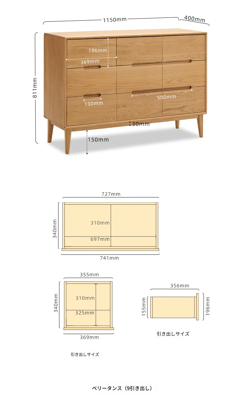 ナチュラルウッドカラー - ワイドナインドロワーチェスト 1400*400*811mm