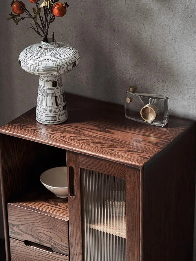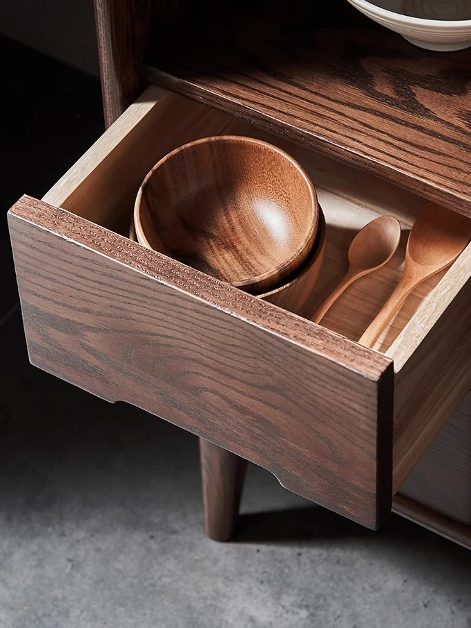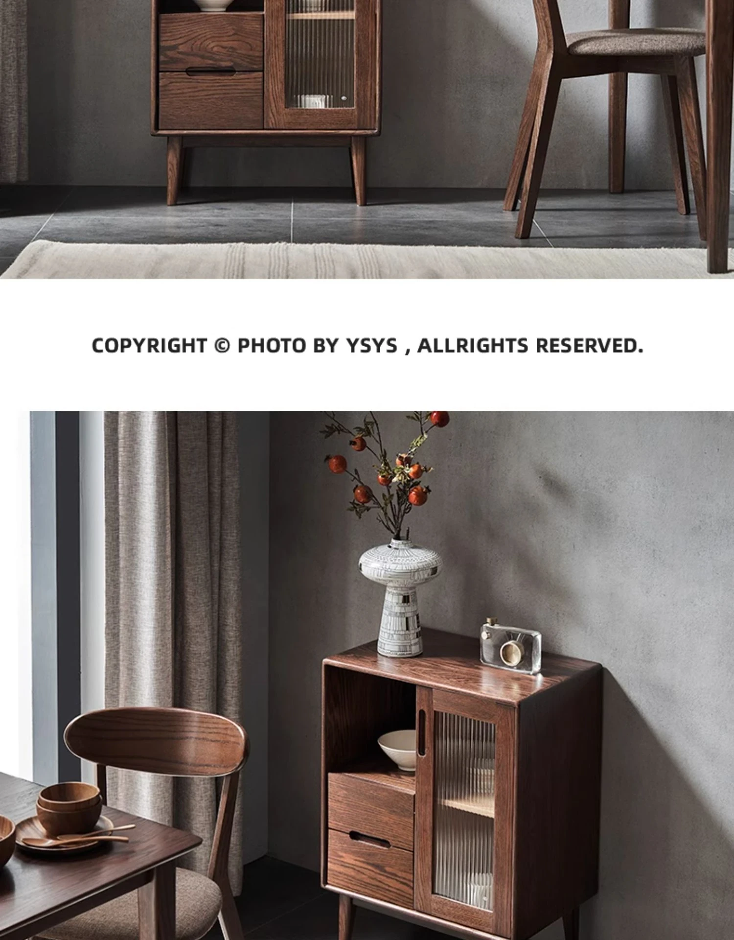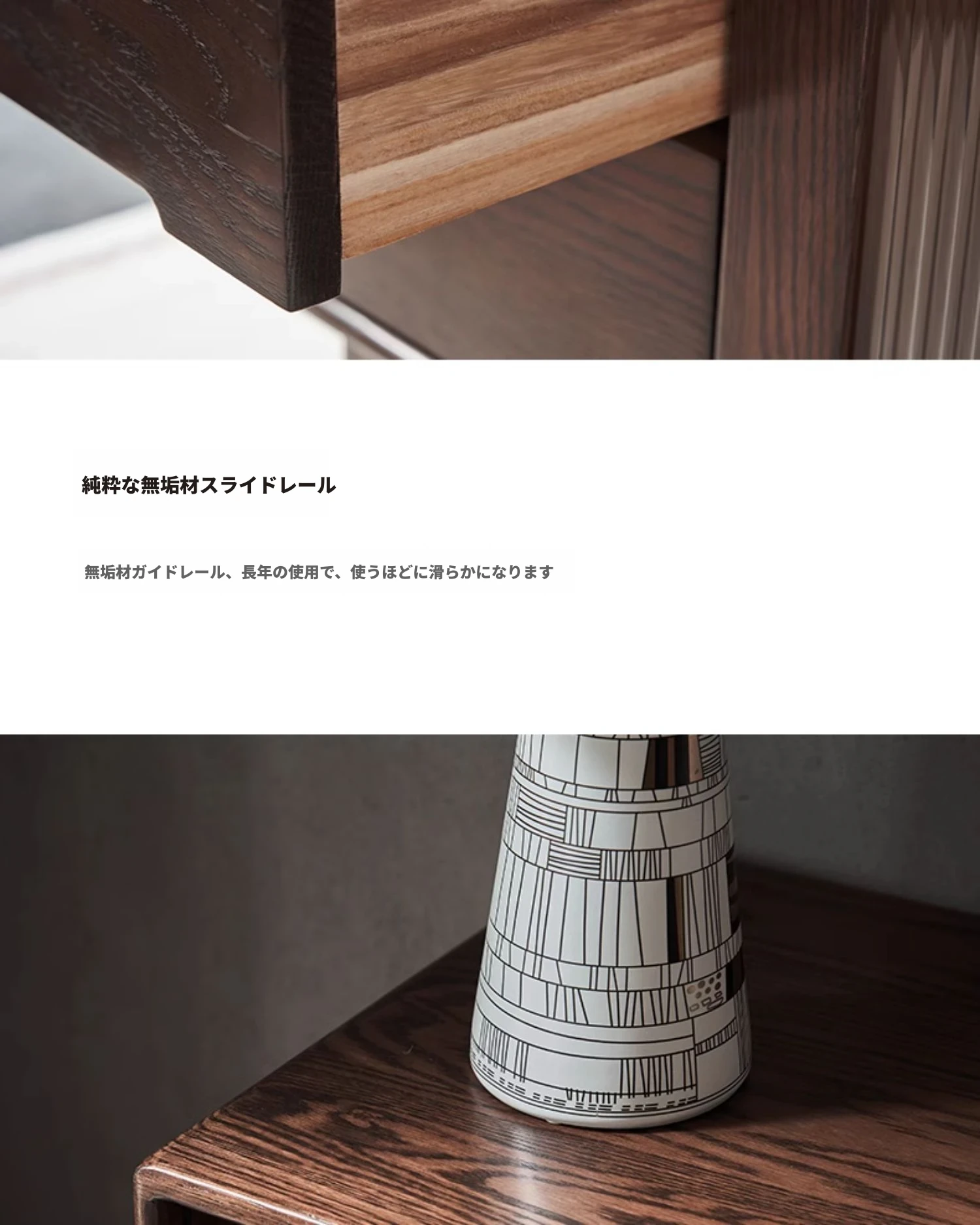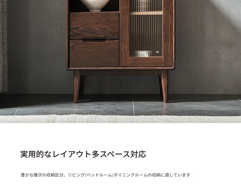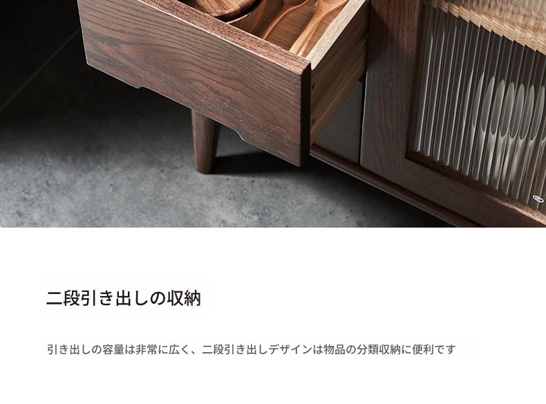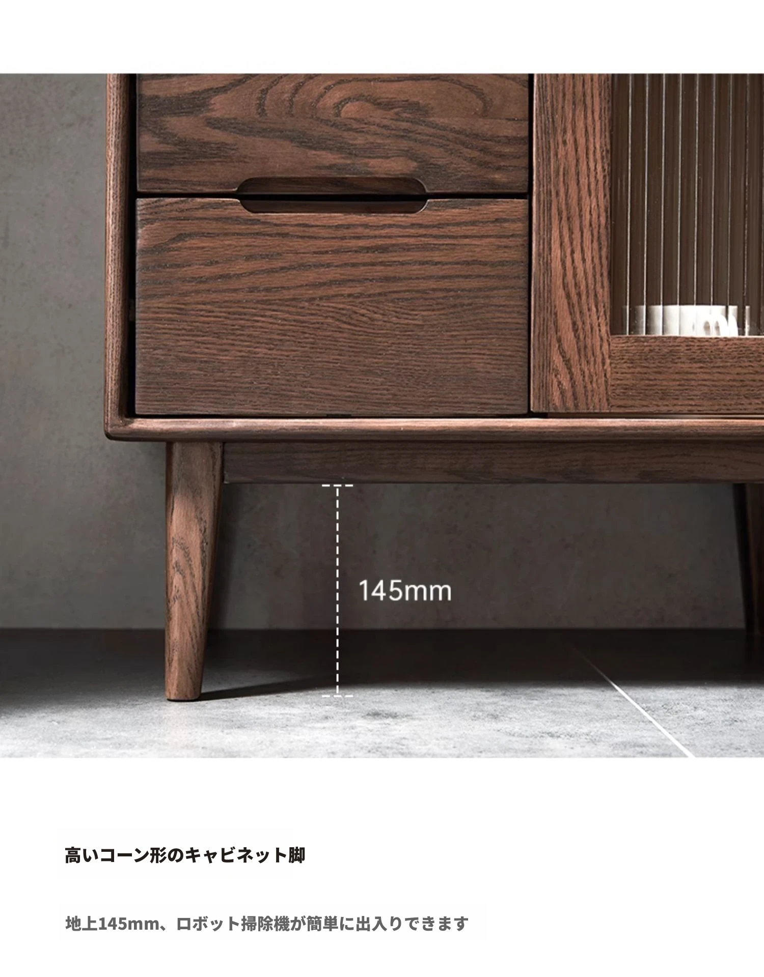 原木仕様のモダンミニマルなサイドボード - スカンジナビアスタイルのティーキャビネット。おしゃれで機能的な収納、ダイニングルームを彩る魅力的な一品。家庭にぴったりの全実木製で安心、安全!