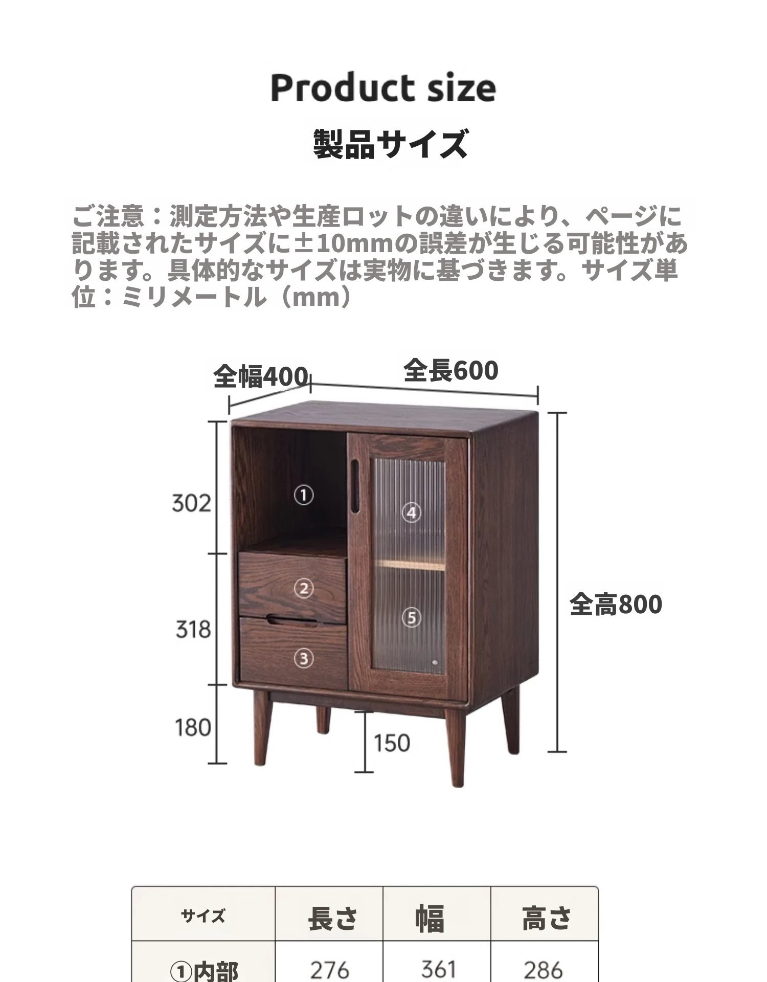 ブラックウォールナット色-0.6mサイドボード(2引き出し1ドア) 600*400*800mm