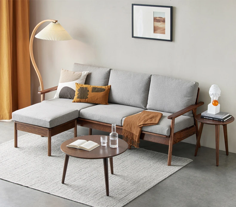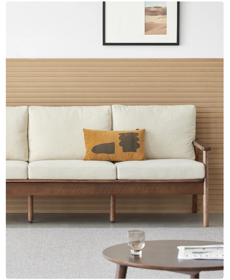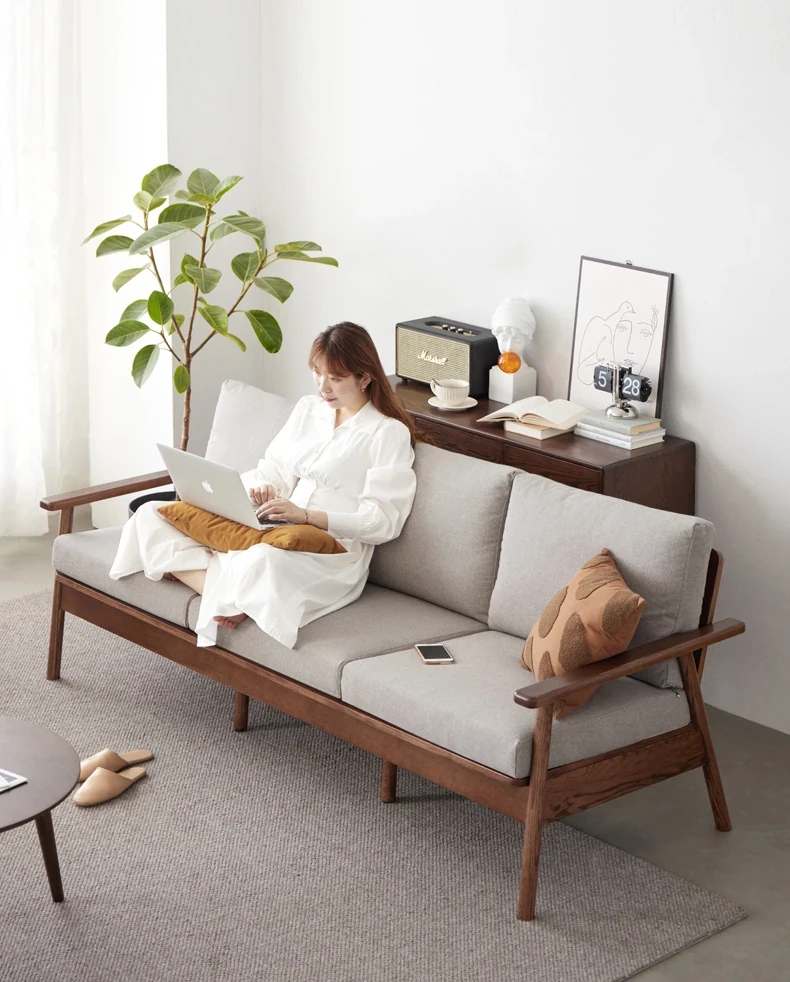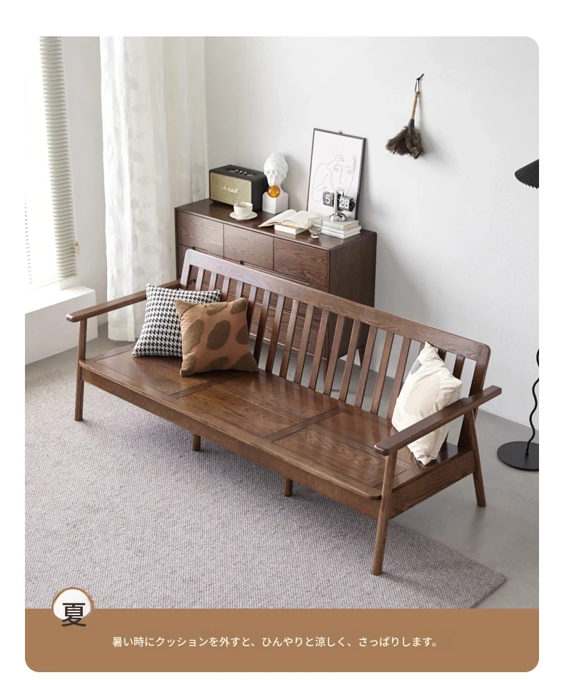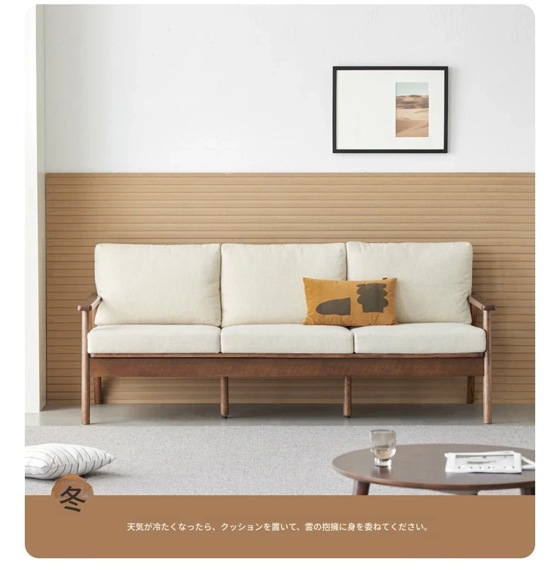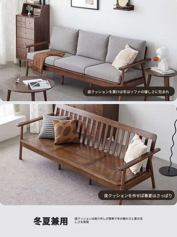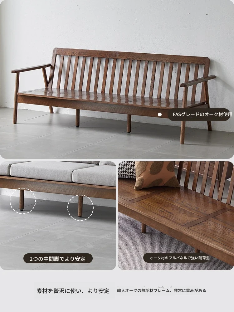 全実木製 北欧スタイル 小型住宅用 リビング家具 モダンシンプル オーク材 三人掛け ファブリックソファ - おしゃれで快適な空間を演出する必須アイテム!