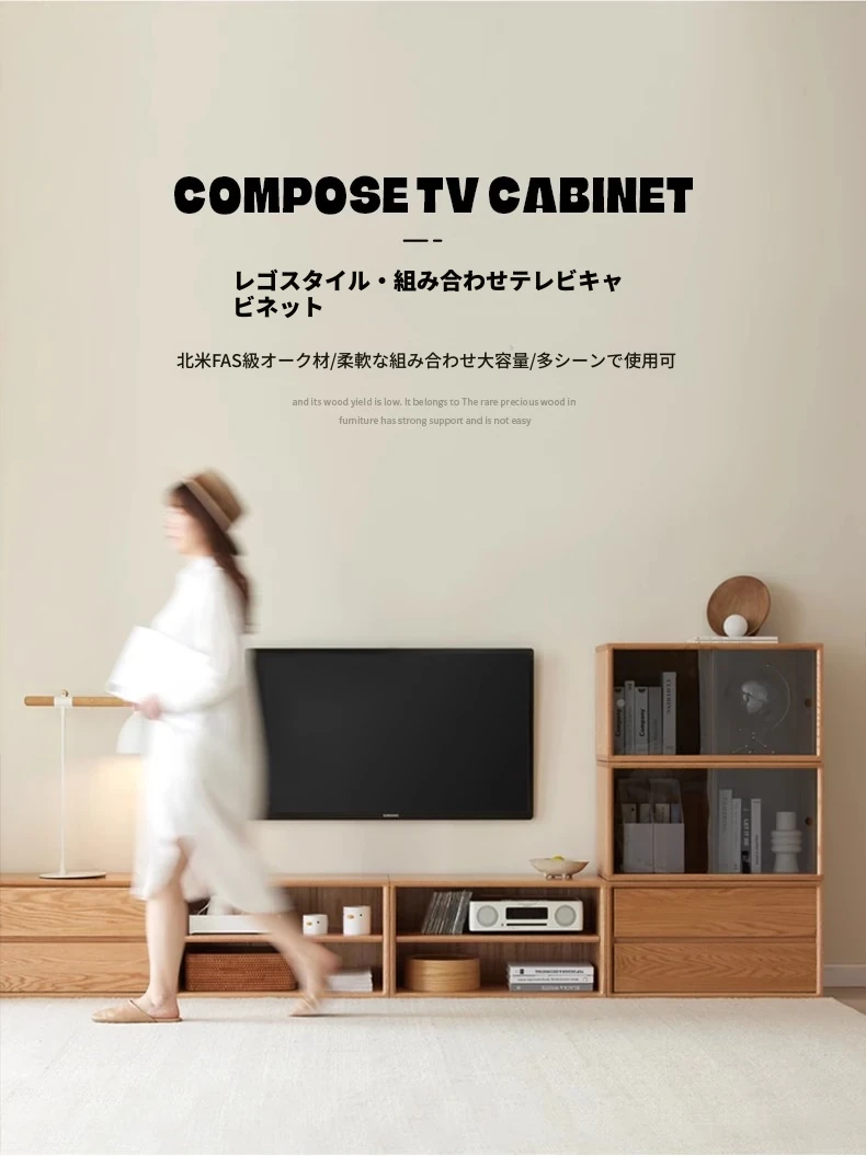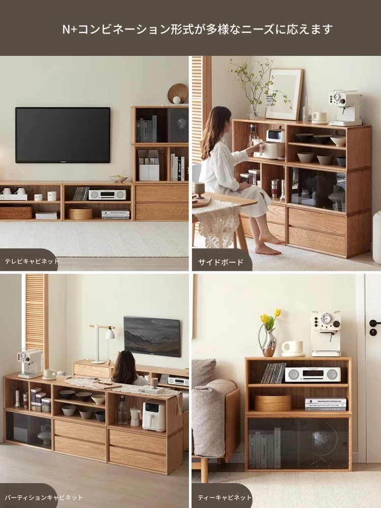 実木製のモダンミニマリストスタイル、自由に組み合わせ可能な収納テレビキャビネット – スタイリッシュで機能的な空間を演出します!