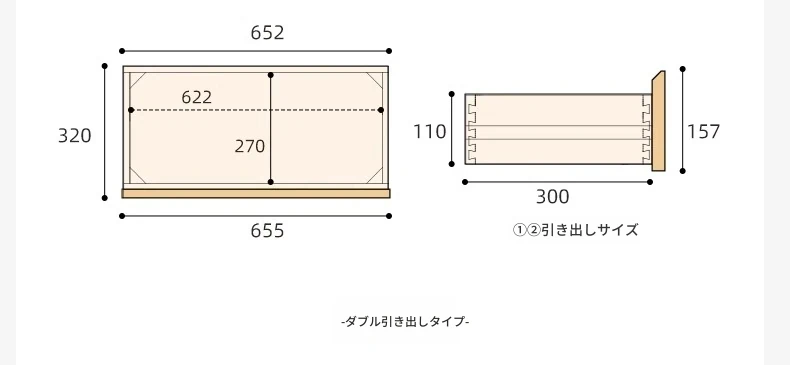 【オーク-ナチュラルカラー】ダブルドロワータイプ(700*360*380mm)