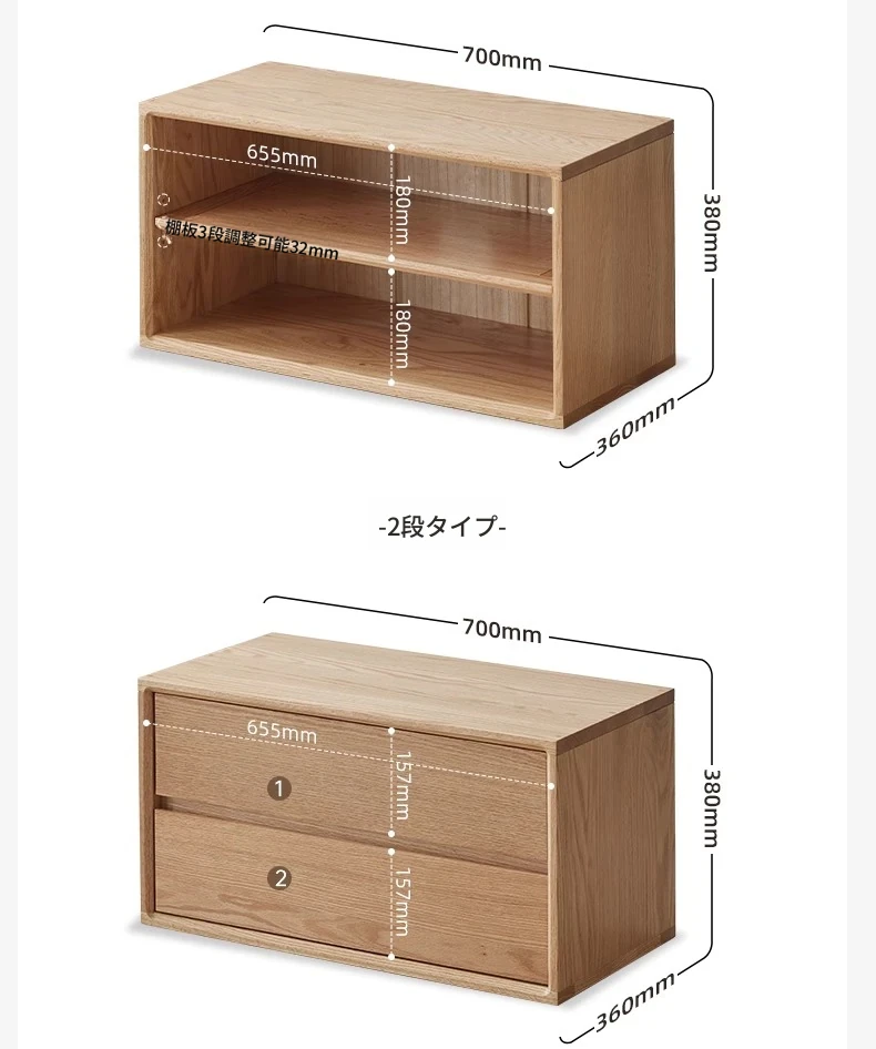 【オーク-ナチュラルカラー】2段タイプ(700*360*380mm)