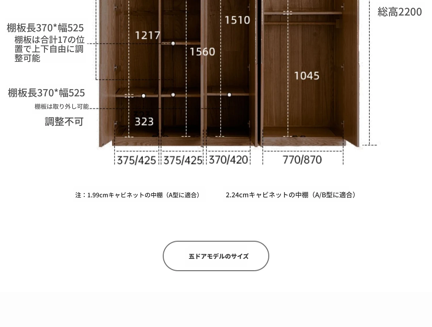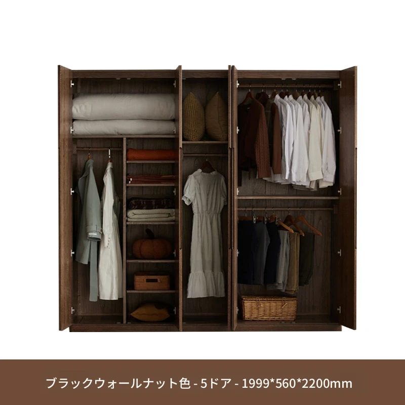 ウォールナット色-1.9m五門クローゼット(A4044) 1990*560*2200mm