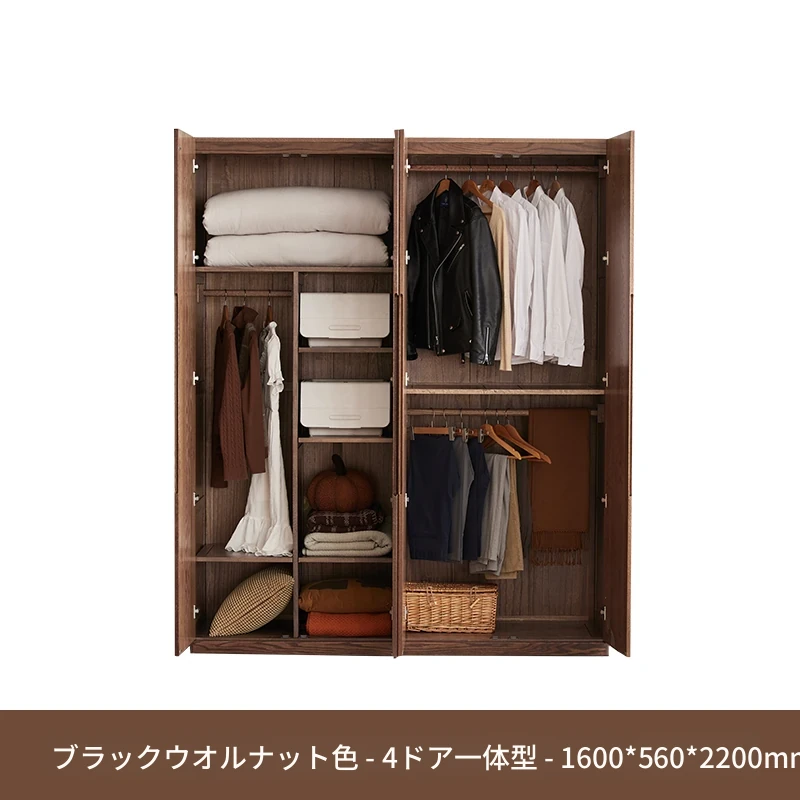 ウォールナット色-1.6m四門クローゼット(A4043) 1600*560*2200mm