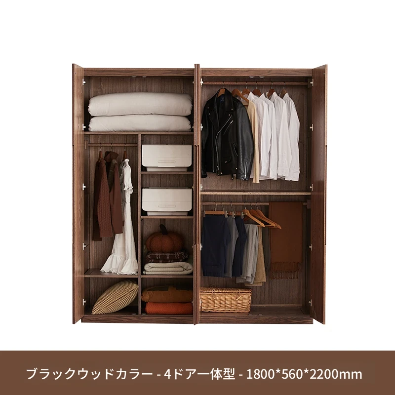 ウォールナット色-1.8m四門クローゼット(A4043) 1800*560*2200mm