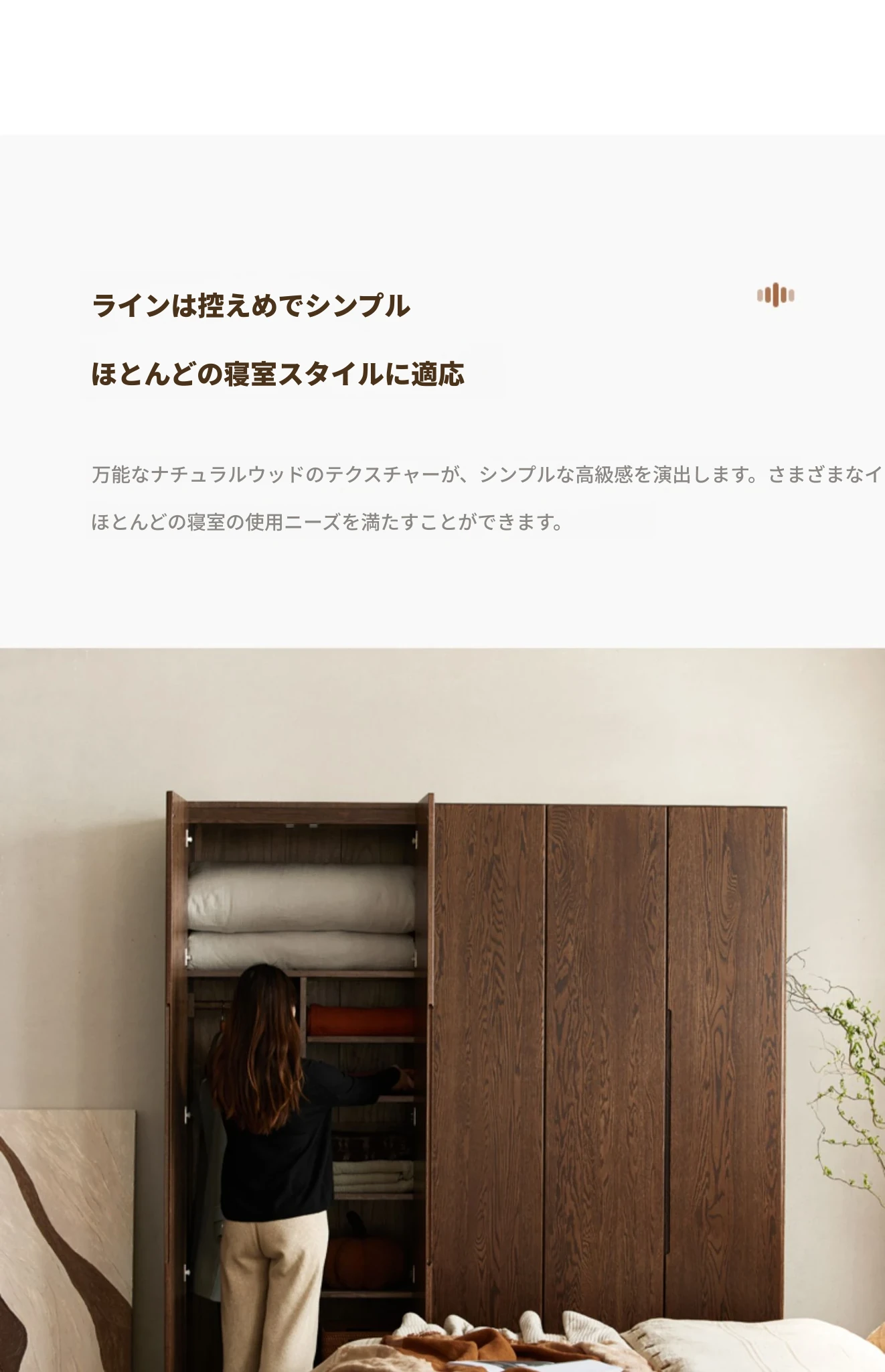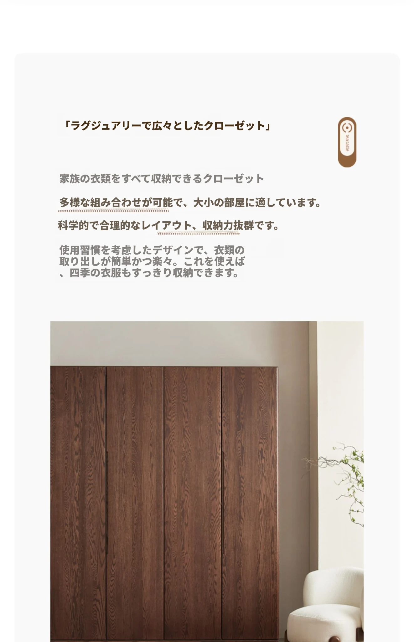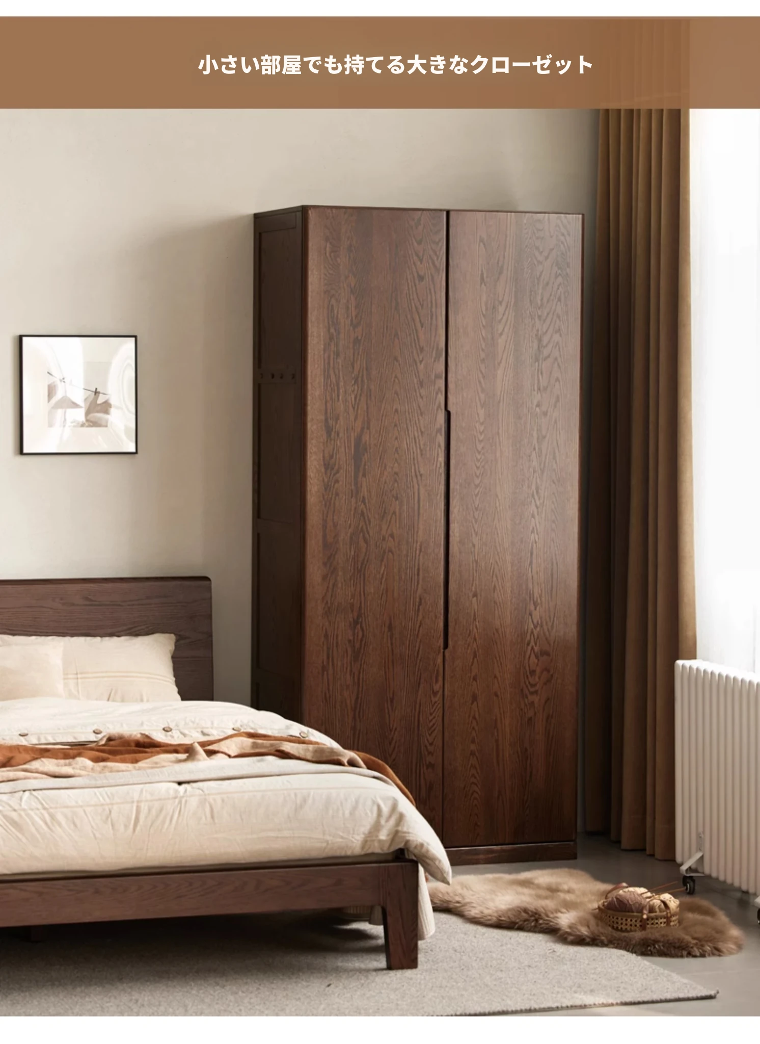 オーガニック無垢材使用のモダンシンプル衣装ラック - おしゃれで実用的な寝室家具、オーク製収納キャビネット、広々としたクローゼット。あなたのライフスタイルにぴったりの一品!