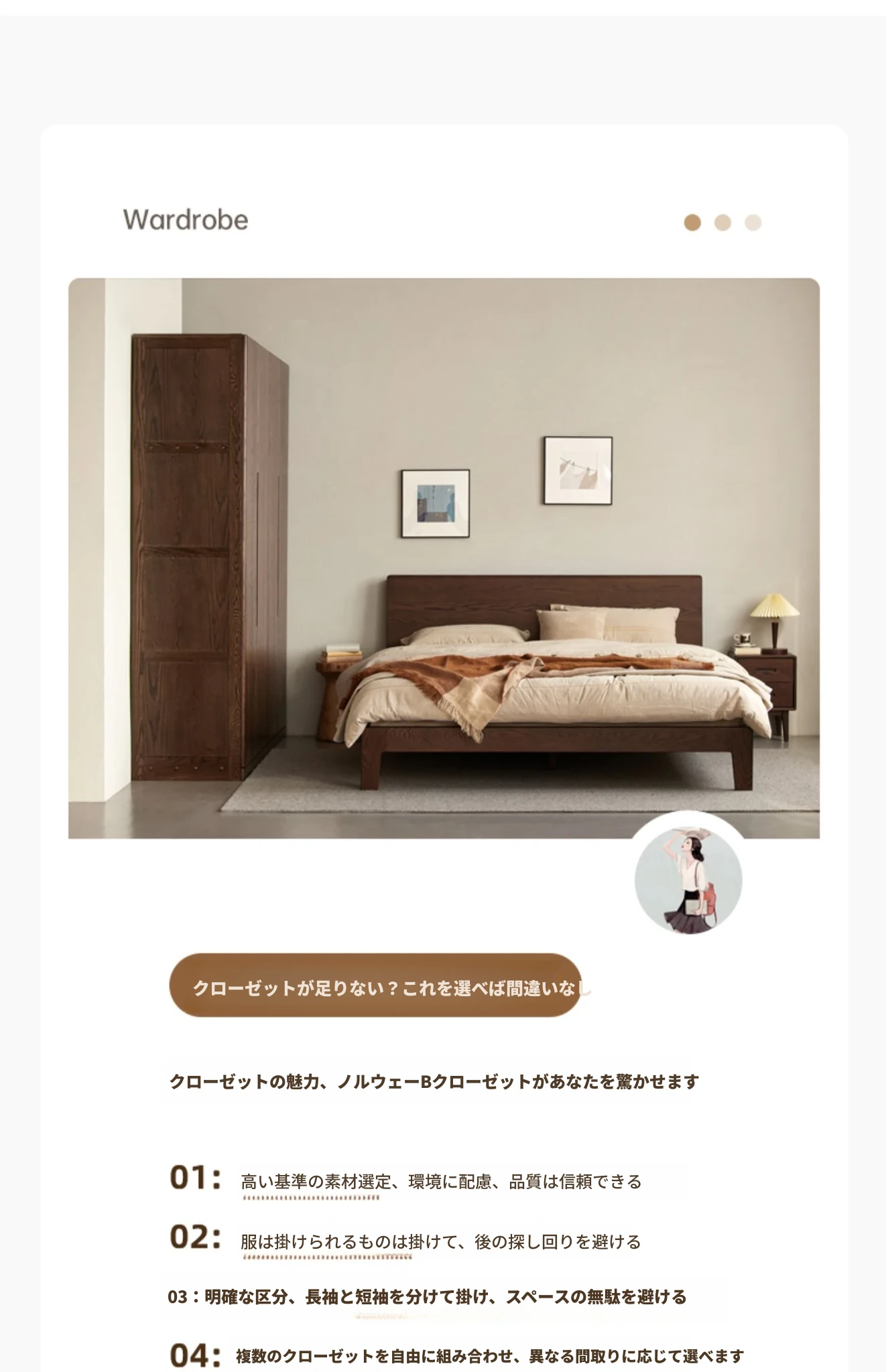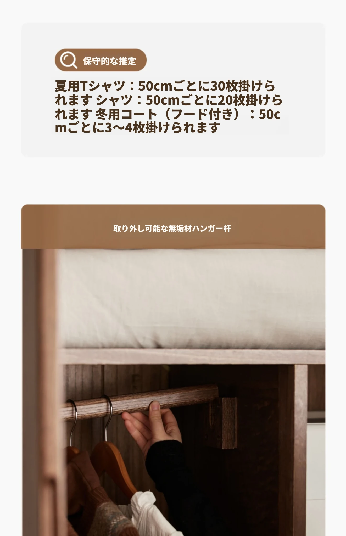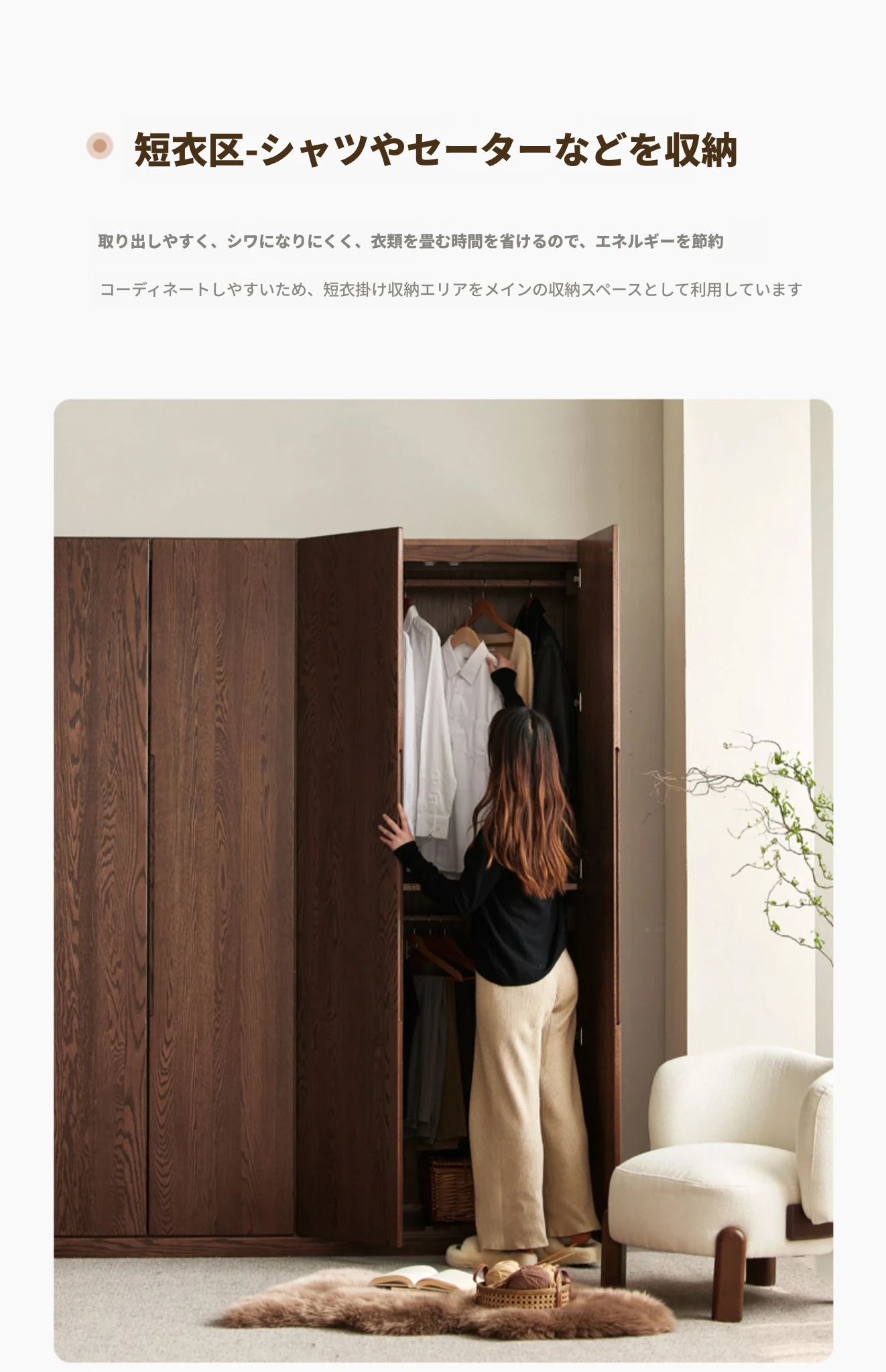 オーガニック無垢材使用のモダンシンプル衣装ラック - おしゃれで実用的な寝室家具、オーク製収納キャビネット、広々としたクローゼット。あなたのライフスタイルにぴったりの一品!
