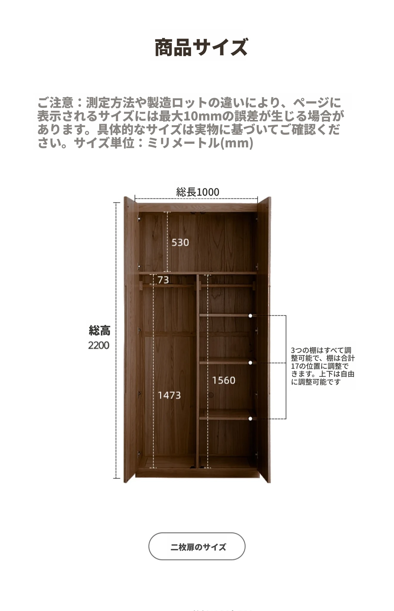 ウォールナット色-1.0m二門クローゼット(A4042) 1000*560*2200mm