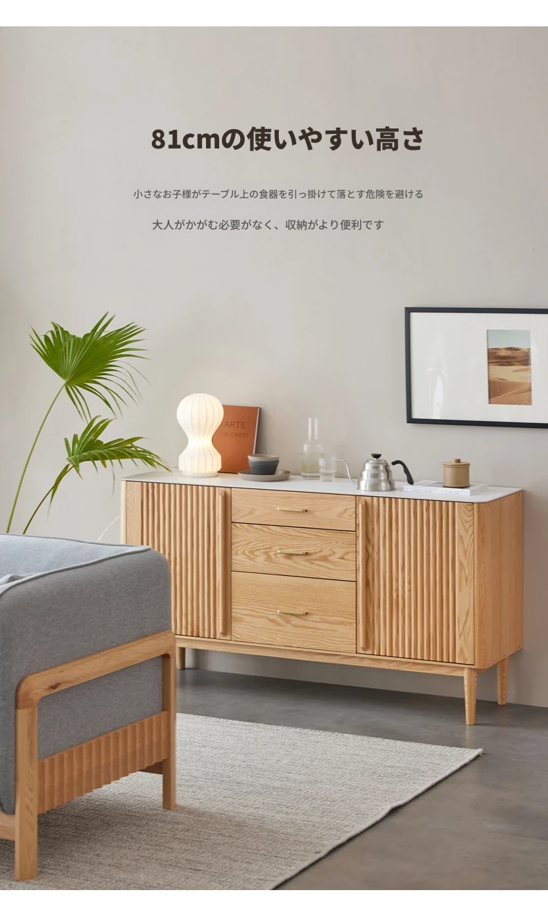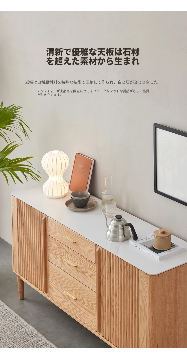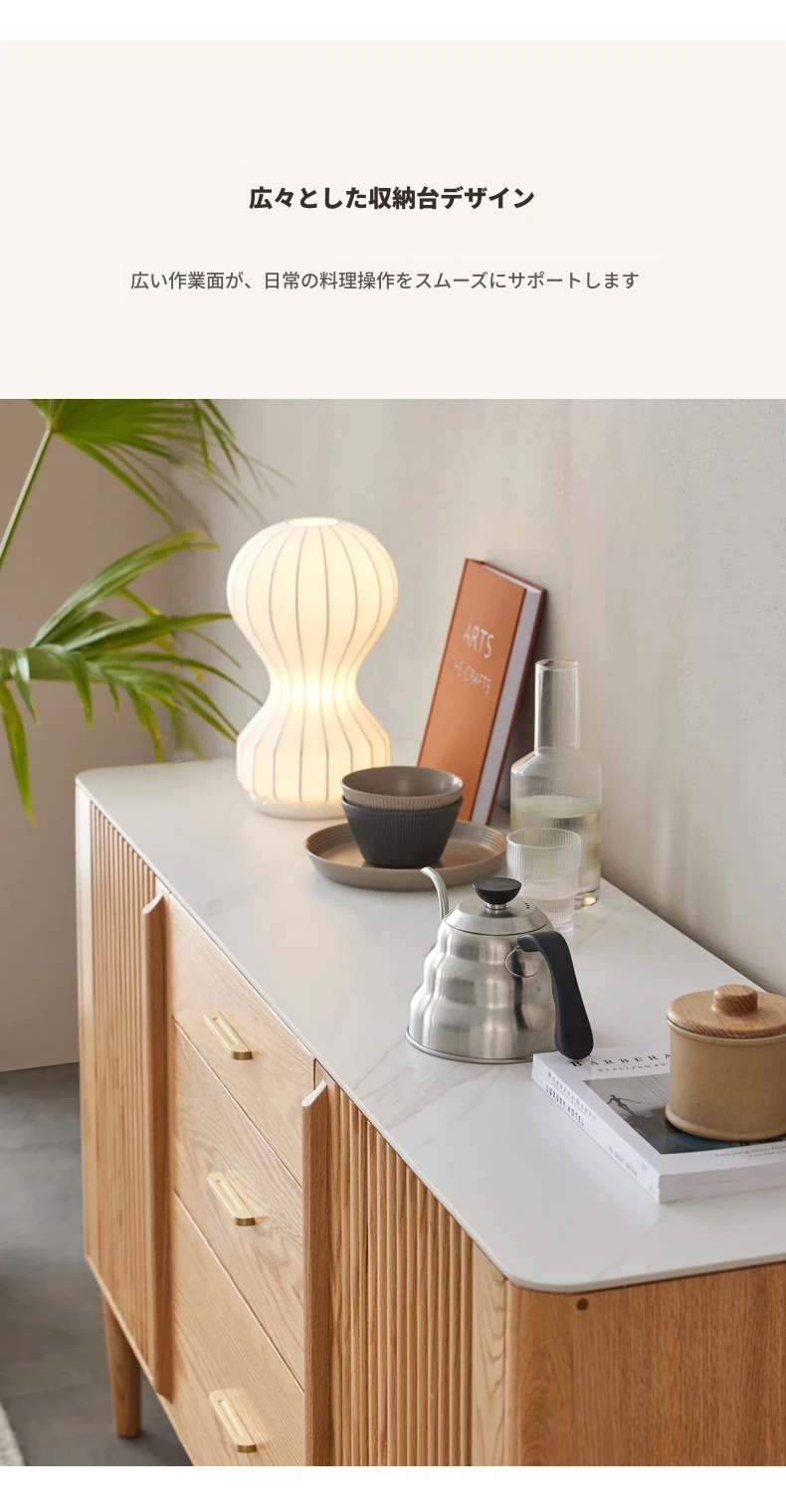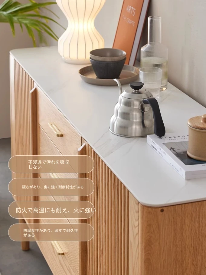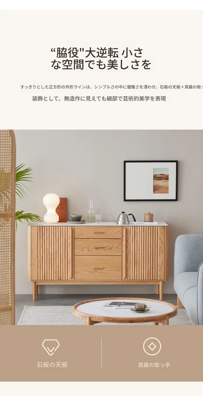 原材料にこだわった無垢材のサイドボード!スタイリッシュなストーン調のティーキャビネット。モダンでシンプルなオーク製収納庫、北欧スタイルの寝室にもピッタリ!収納力抜群でおしゃれな空間を演出します。