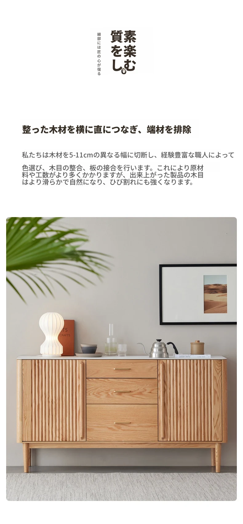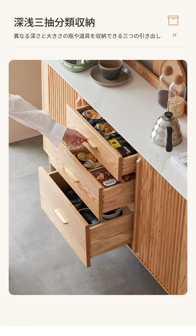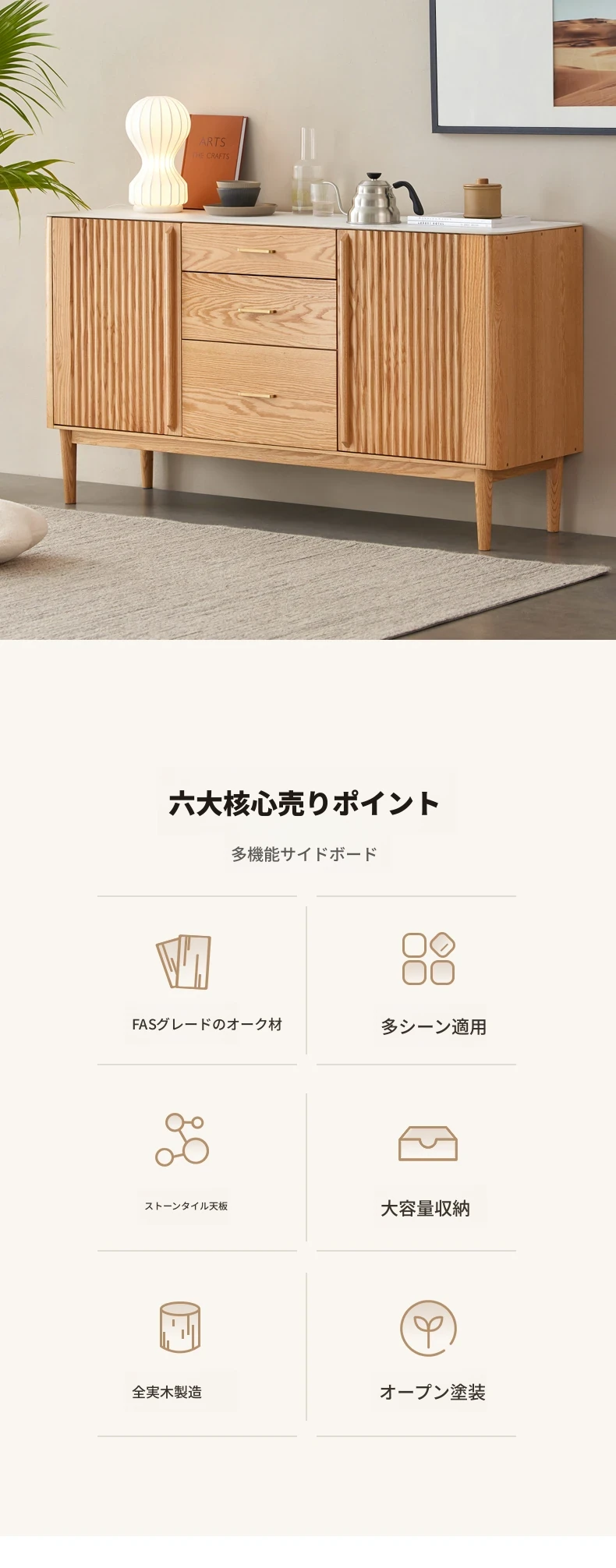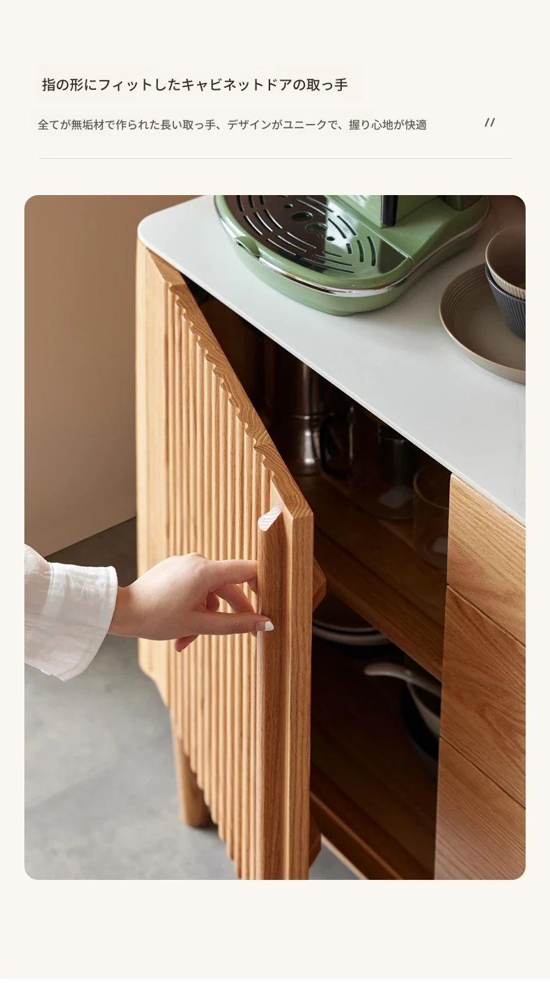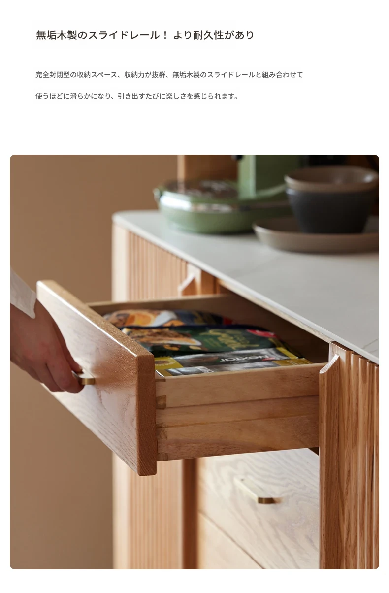 原材料にこだわった無垢材のサイドボード!スタイリッシュなストーン調のティーキャビネット。モダンでシンプルなオーク製収納庫、北欧スタイルの寝室にもピッタリ!収納力抜群でおしゃれな空間を演出します。