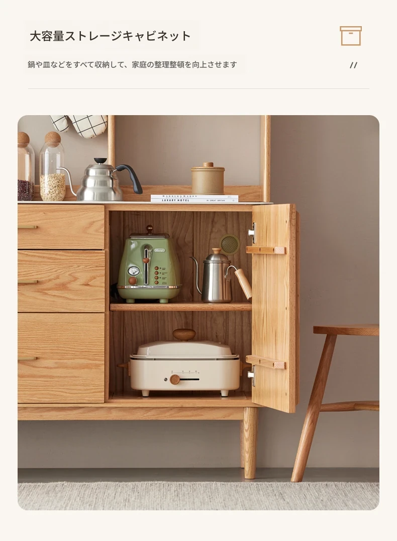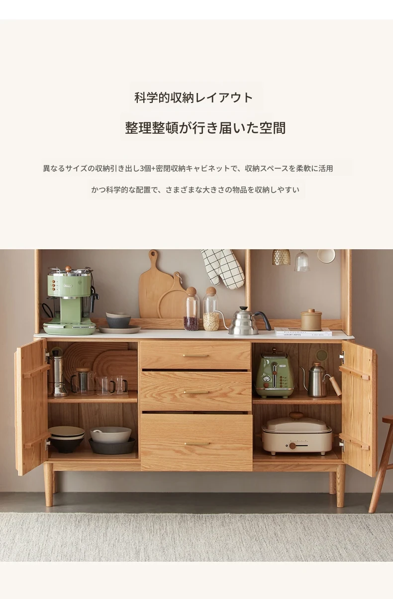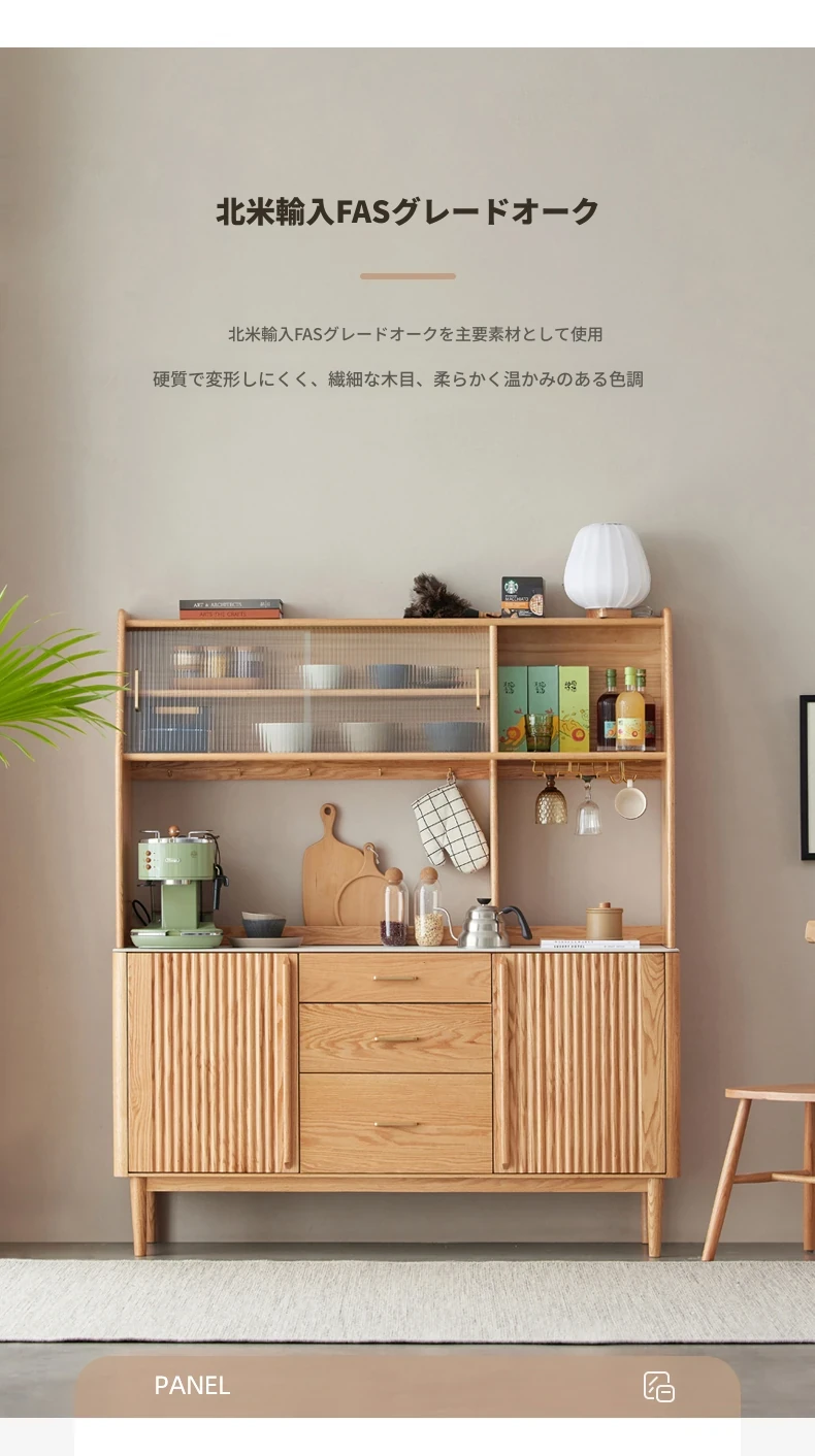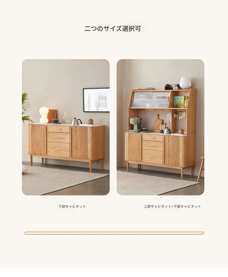 ダイニングサイドキャビネット上下段-(1200*420*1720) ナチュラルカラー(魚の腹白)