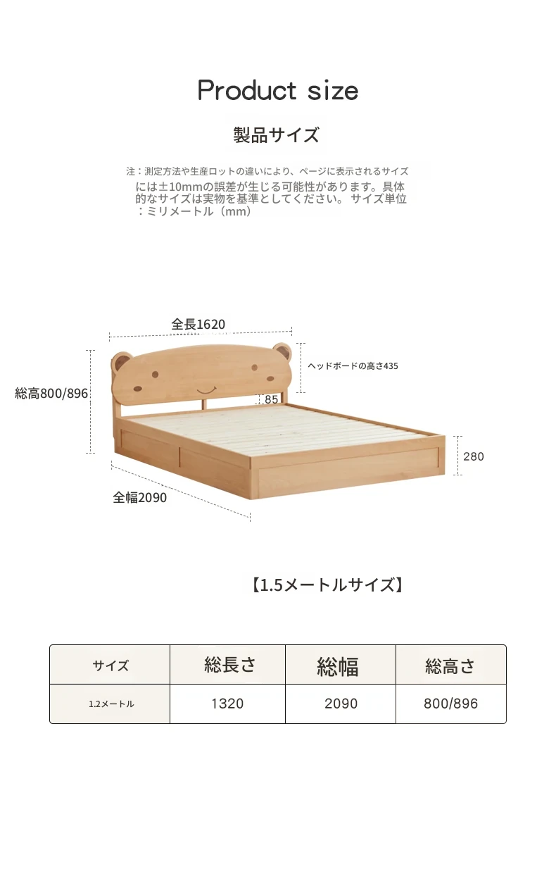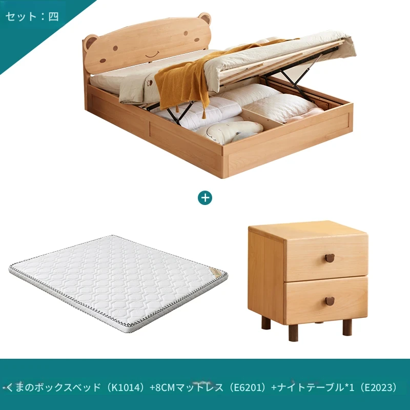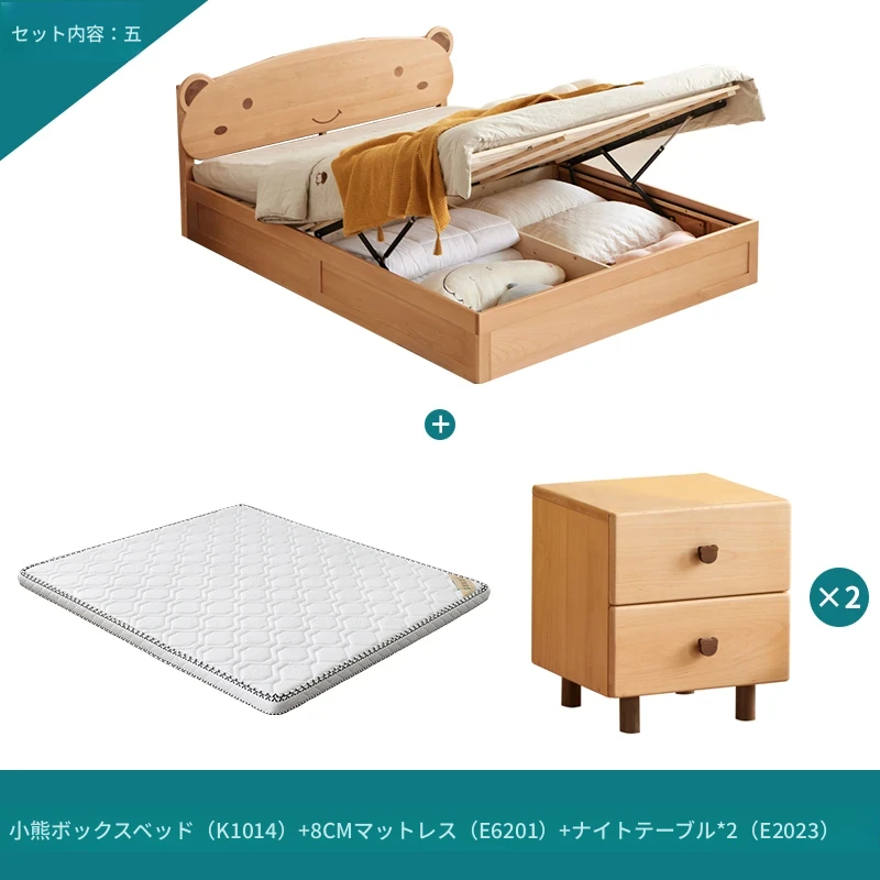小熊ボックスベッド+8cmマットレス+ナイトテーブル*2 K1014+E620+E2023