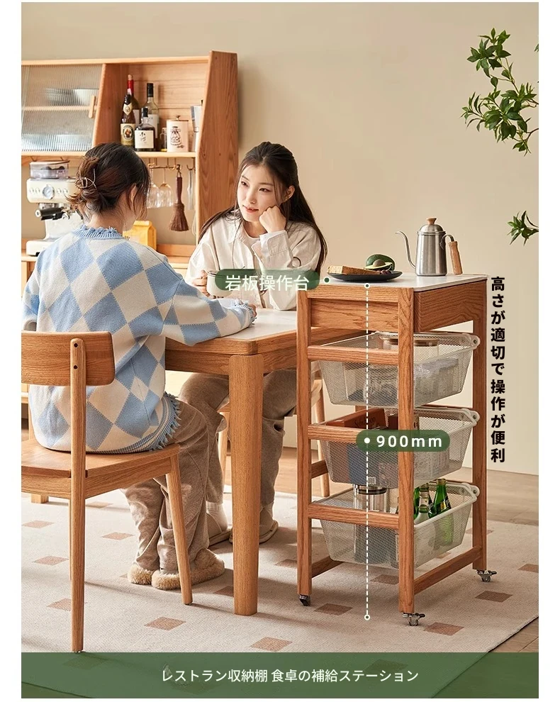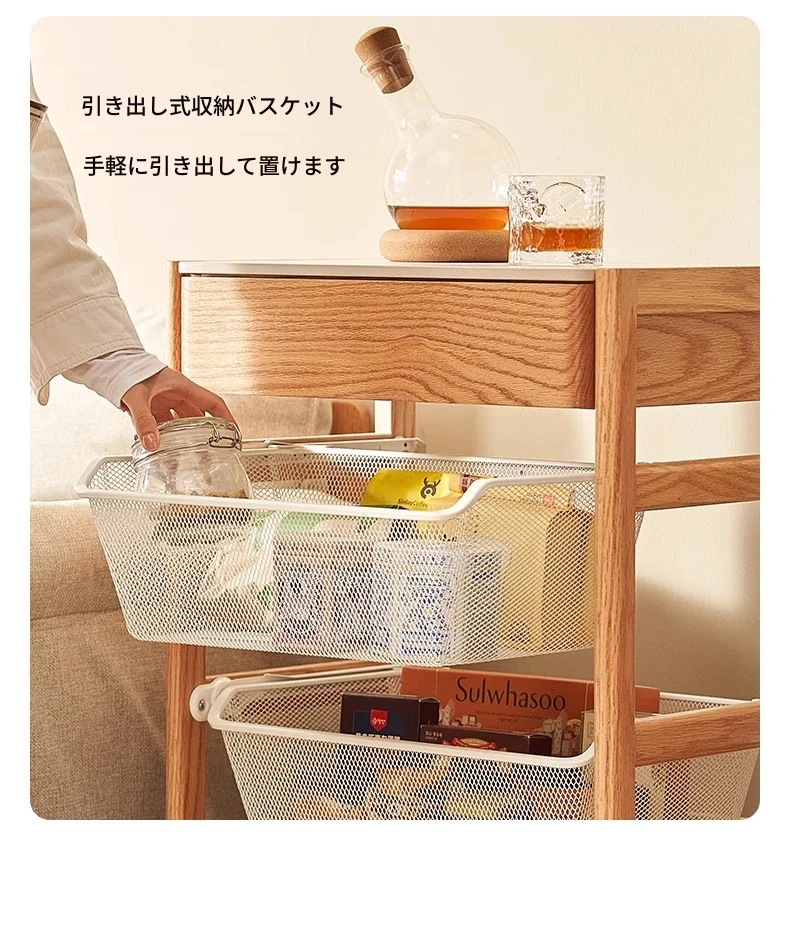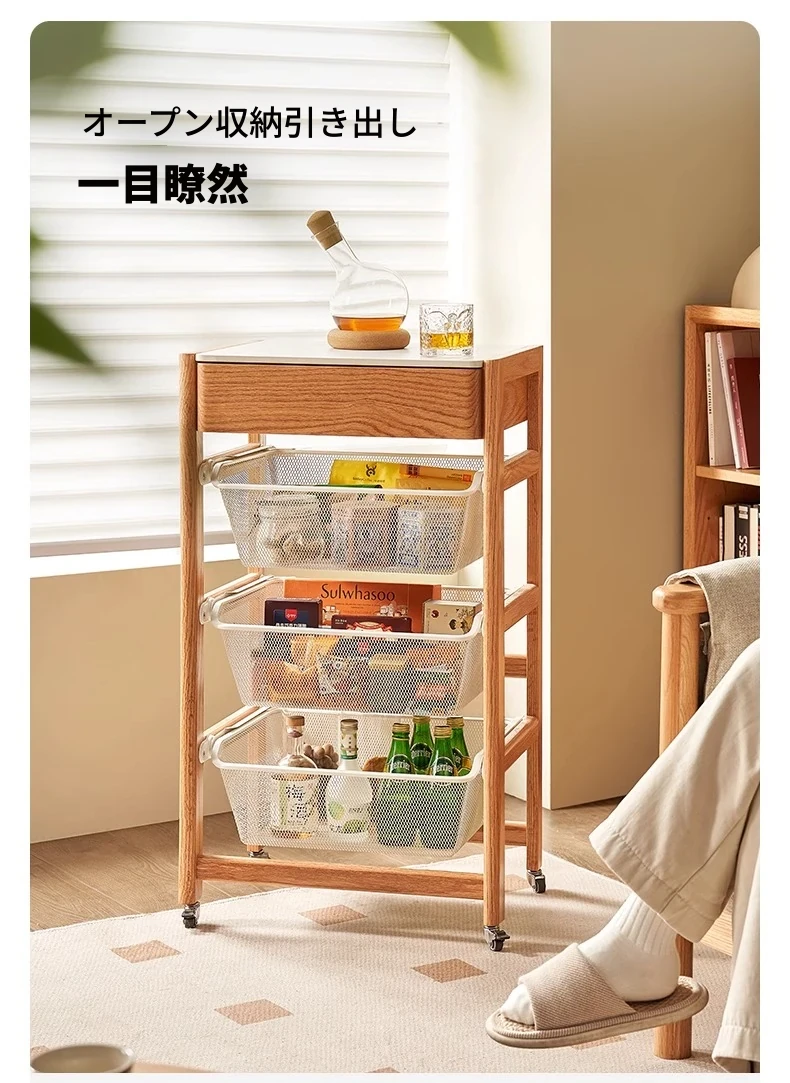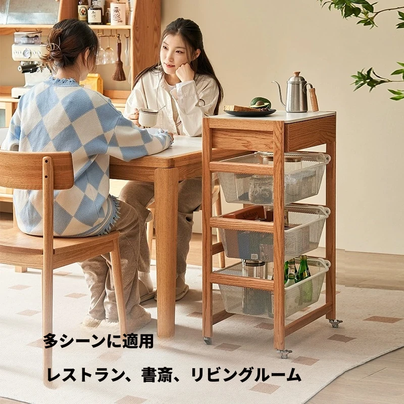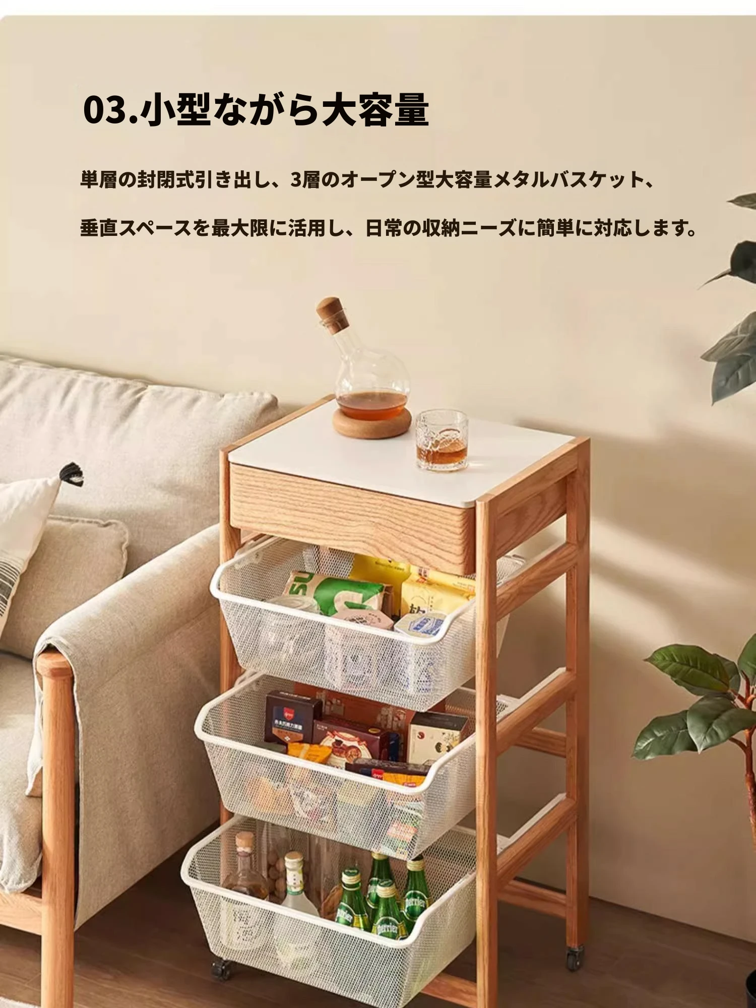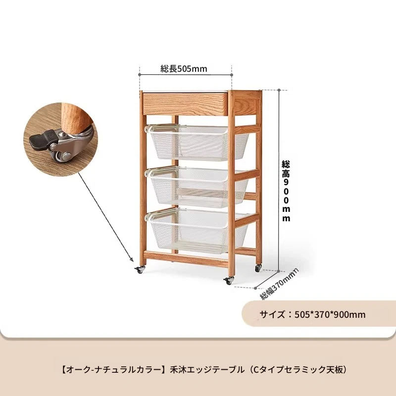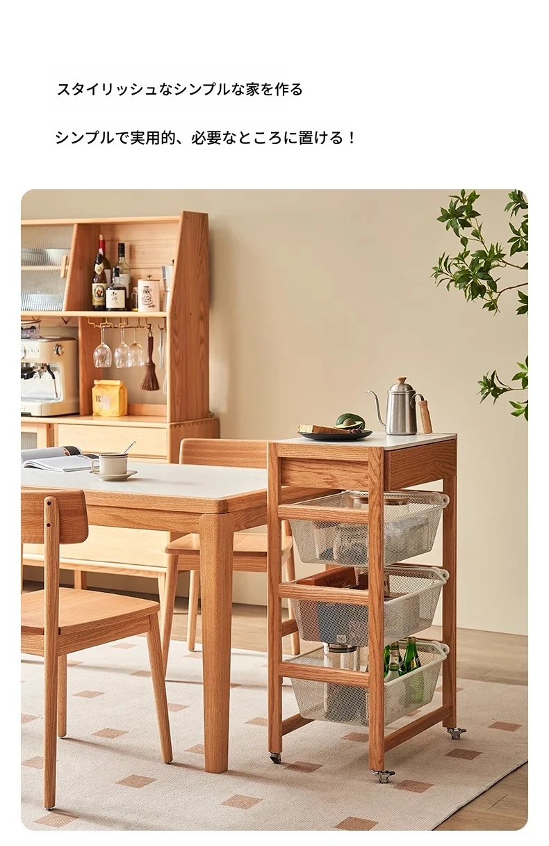 オーガニック無垢材のモバイルサイドテーブル - オークの岩板デザイン、収納力抜群のお菓子棚&置き場、便利な小型キャリーソファサイドテーブル!シンプル&スタイリッシュなインテリアにぴったりです。