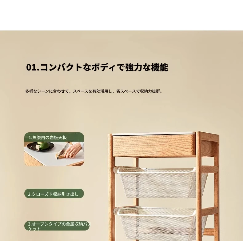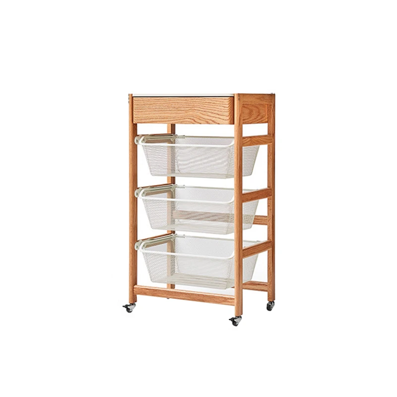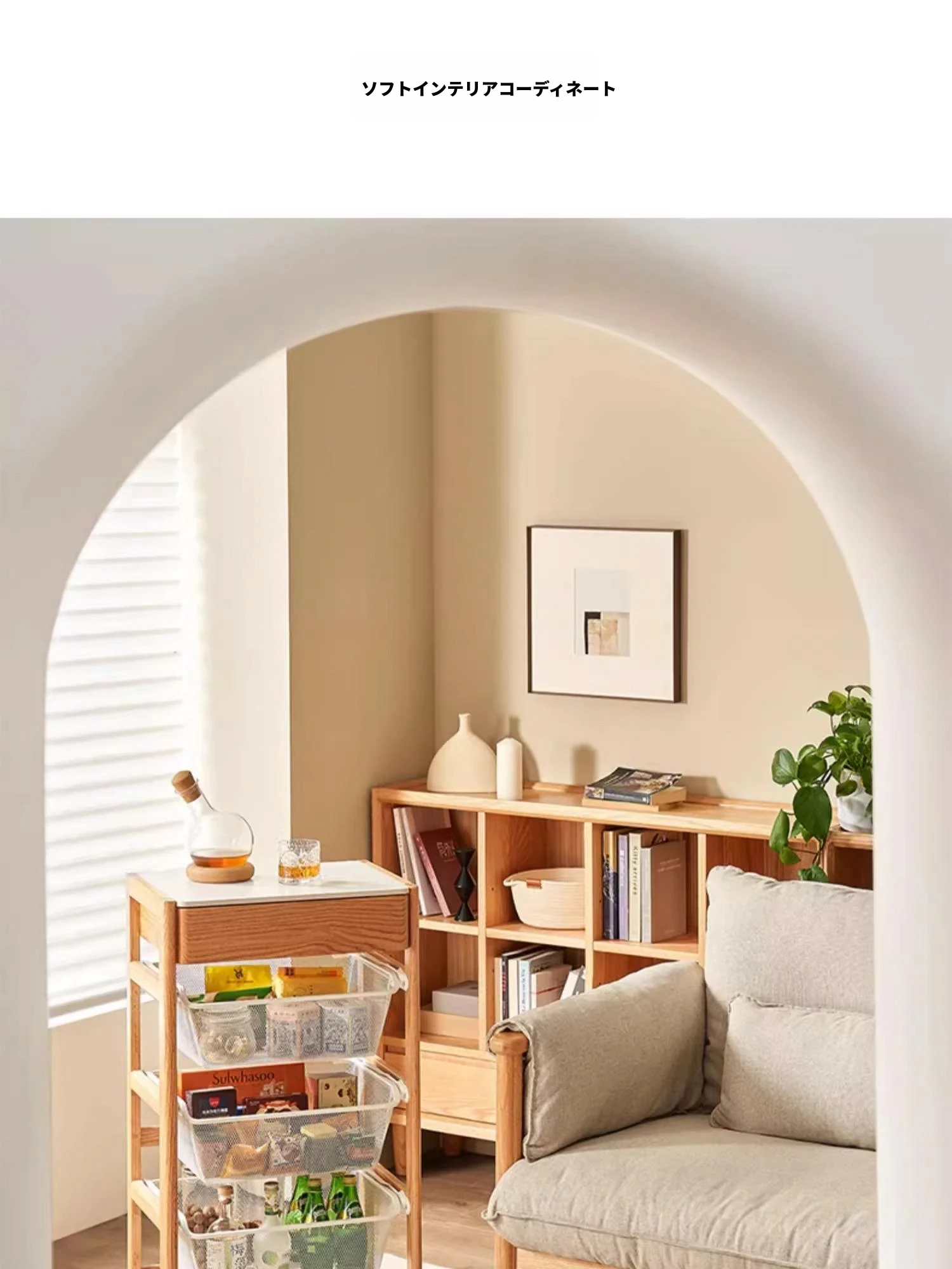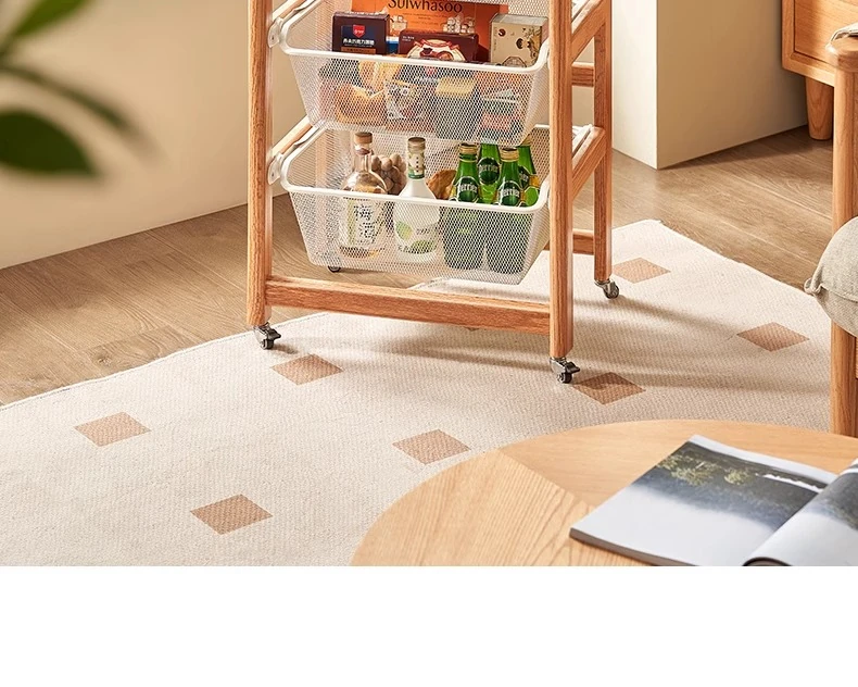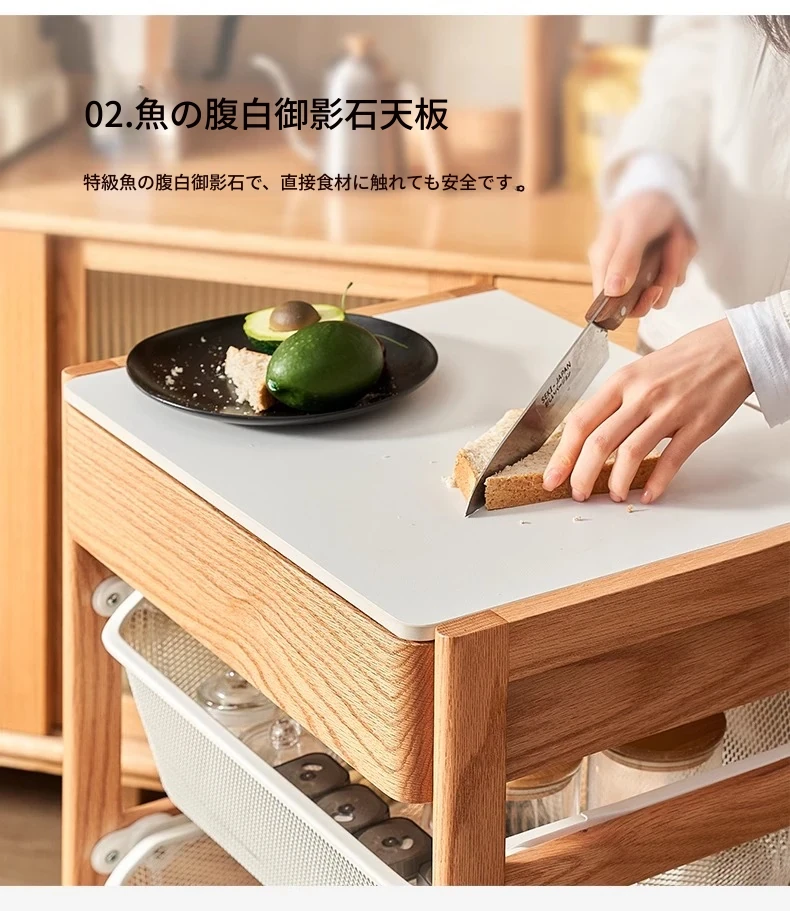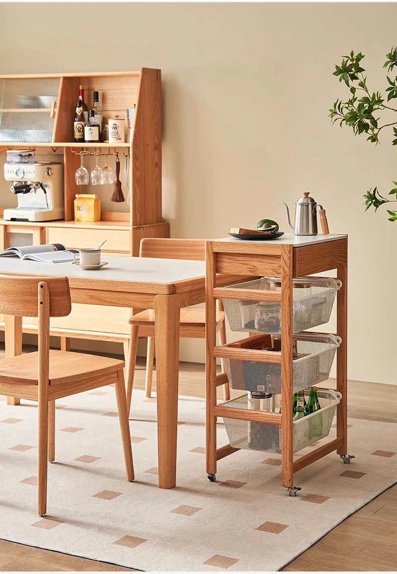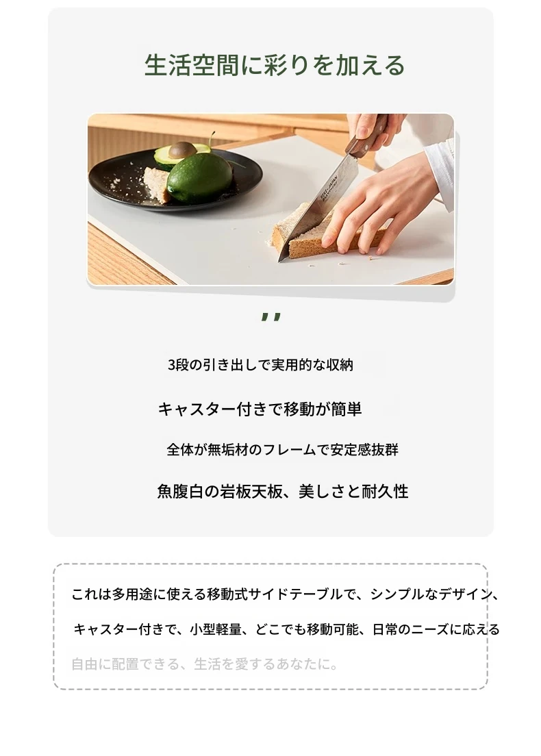 オーガニック無垢材のモバイルサイドテーブル - オークの岩板デザイン、収納力抜群のお菓子棚&置き場、便利な小型キャリーソファサイドテーブル!シンプル&スタイリッシュなインテリアにぴったりです。