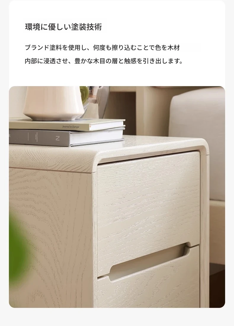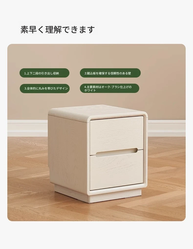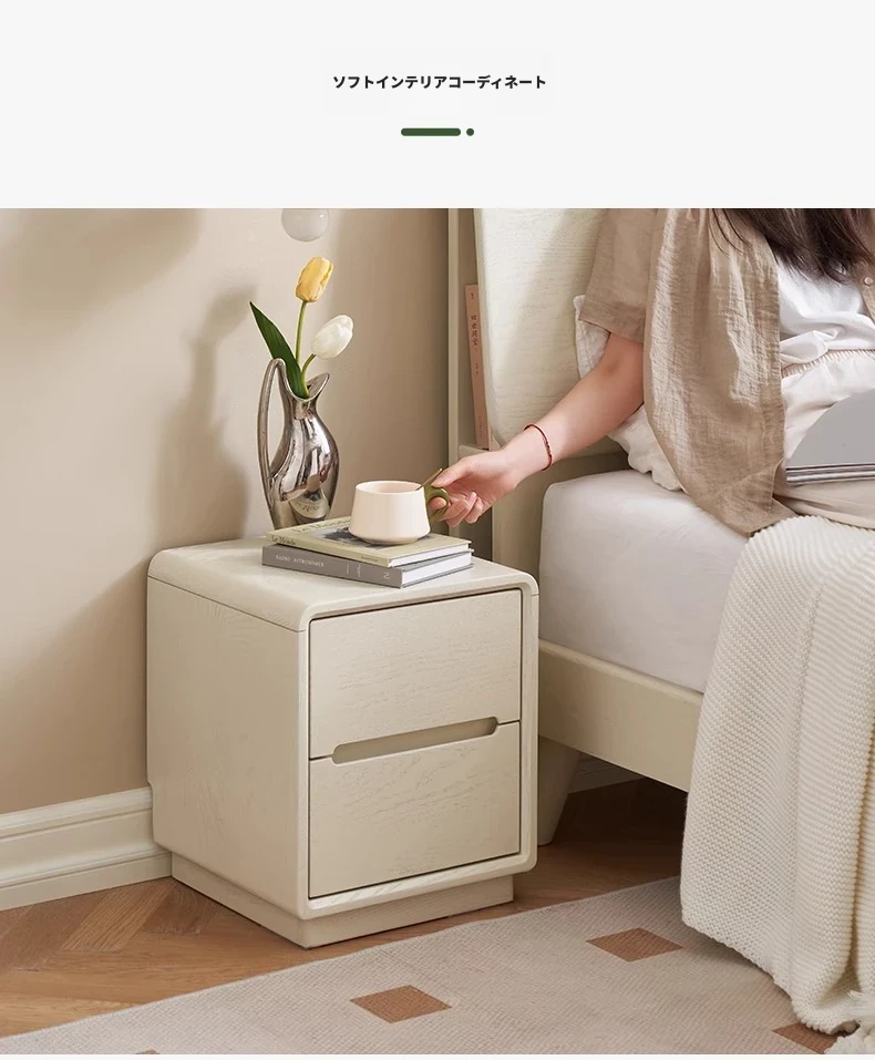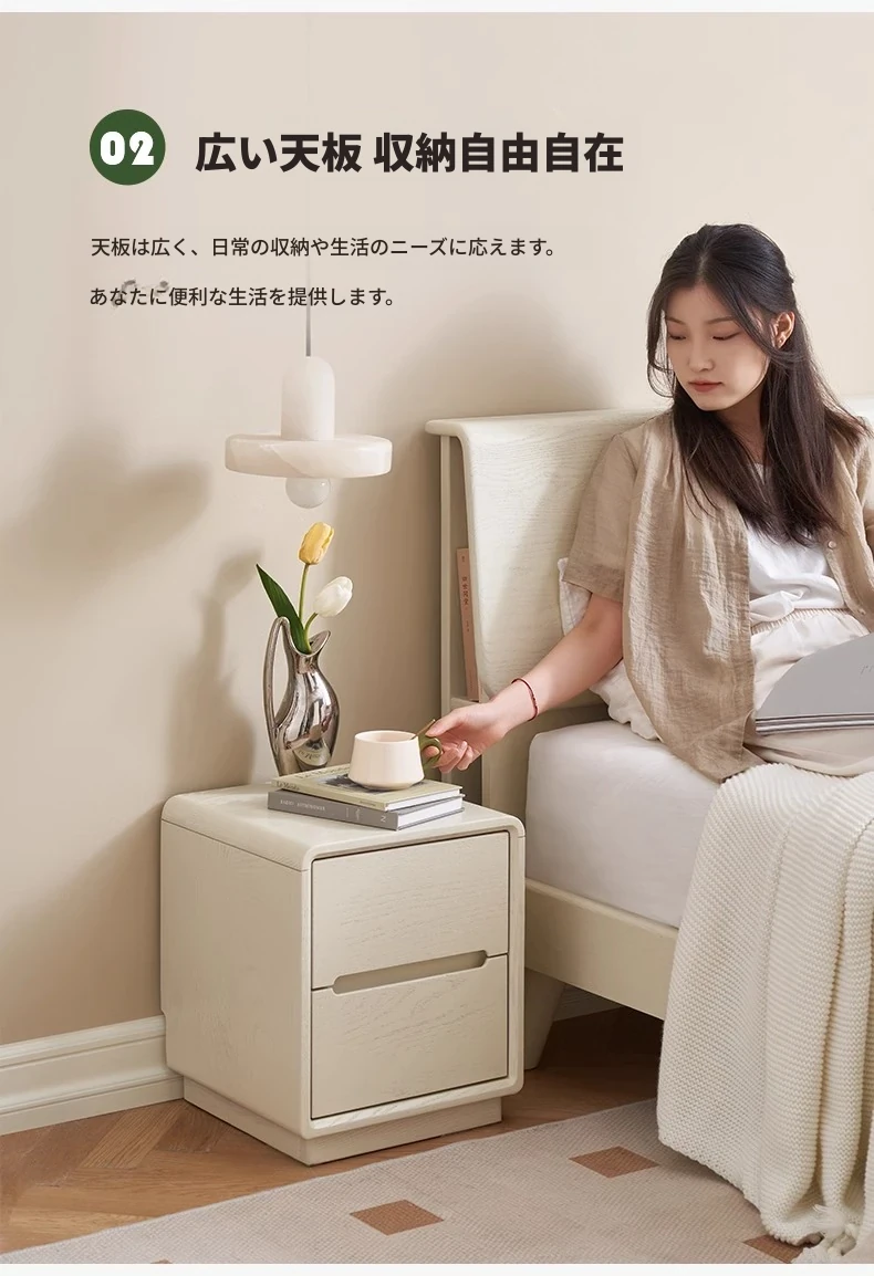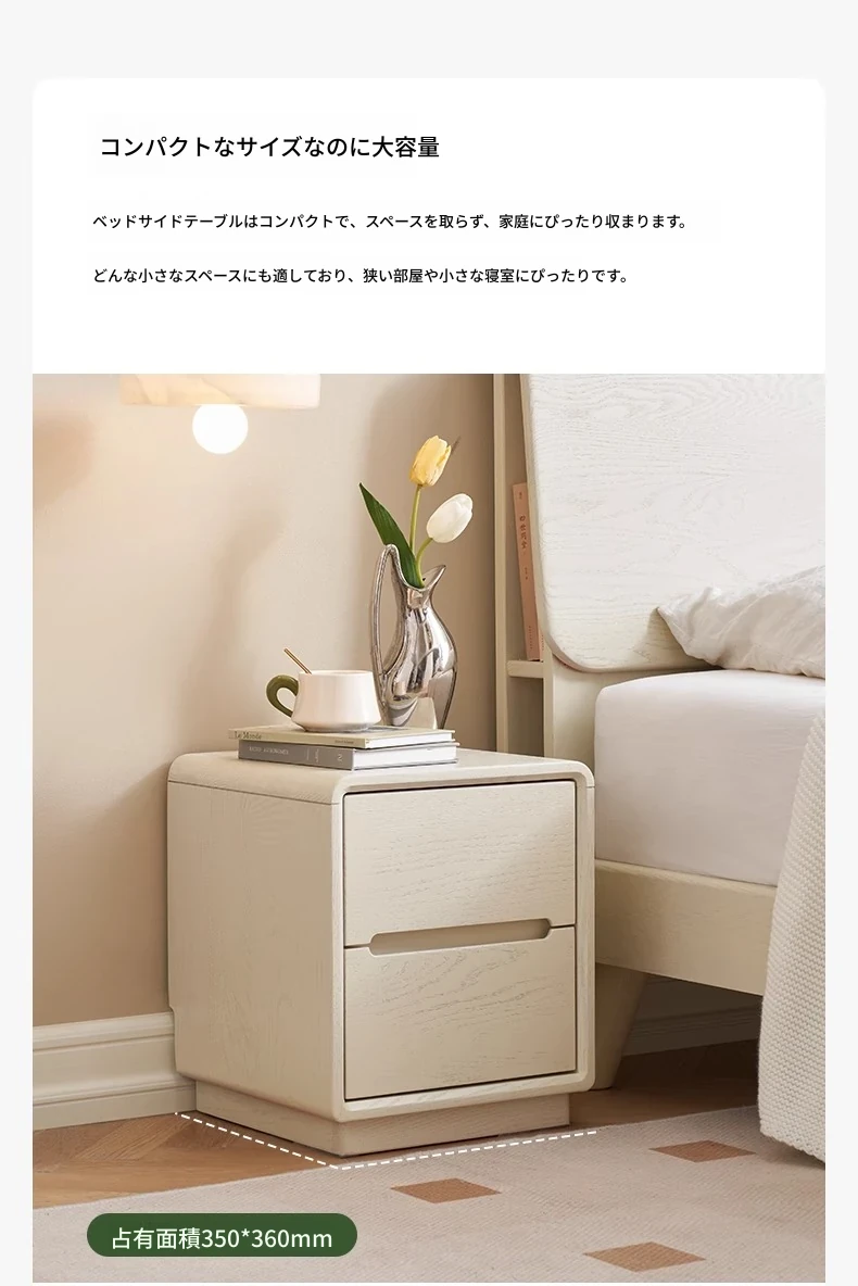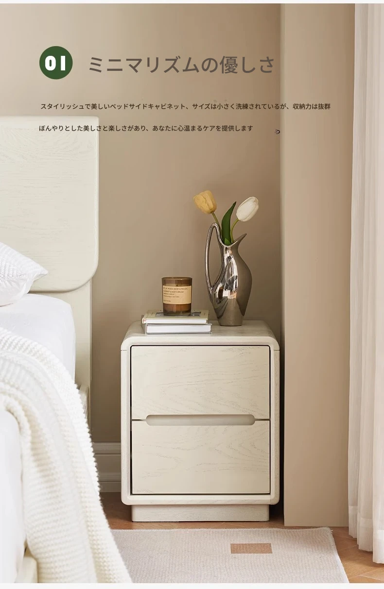 高級オーク製スリムデザインナイトテーブル - モダンでシンプル、クリーム色の収納キャビネット。コンパクトでスペースを有効活用!あなたのお部屋をオシャレに演出します。