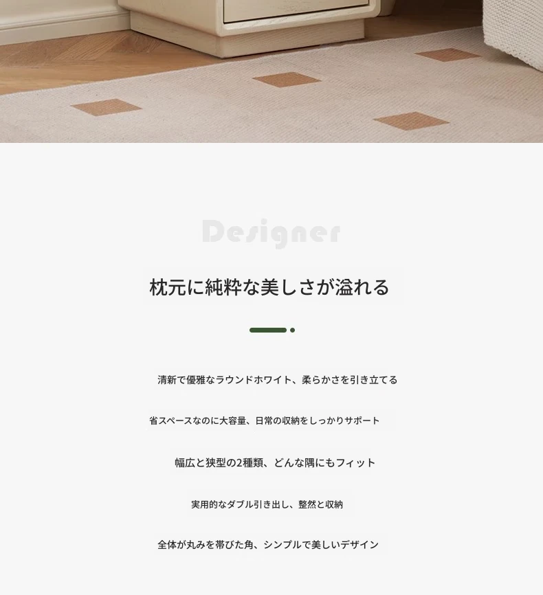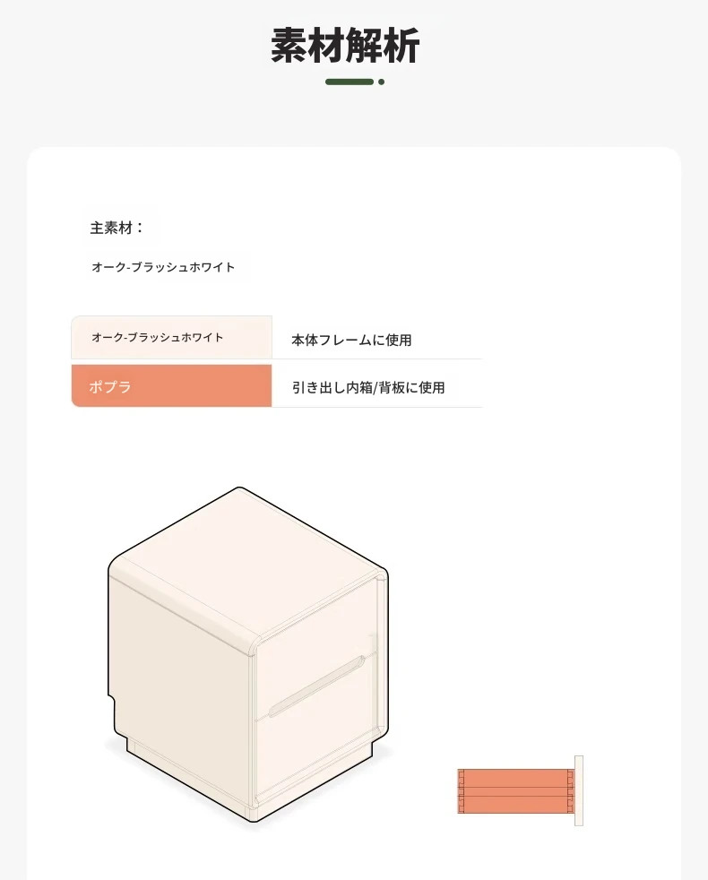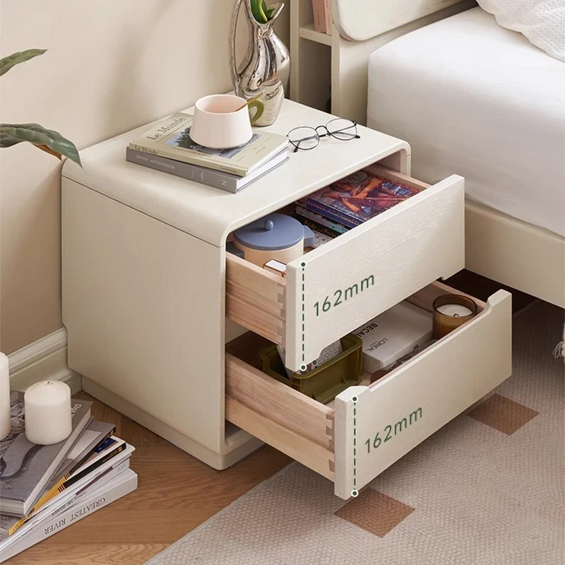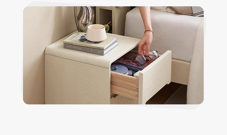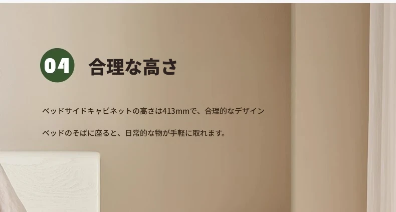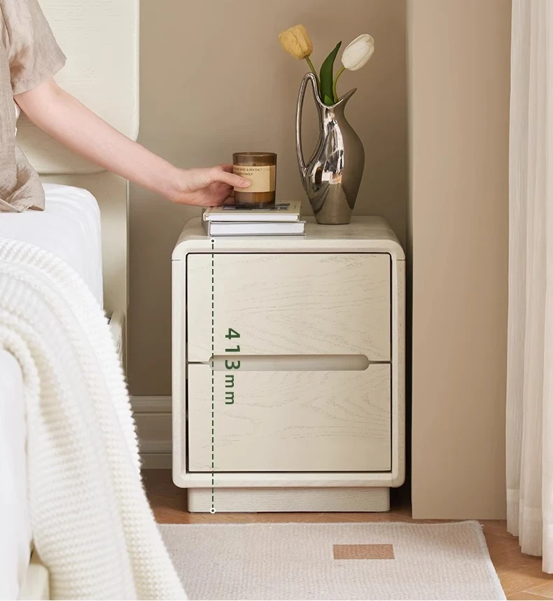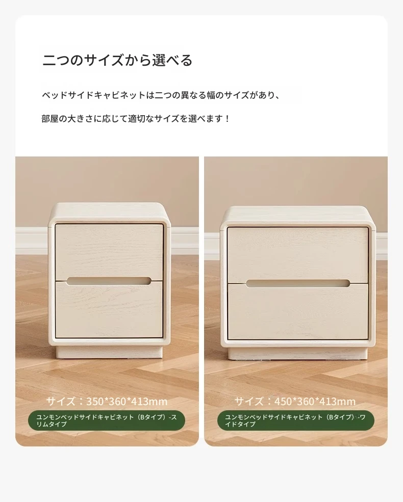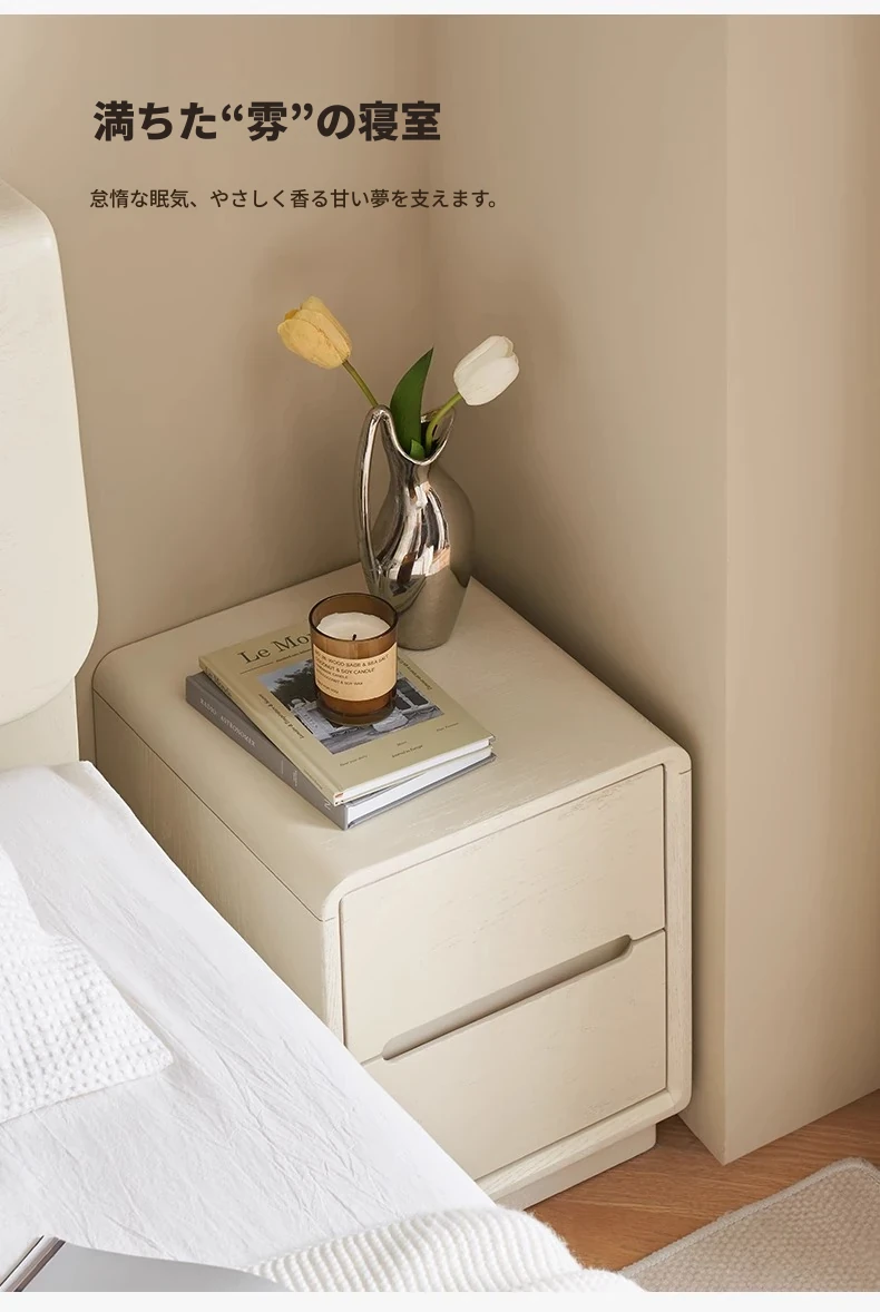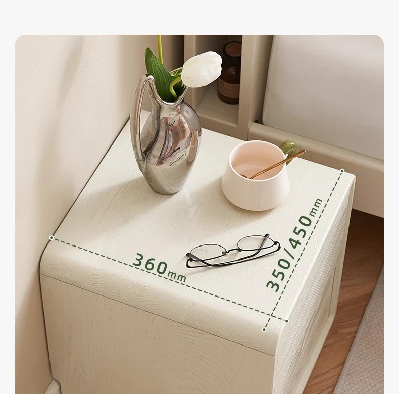 高級オーク製スリムデザインナイトテーブル - モダンでシンプル、クリーム色の収納キャビネット。コンパクトでスペースを有効活用!あなたのお部屋をオシャレに演出します。