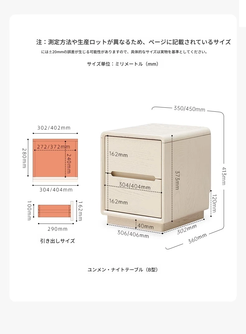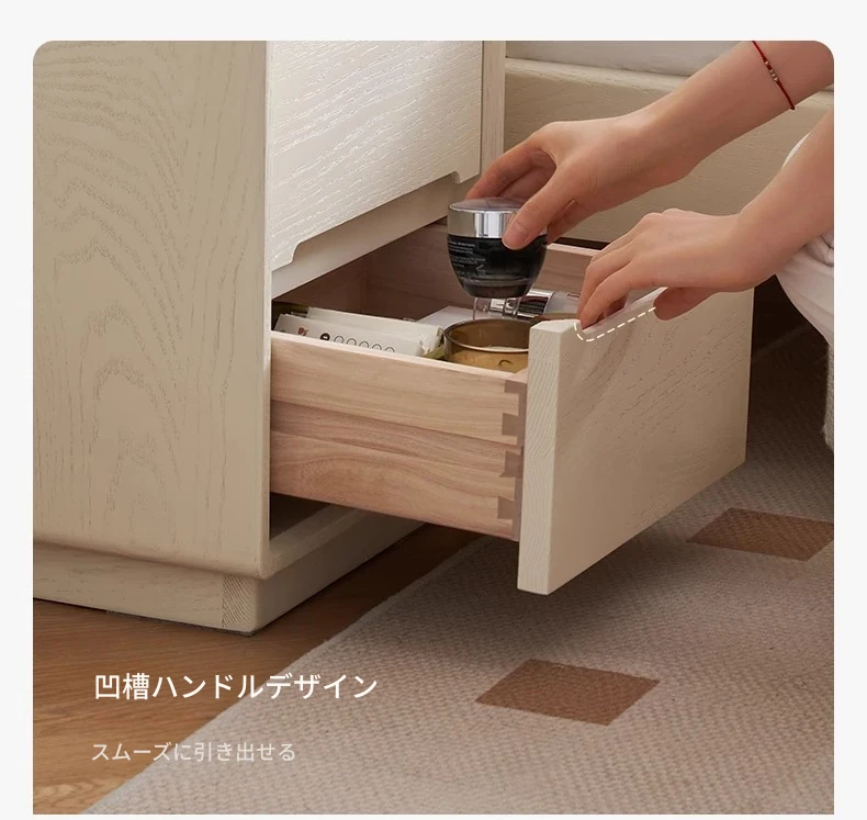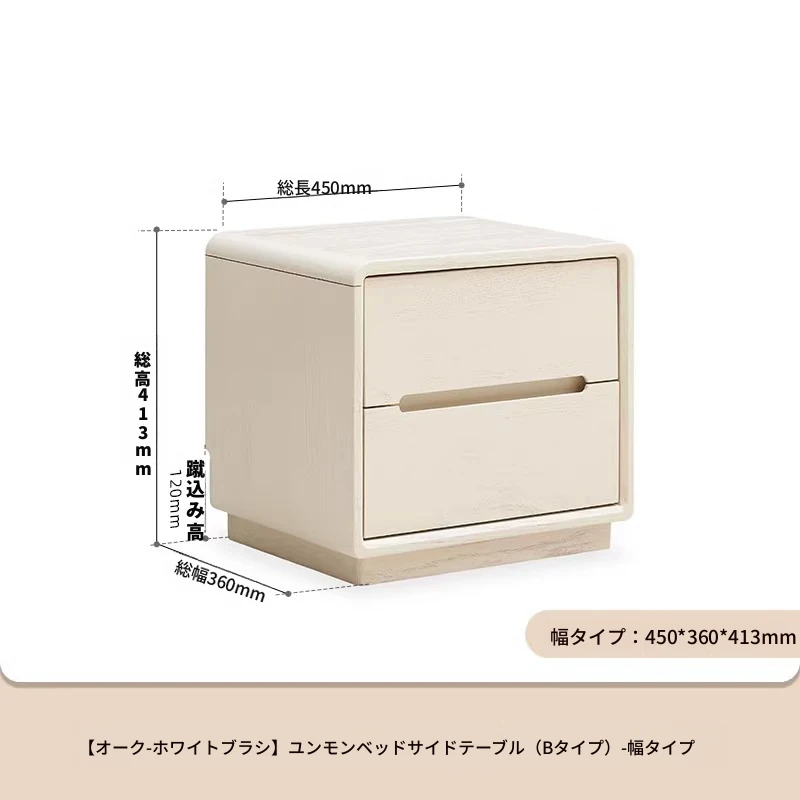 ホワイトブラッシュ-ユンモンナイトテーブル(Bタイプ)-ワイドタイプ