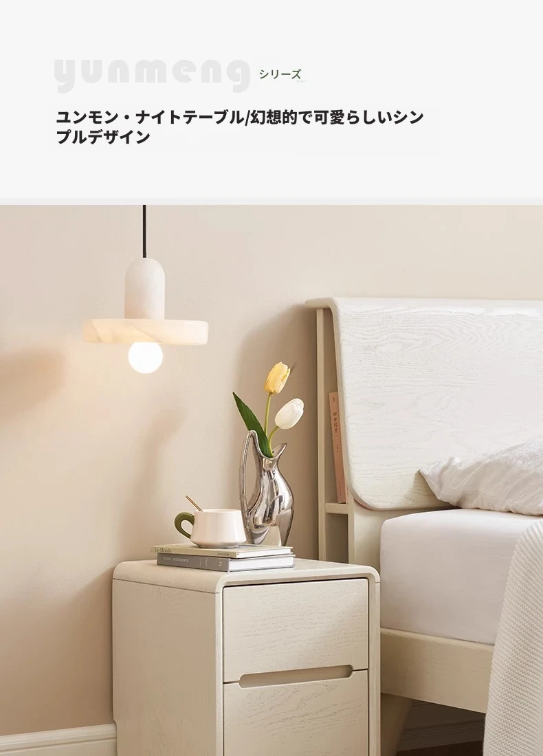 ホワイトブラッシュ-ユンモンナイトテーブル(Bタイプ)-ナロータイプ