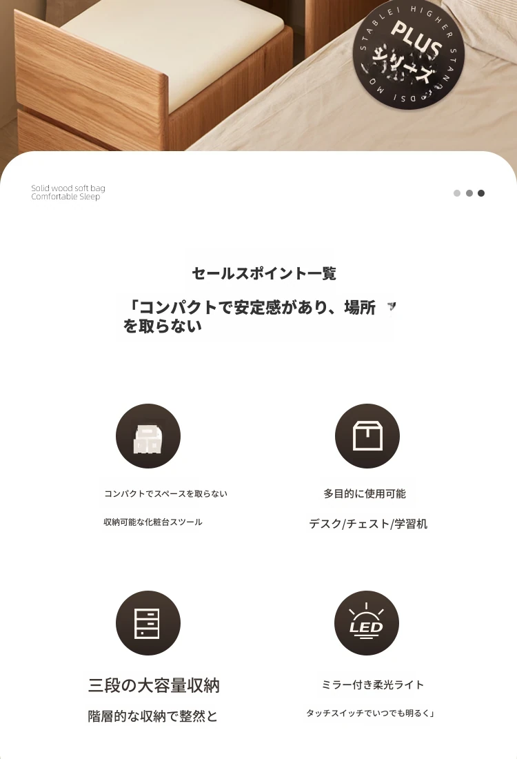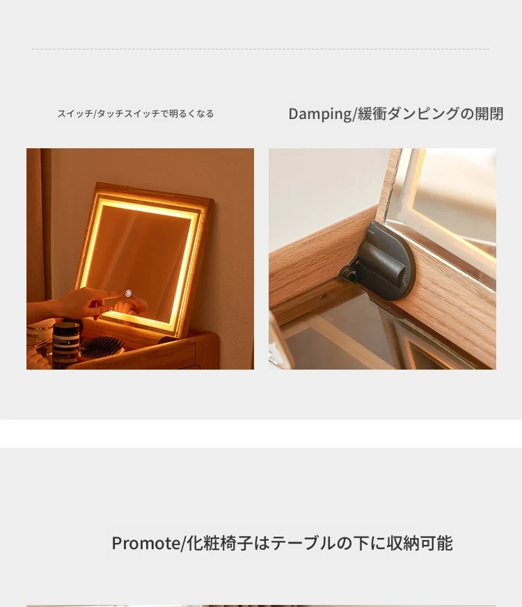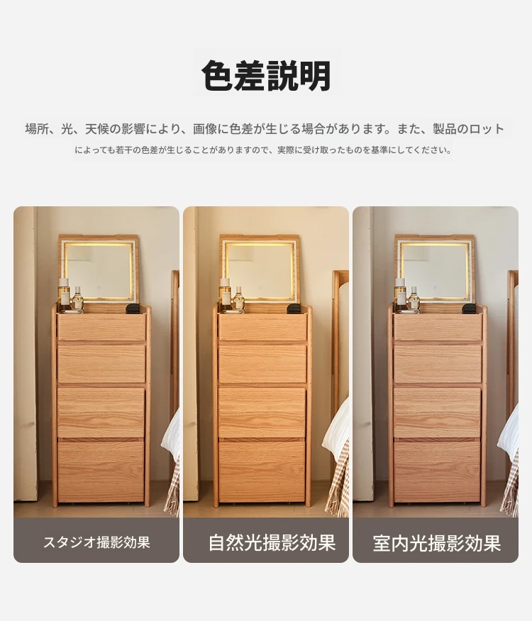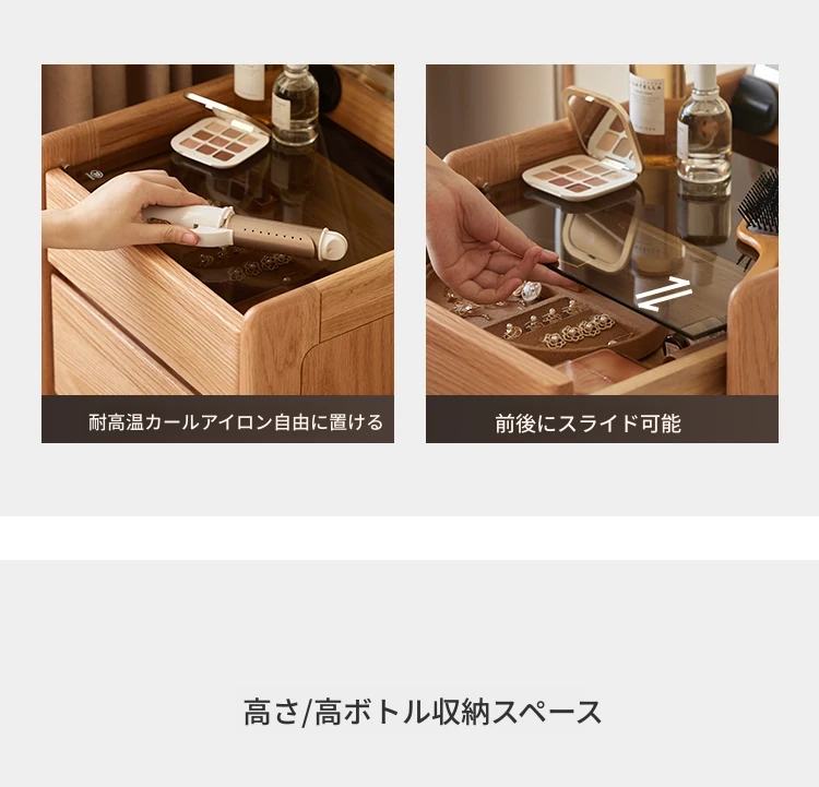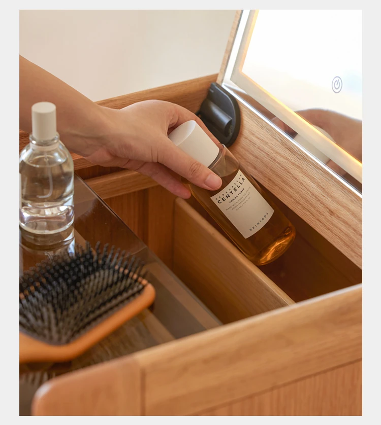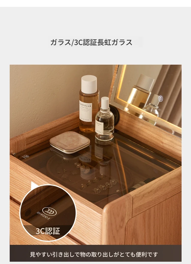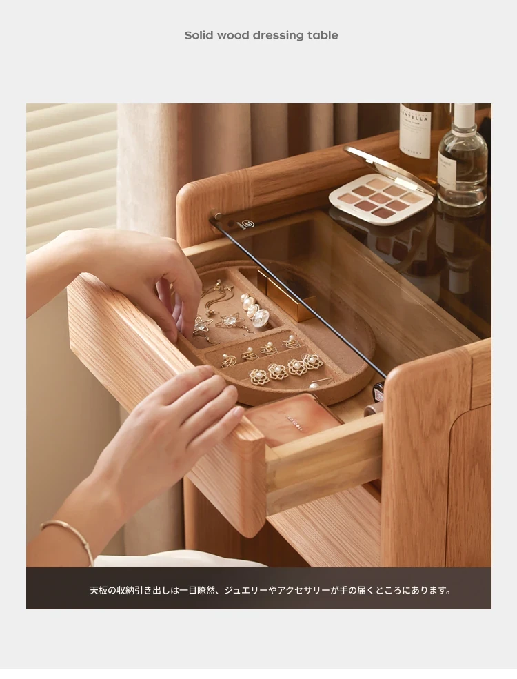 オーク材の極狭デザイン!一体型の実木ドレッサー&スツールセット。おしゃれで機能的な寝室用コスメテーブル、小スペースにぴったりのベッドサイド化粧台。あなたのメイクアップタイムを特別に演出!