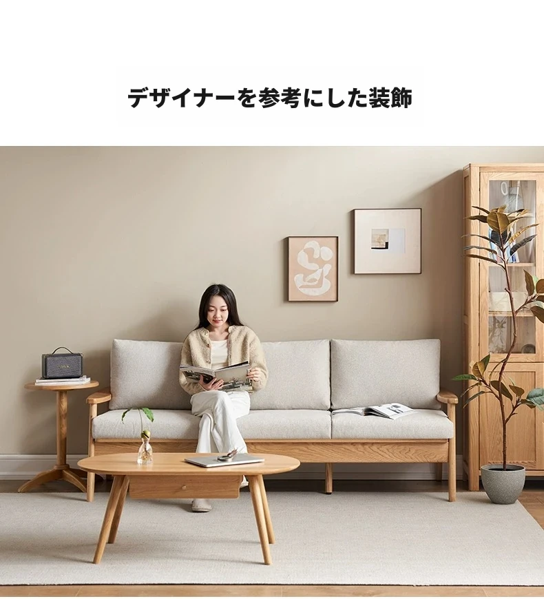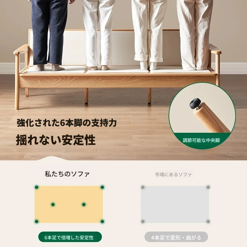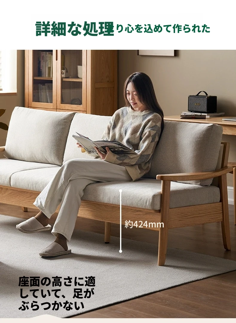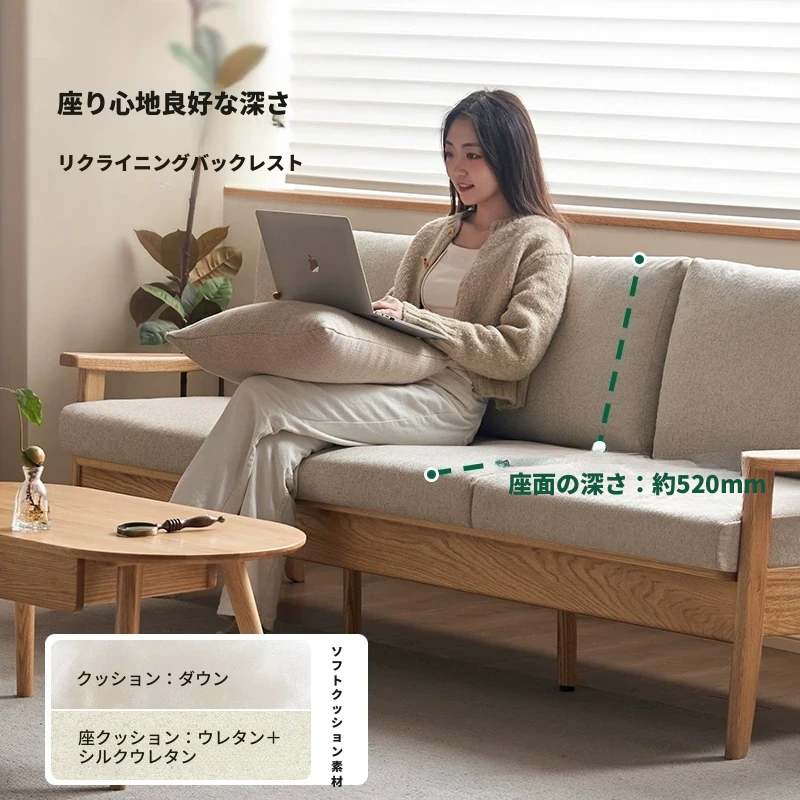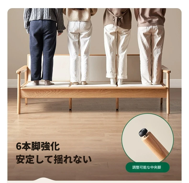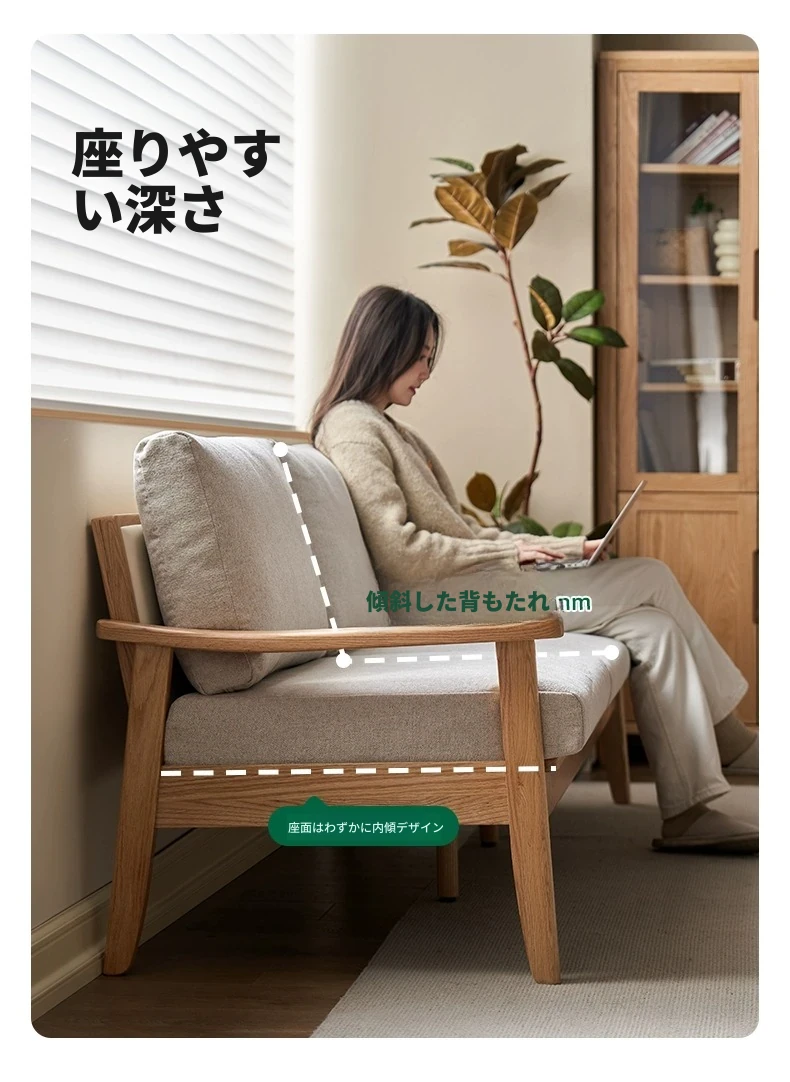 全原木の素朴な3人掛けソファ - オーク材使用!小型リビングに最適。冬も夏も快適に過ごせる、猫の爪も気にならない耐久性抜群のデザインで、あなたの空間をおしゃれに彩ります。