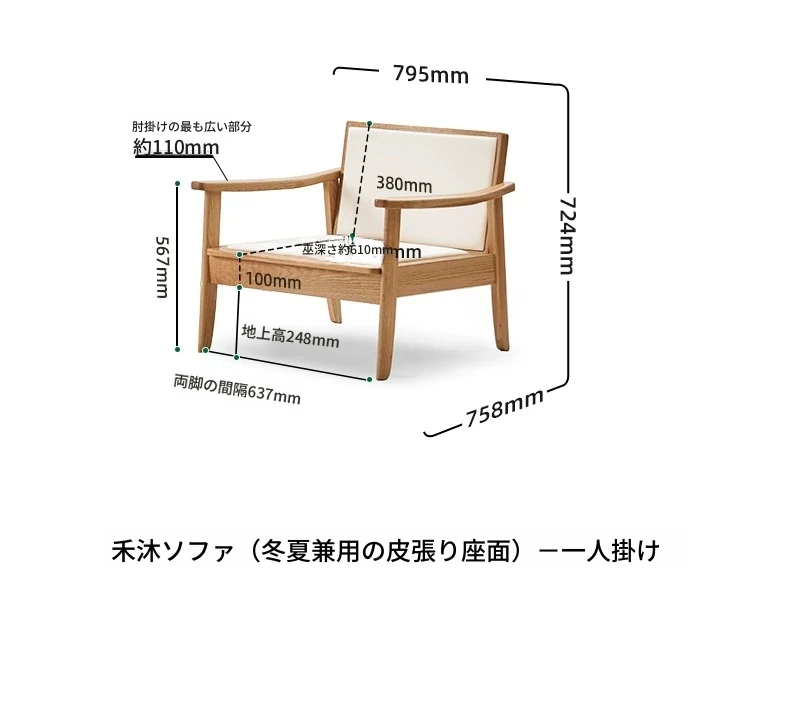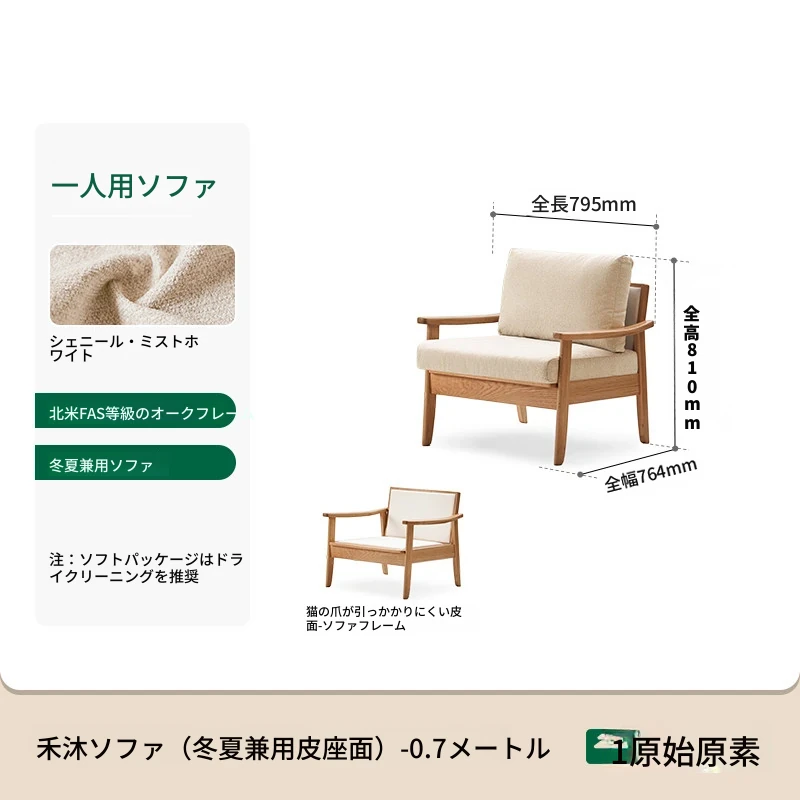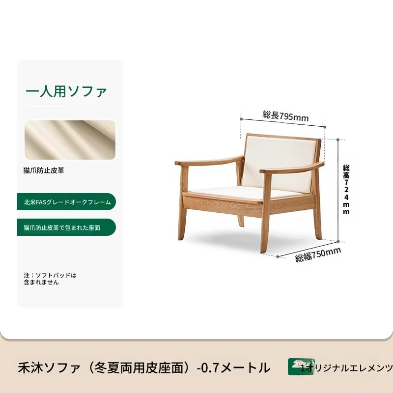 【オーク-ナチュラルカラー】0.79メートル1人掛けソファ(キャットスクラッチレザー-白月)(795*750*724mm)