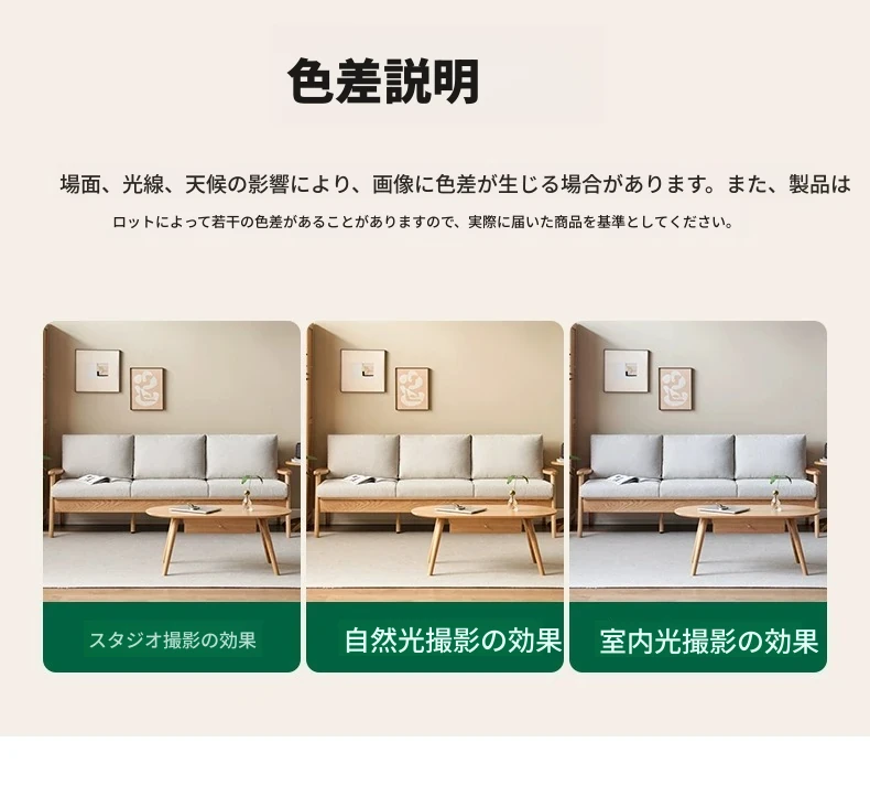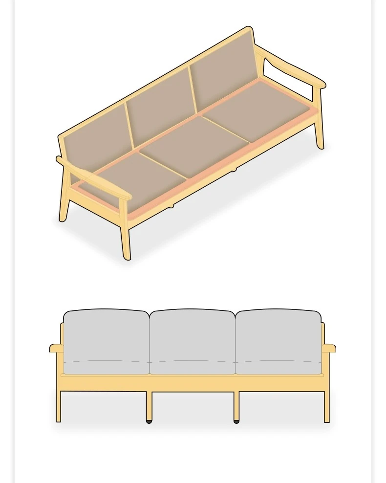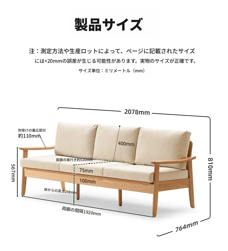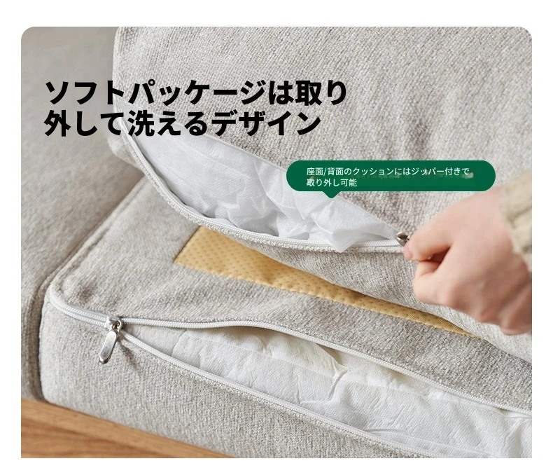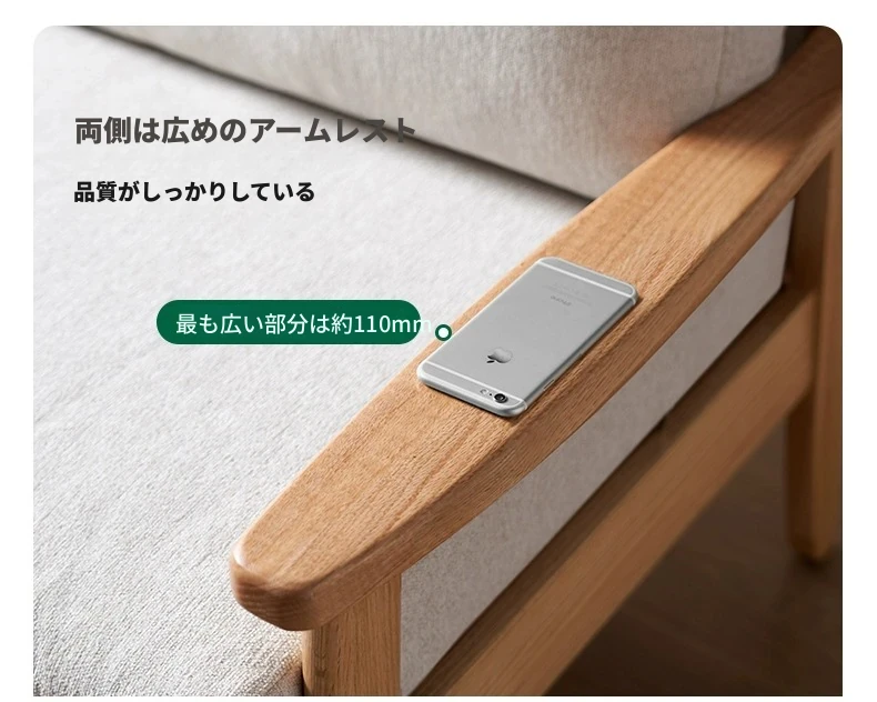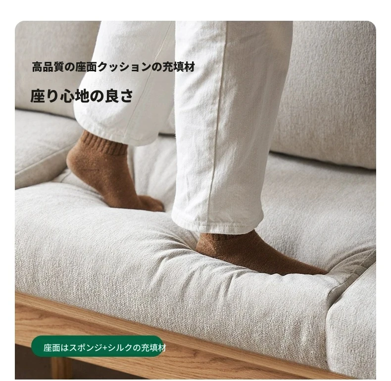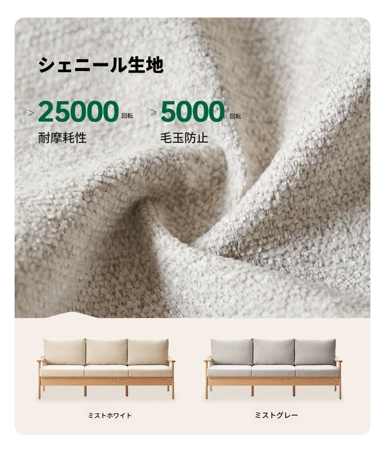 【オーク-ナチュラルカラー】2.07メートル3人掛けソファ(シェニール-霧白色)(2078*764*810mm)