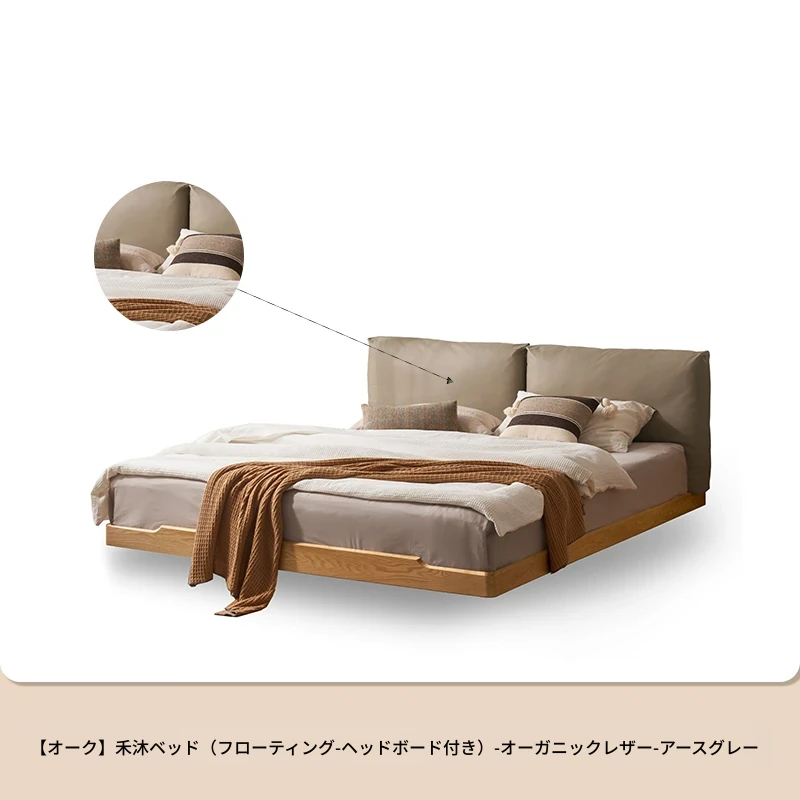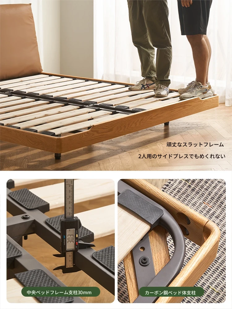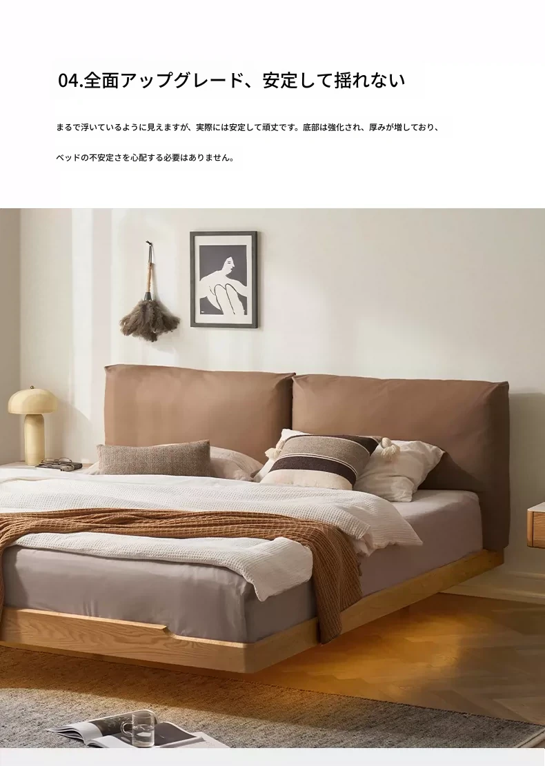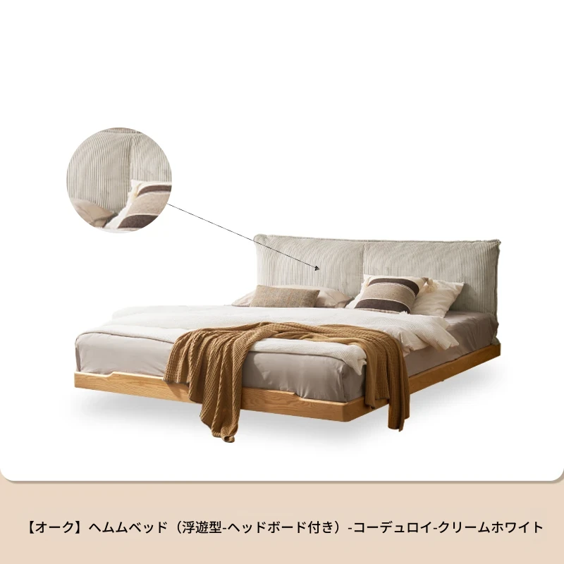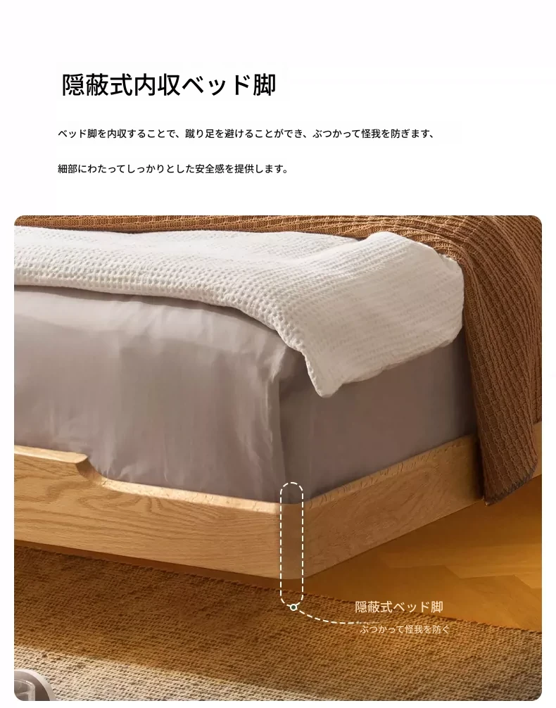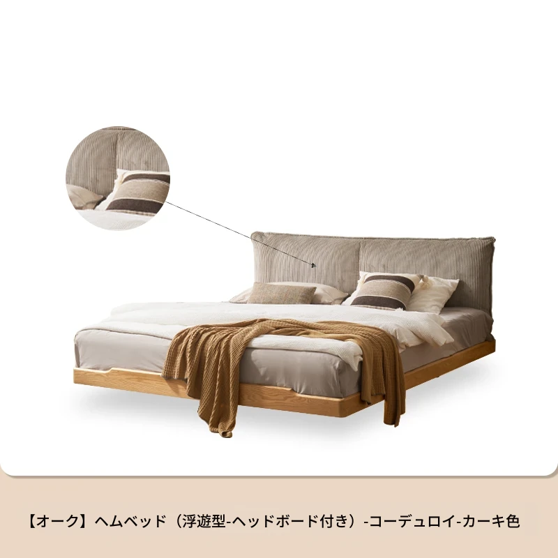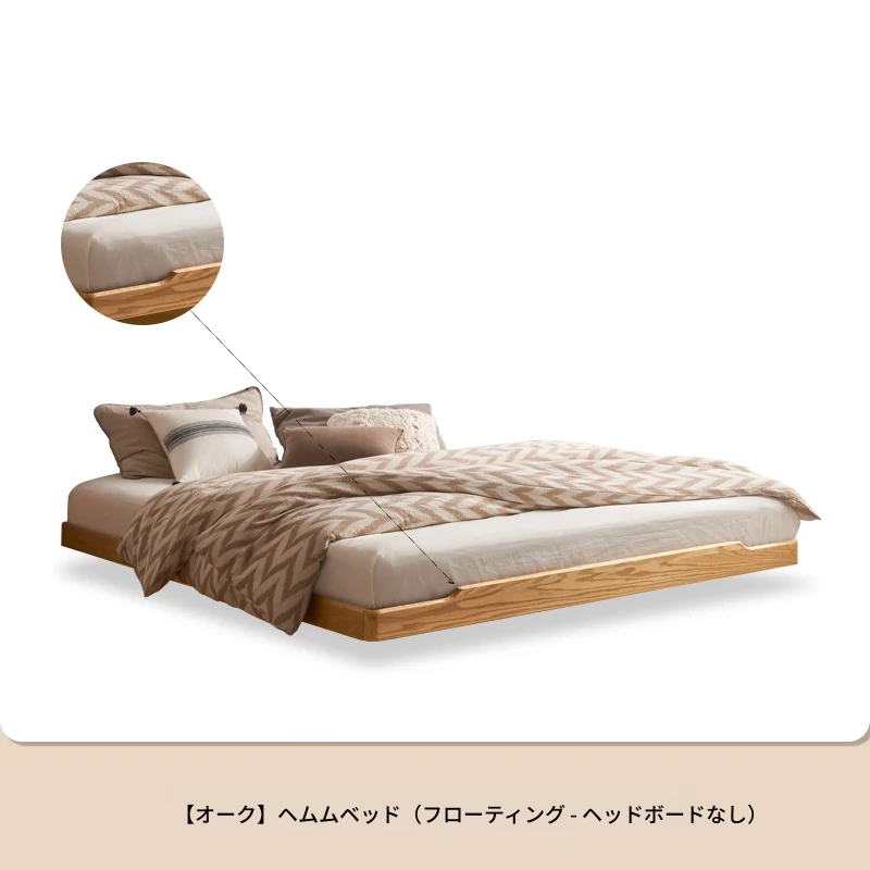 オーガニック無垢材のオークソフトパッケージベッド - 和風畳スタイルの浮遊感!1.5mダブルベッドで、ナチュラルな木の温もりを感じる理想の寝室を実現。